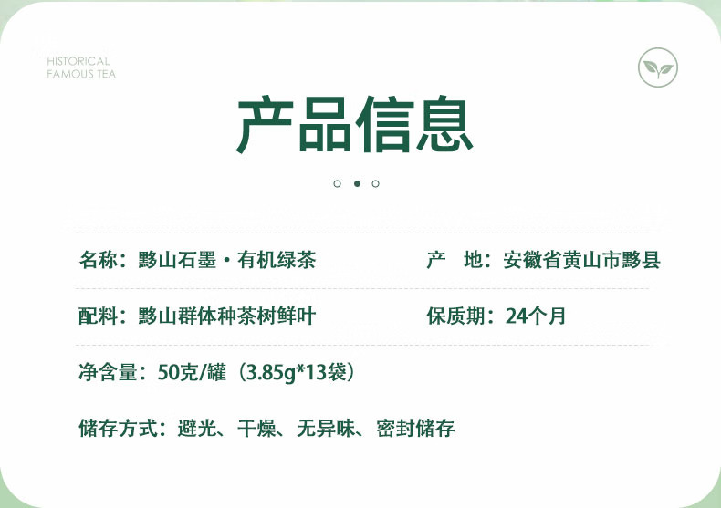 黟山石墨茶 有机石墨绿茶3.85克*13=50g