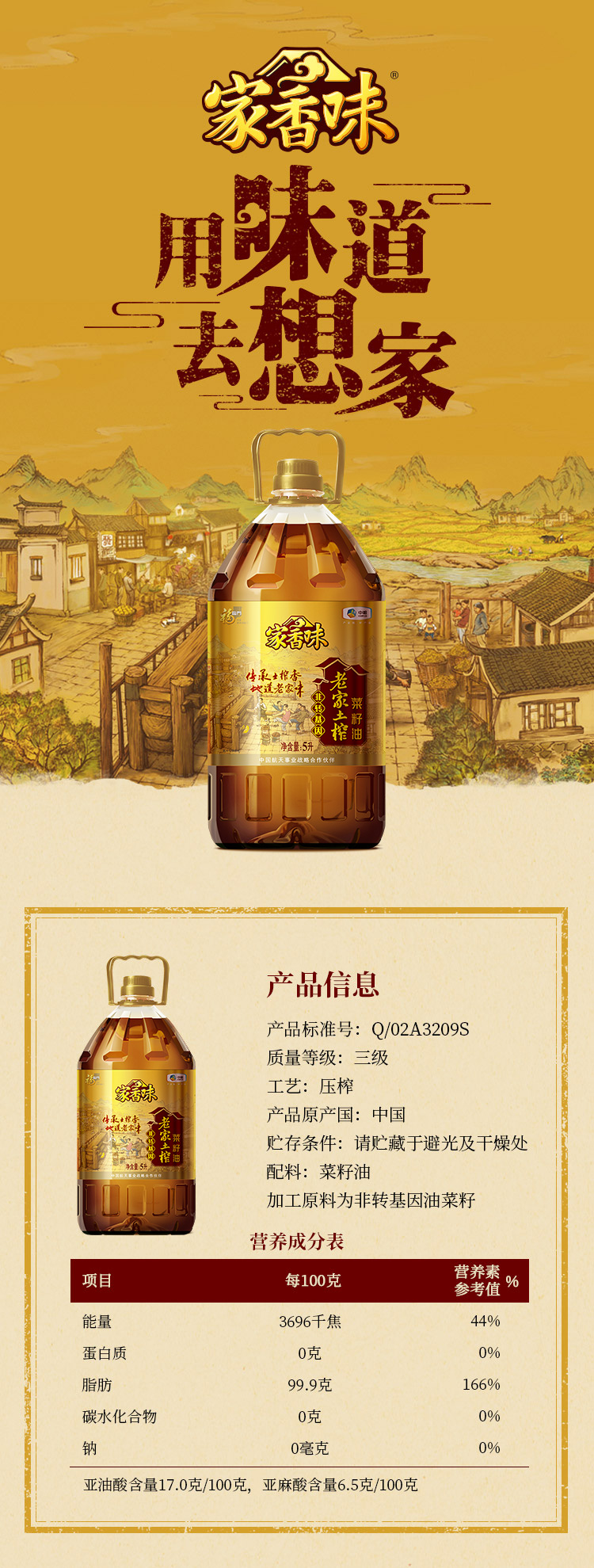 福临门家香味老家土榨菜籽油5L/桶浓香食用油家用桶装 非转基因 土榨浓香