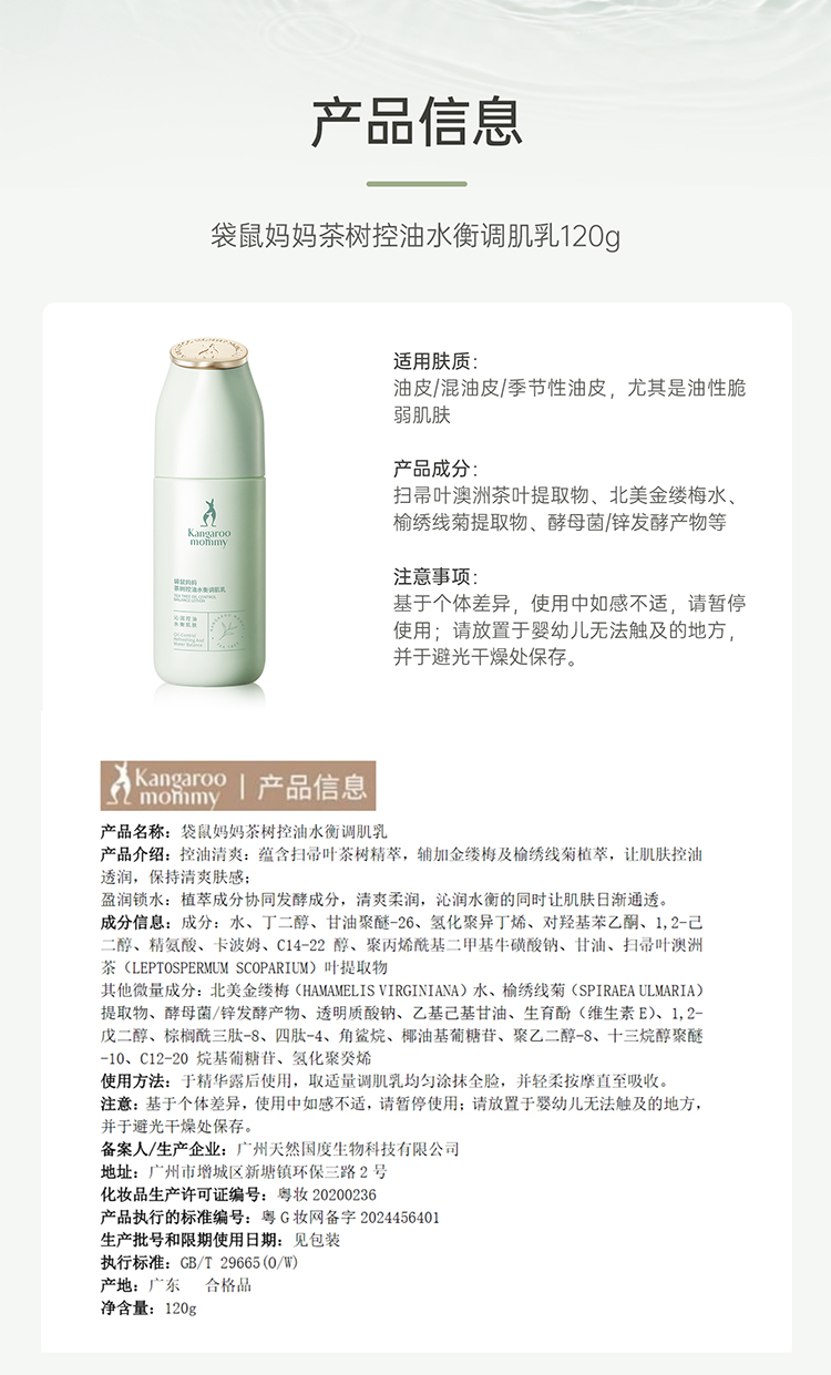 【控油保湿乳】油痘肌适用 清爽保湿控油 调节水油平衡 茶树控油水衡调肌乳120g