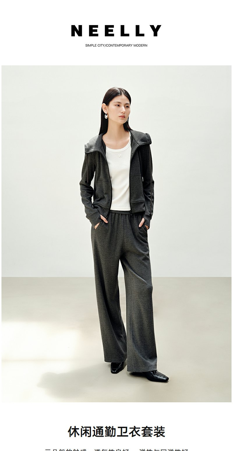 NEELLY纳俪商场同款秋新款时尚休闲运动卫衣套装女亲肤外套休闲裤N25083Z01134