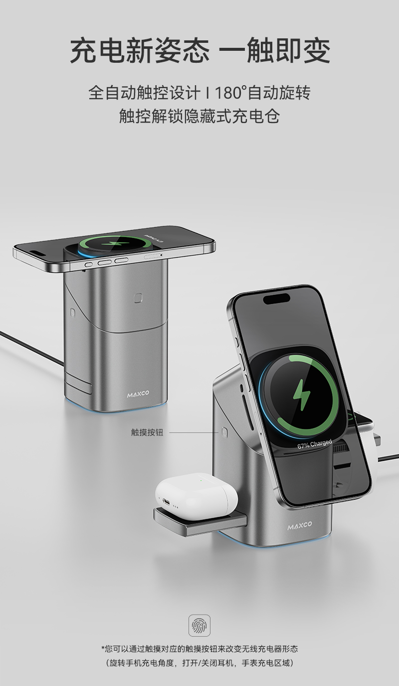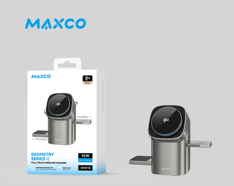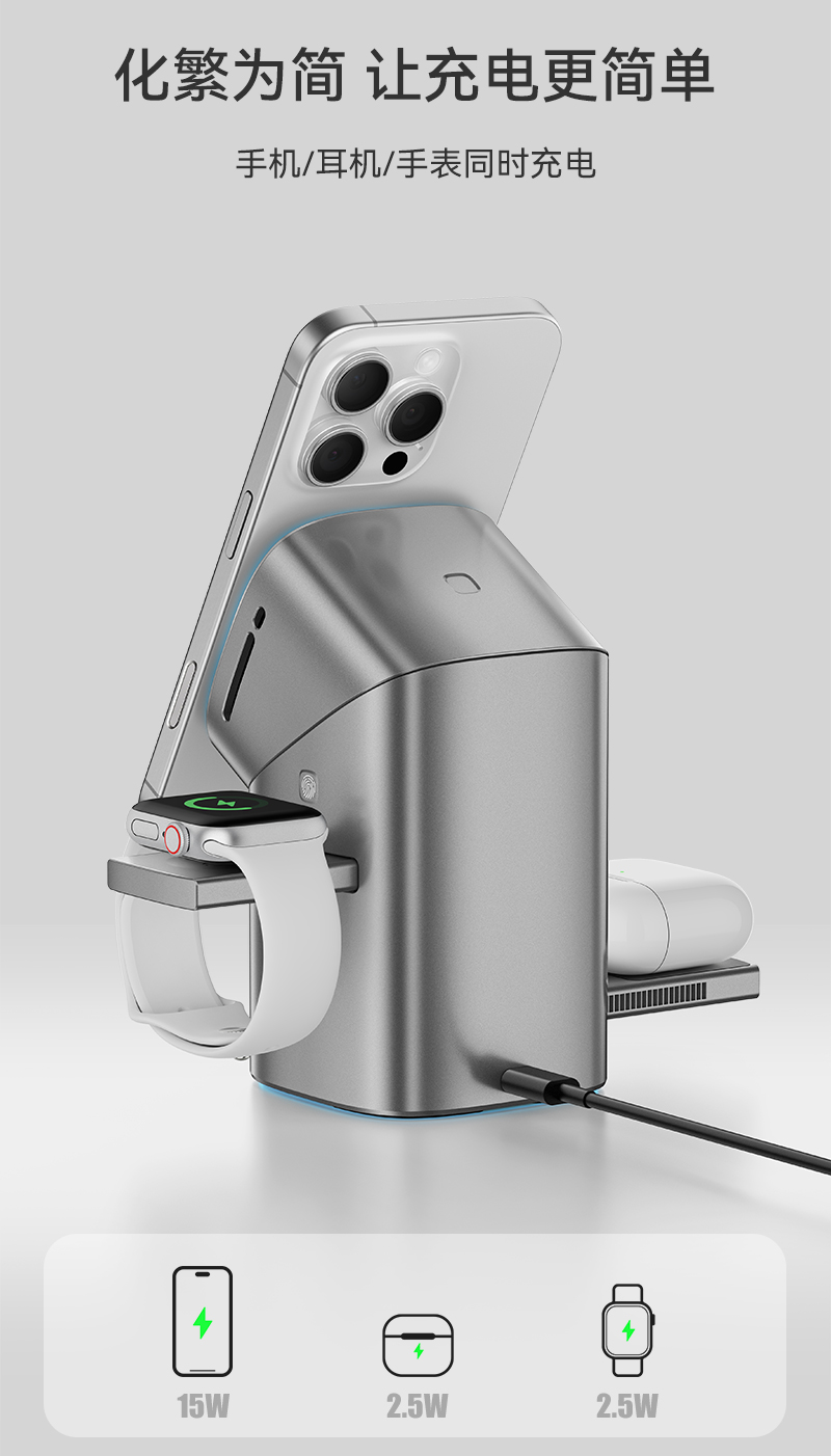 MAXCO美能格无线充MW15三合一多功能支持手机手表耳机支持qi2认证