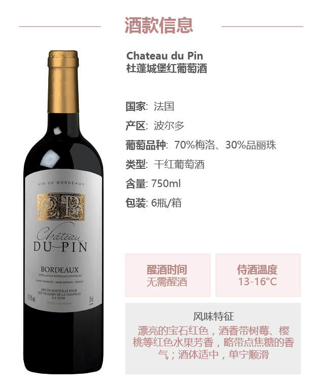 杜蓬城堡红葡萄酒 【Chateau du Pin Bordeaux 750ml】【2012】