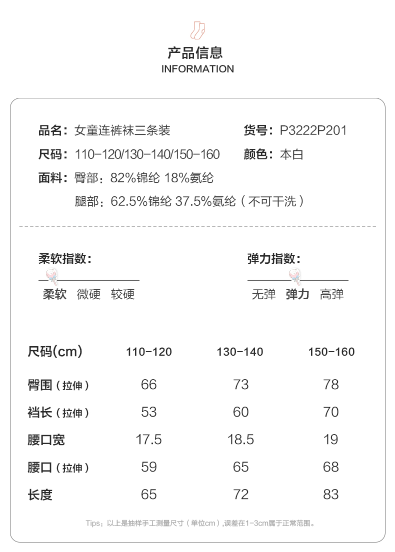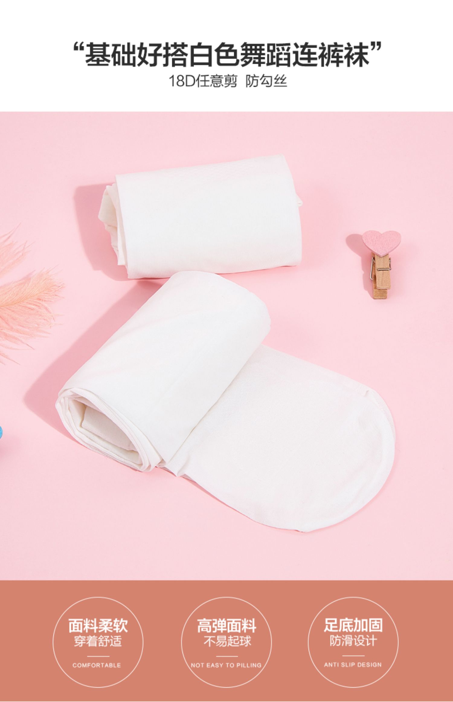 笛莎Deesha 女童连裤袜2023夏季新款儿童时尚白色弹性舞蹈袜练功袜三条装