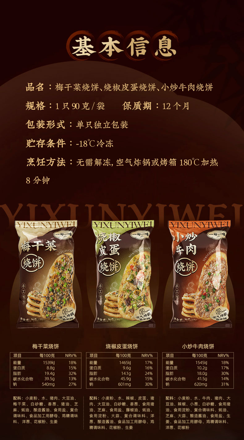 一旬一味 烧饼(梅干菜/烧椒皮蛋/小炒牛肉)90g*10