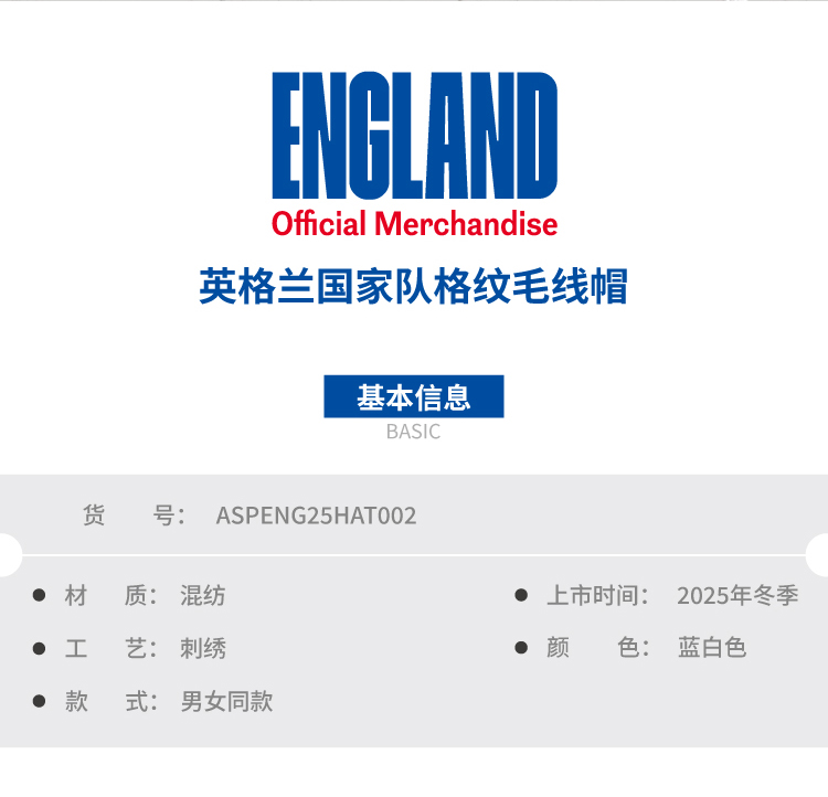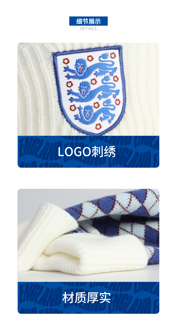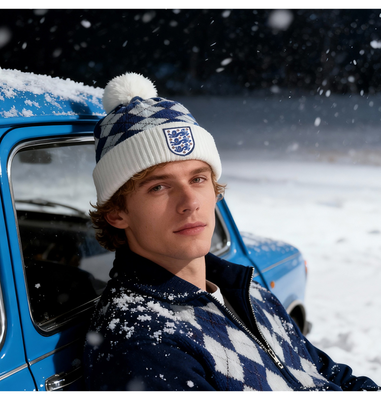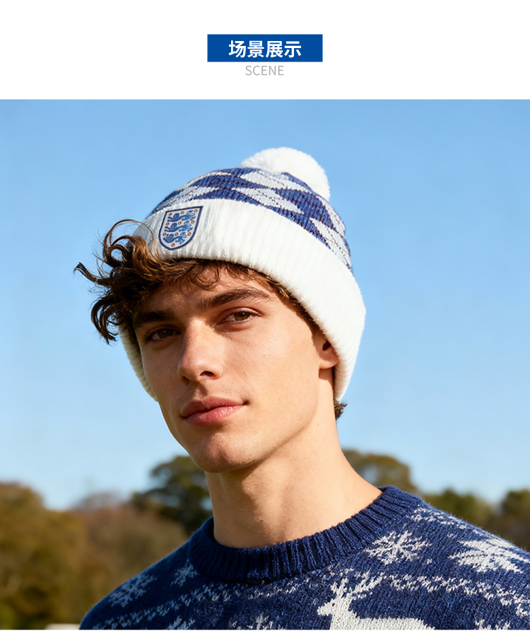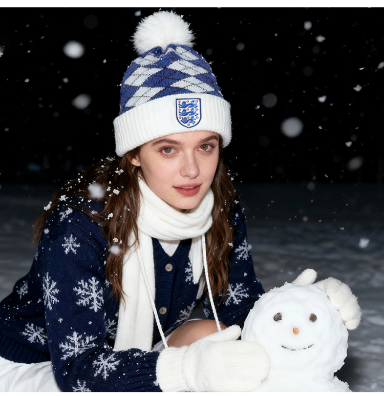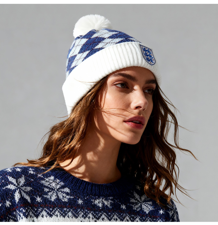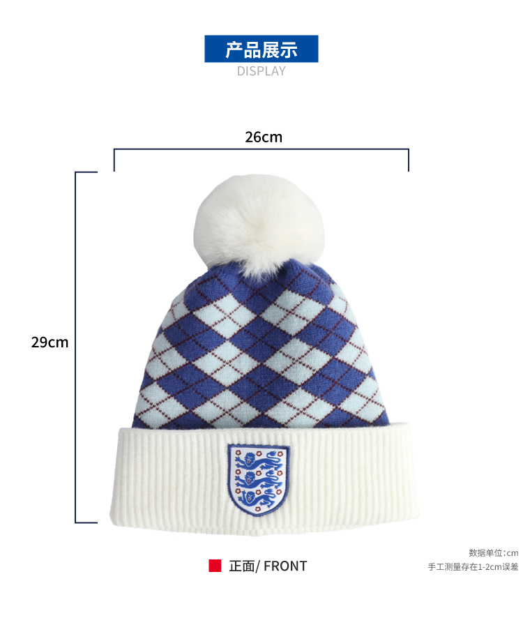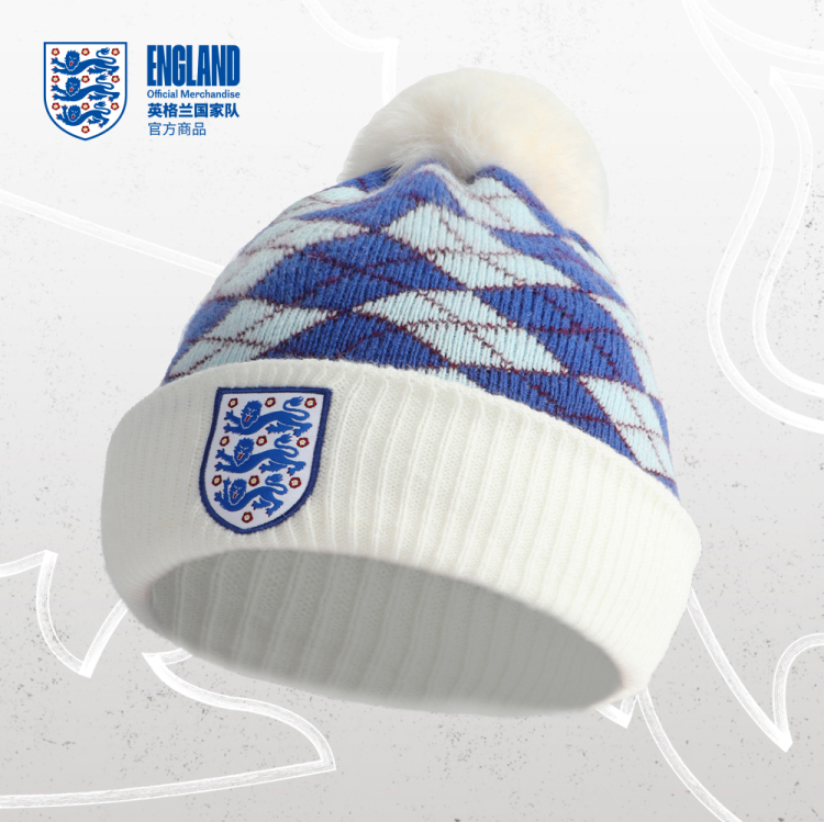 【官方正版】英格兰国 家队 | 格纹毛线帽蓝白菱格针织帽保暖