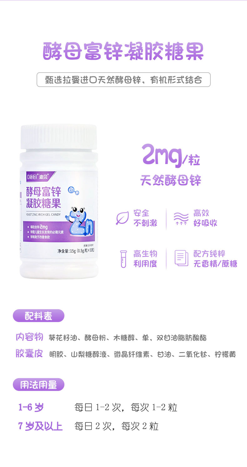 【迪贝】买3送1 酵母锌软胶囊