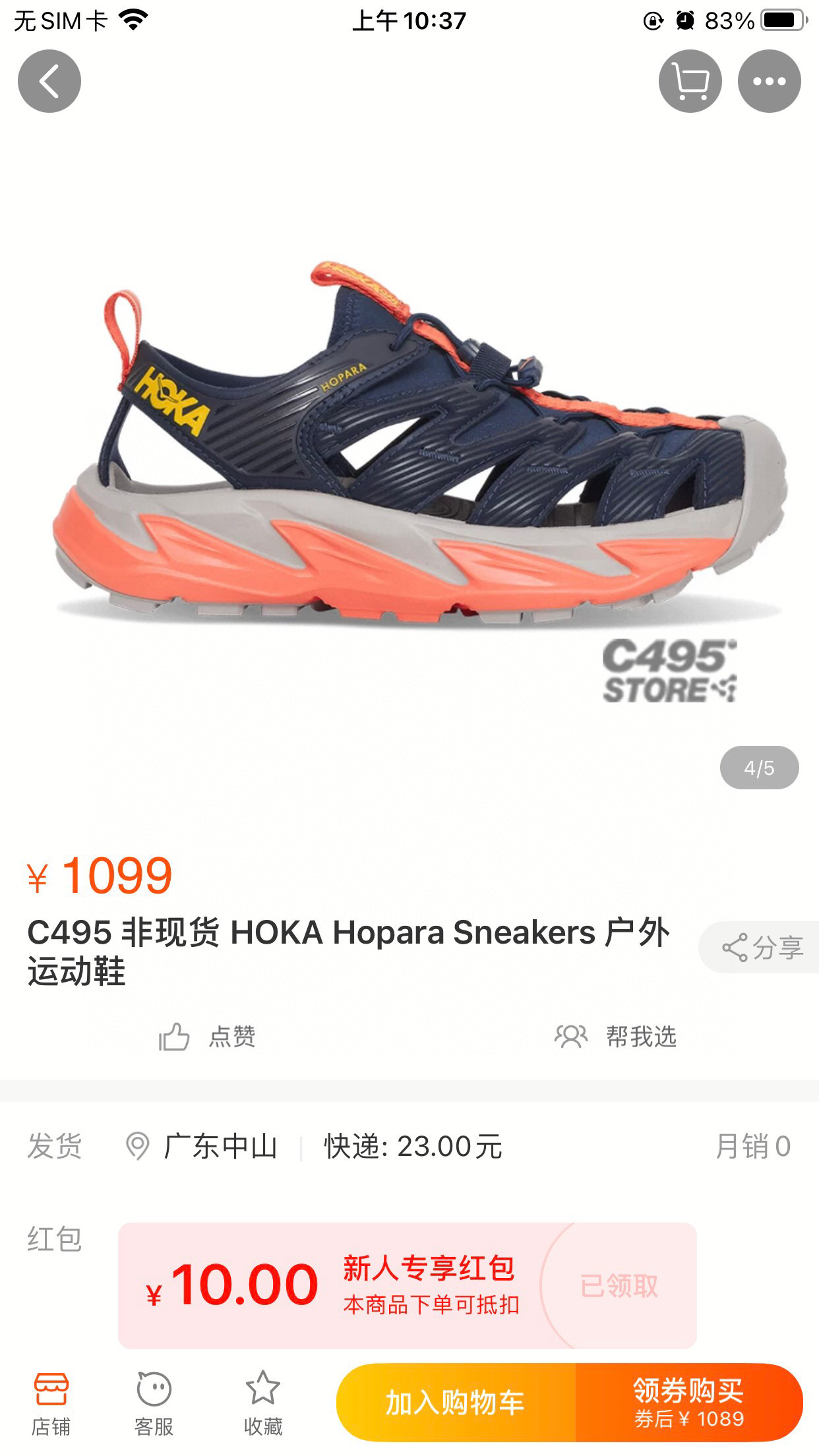 HOKA ONE ONE Hopara 男徒步机能防滑运动登山越野户外休闲凉鞋