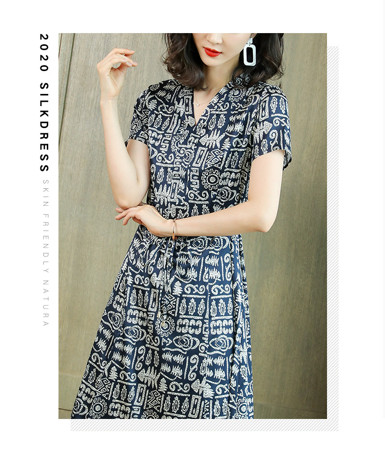 贵夫人宽松气质,桑蚕丝真丝连衣裙HR-AISHANG223