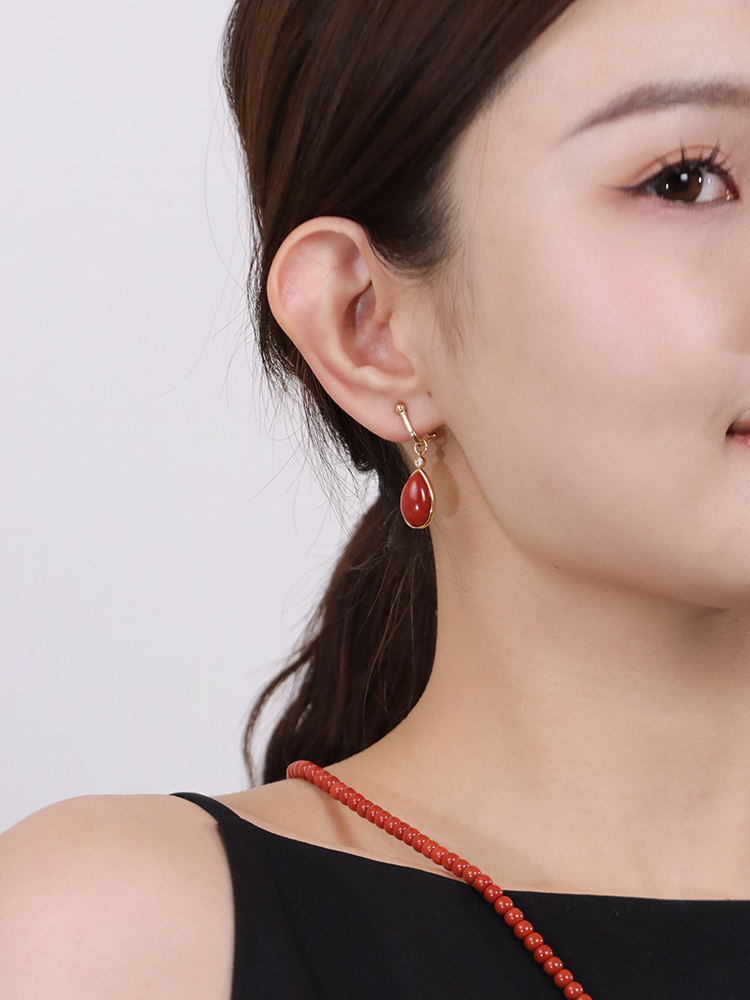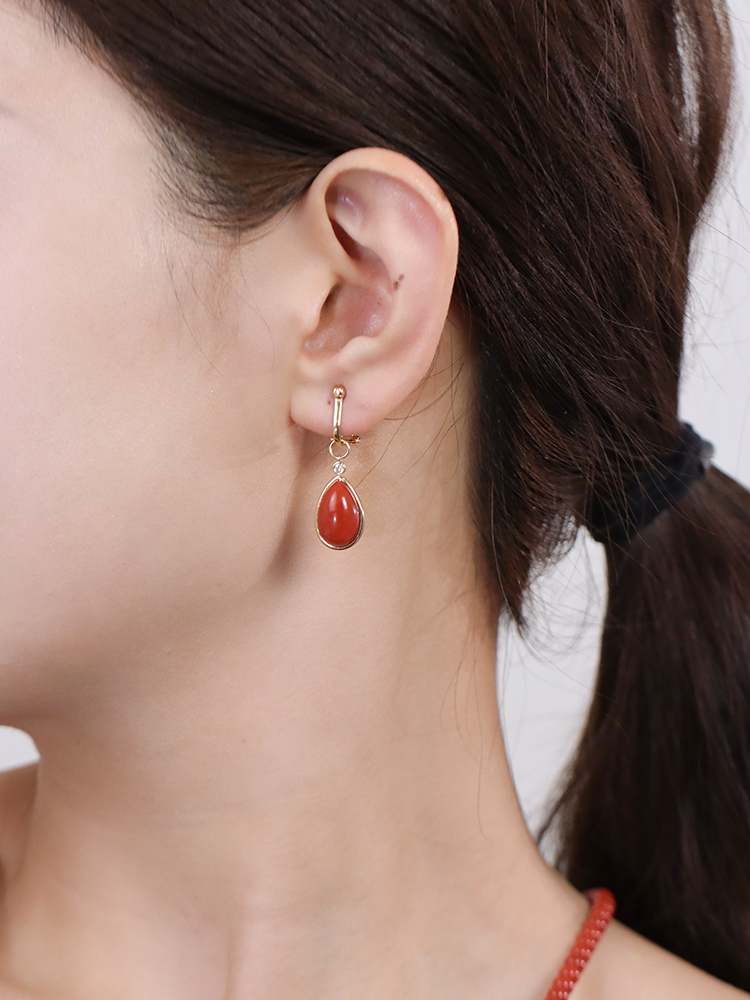 【挚友限定】耳扣款-18K金水滴南红钻石耳夹