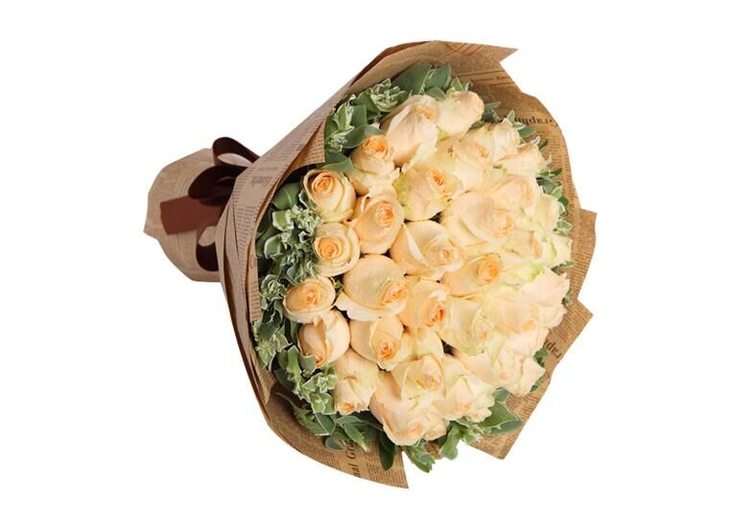 香槟玫瑰33枝,叶上花围绕