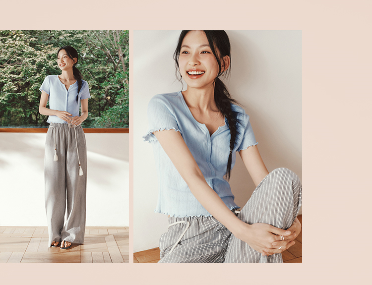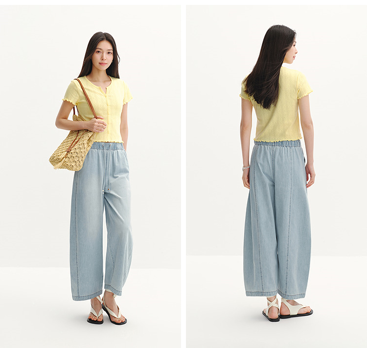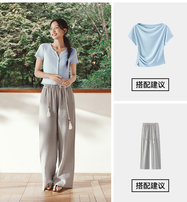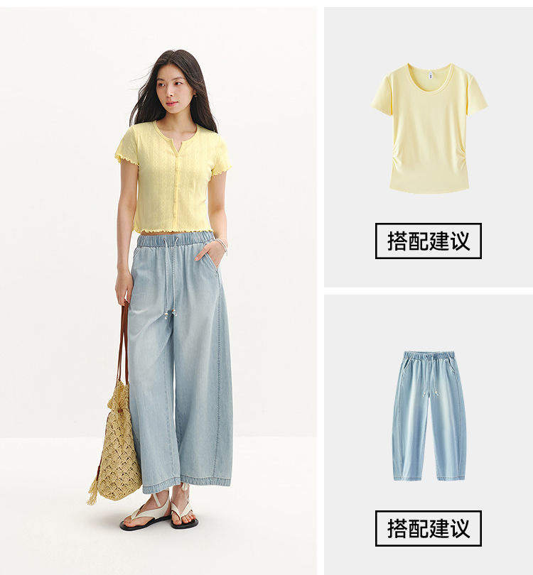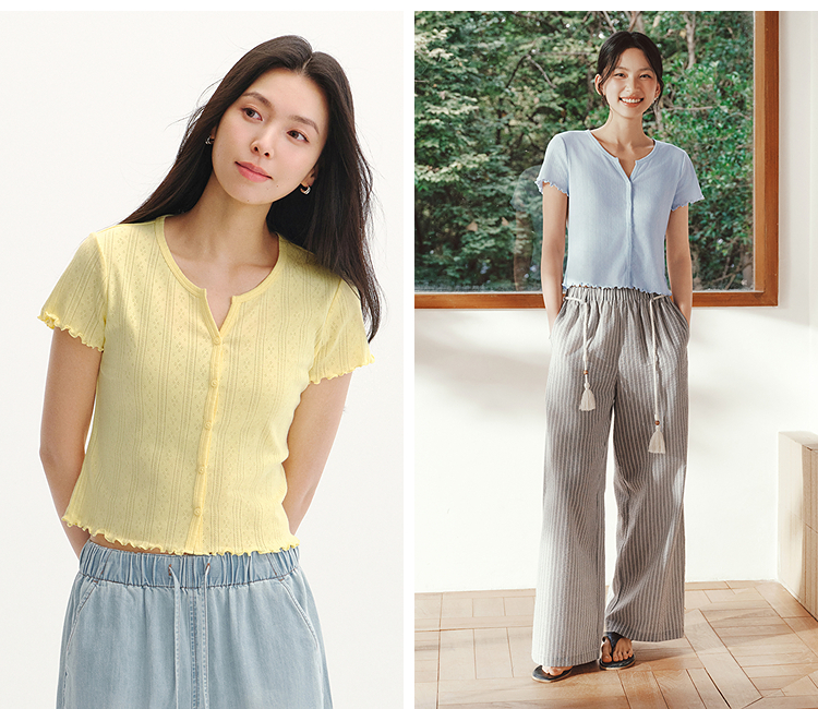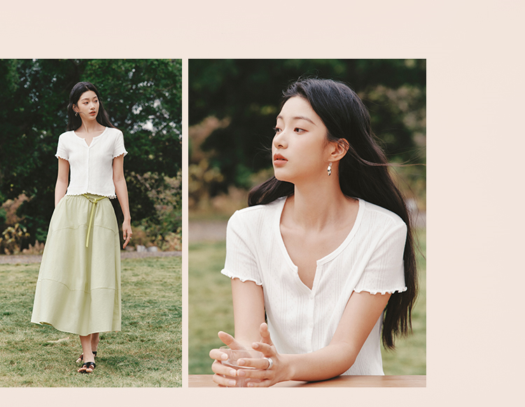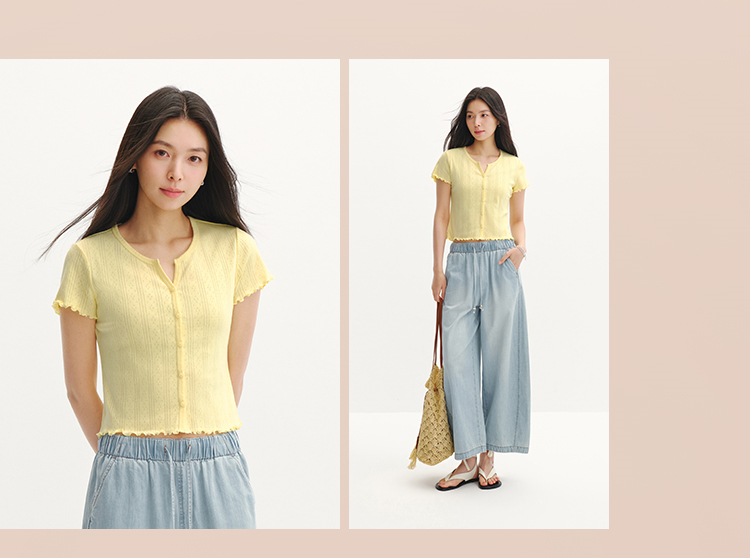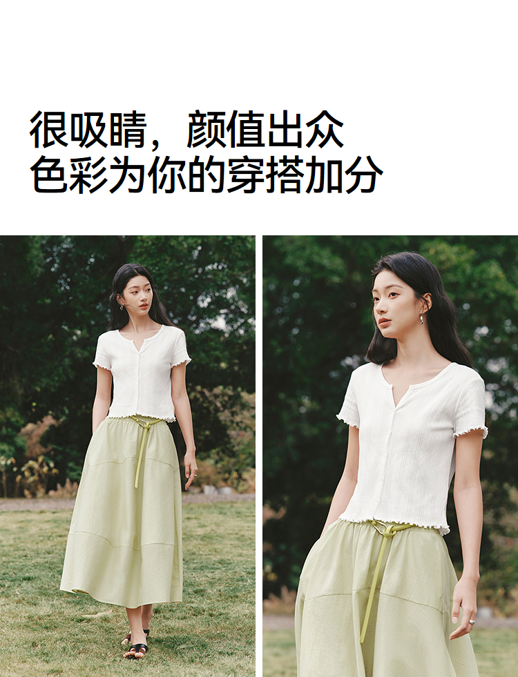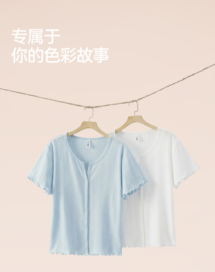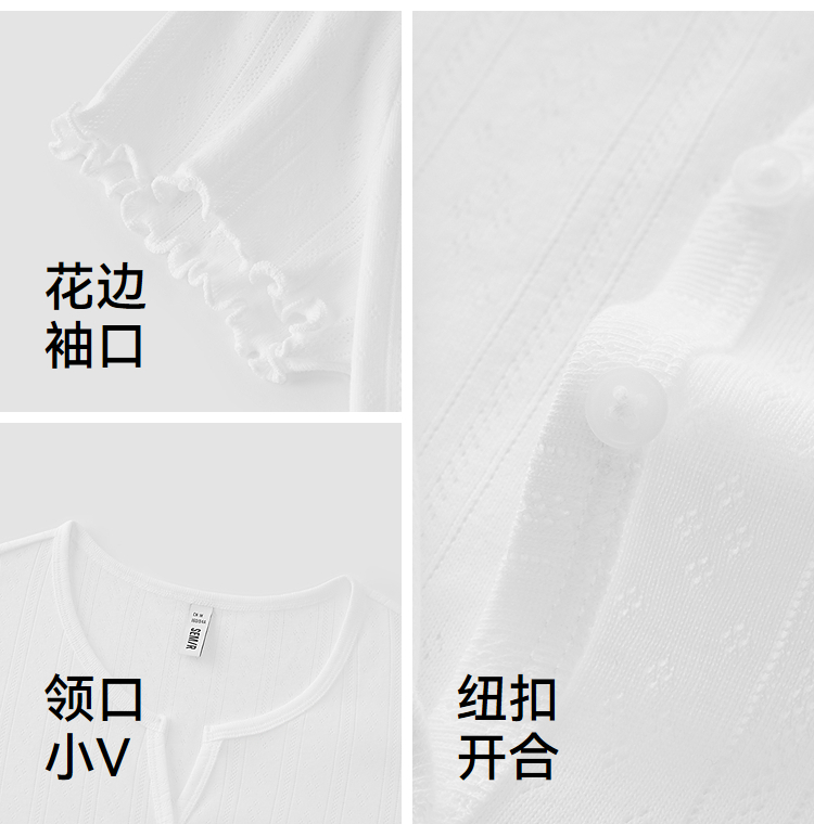 森马短袖T恤女夏季短款镂空提花肌理修身纯棉木耳边2026新款开衫