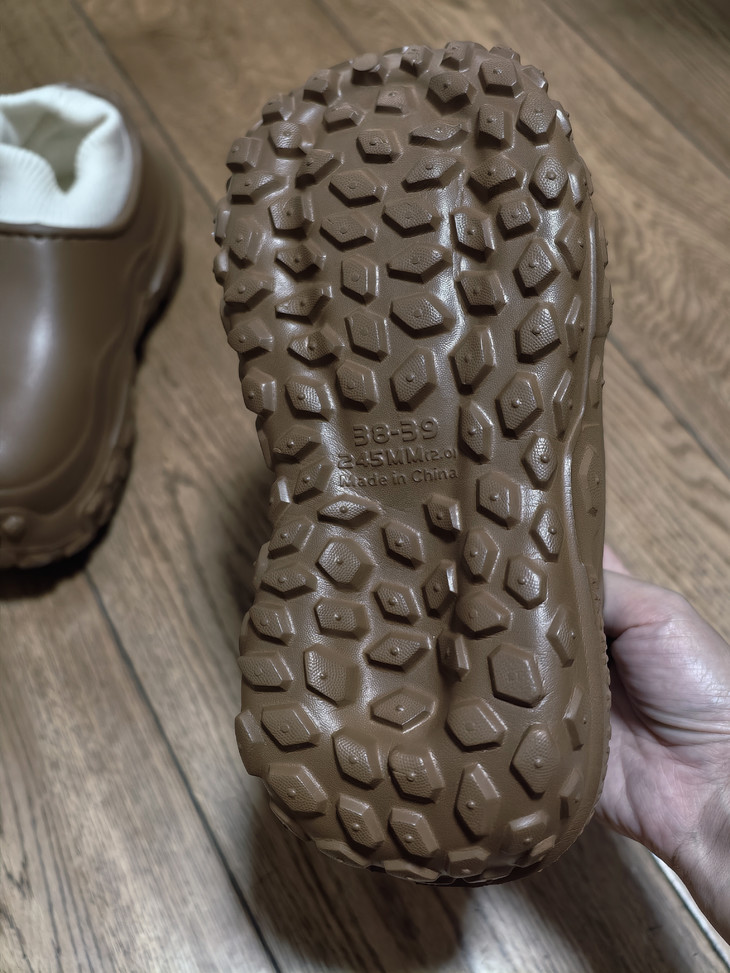 看下咱们的鞋底 专门做的防滑设计 不管你是穿着踩雪还是下雨出行 都不会打滑!!!