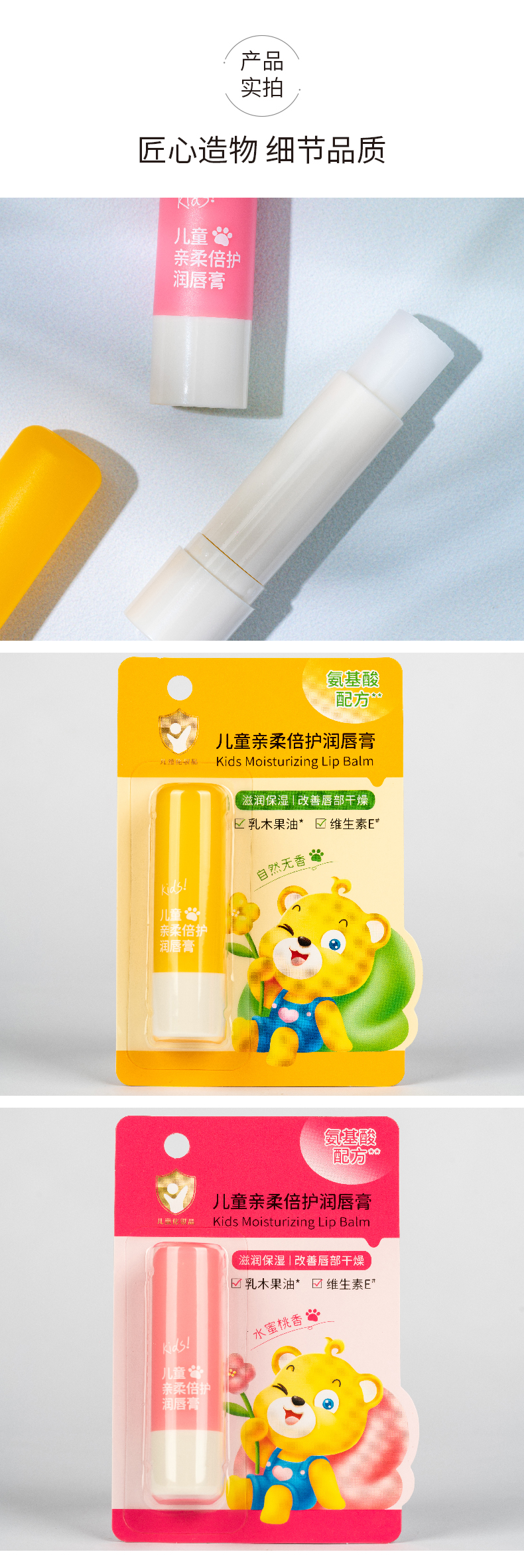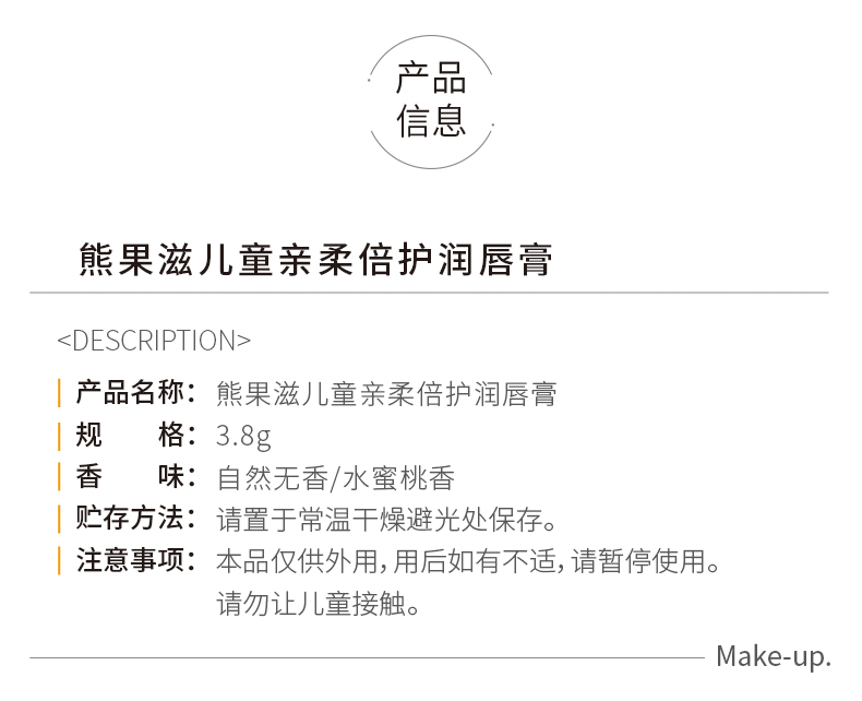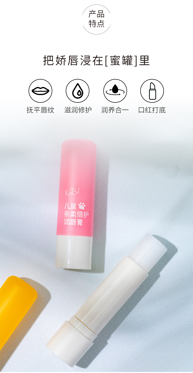 熊果滋儿童亲柔倍护润唇膏 自然无香-水蜜桃香3.8g(250557-(250558)
