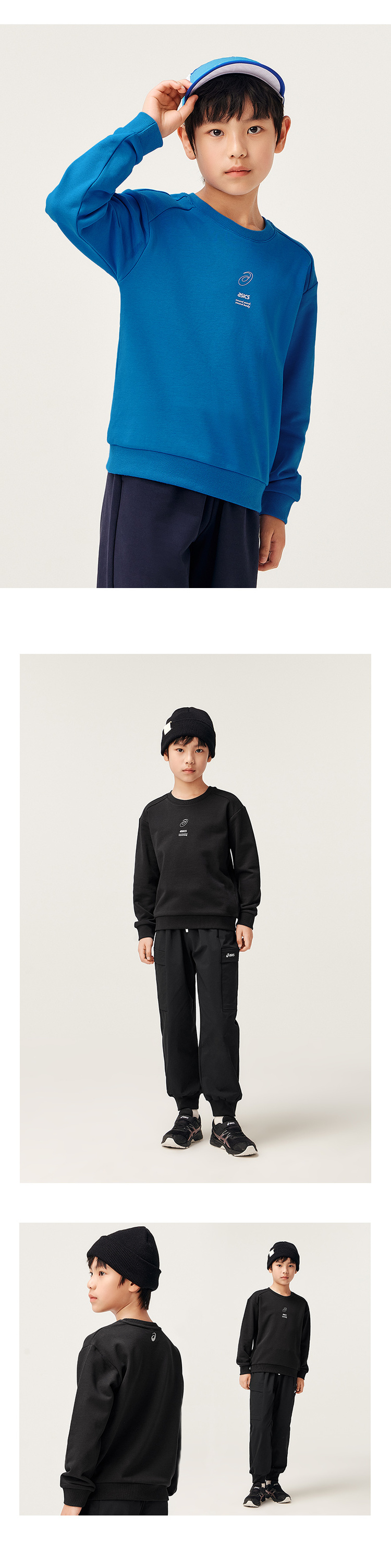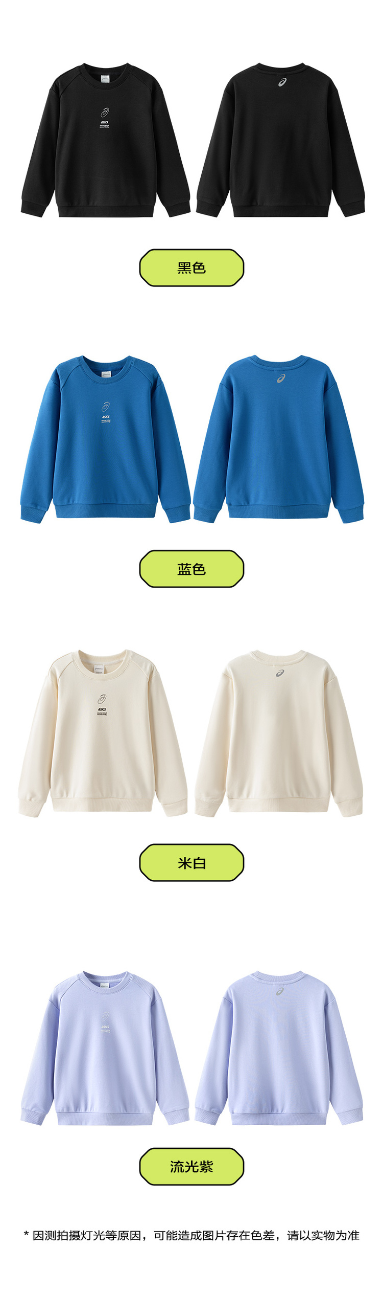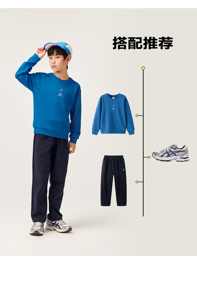 ASICS/亚瑟士童装中大童中性款长袖卫衣T恤2024秋日常基础卫衣T恤