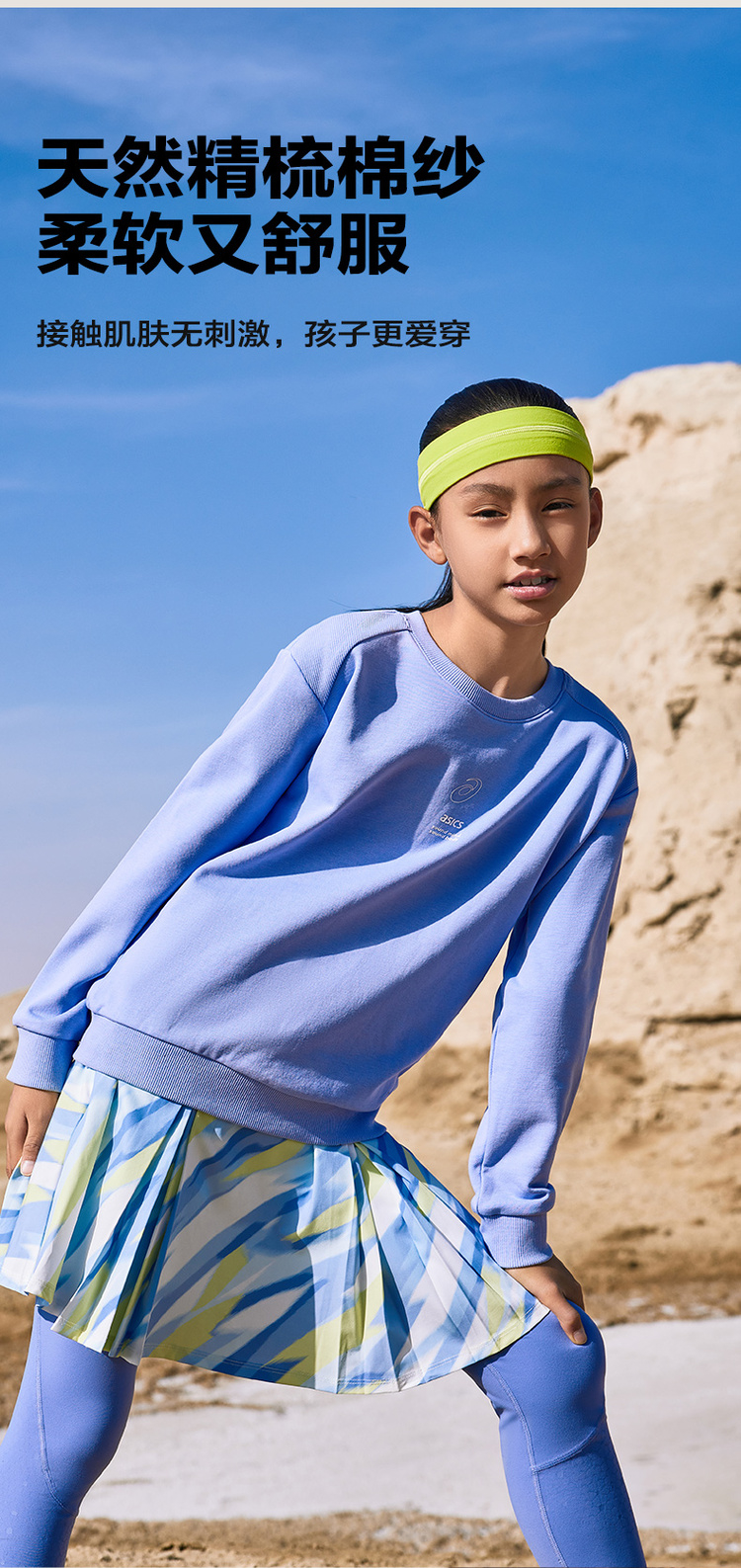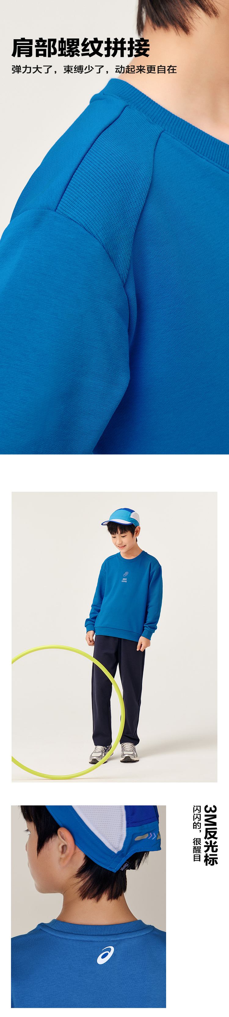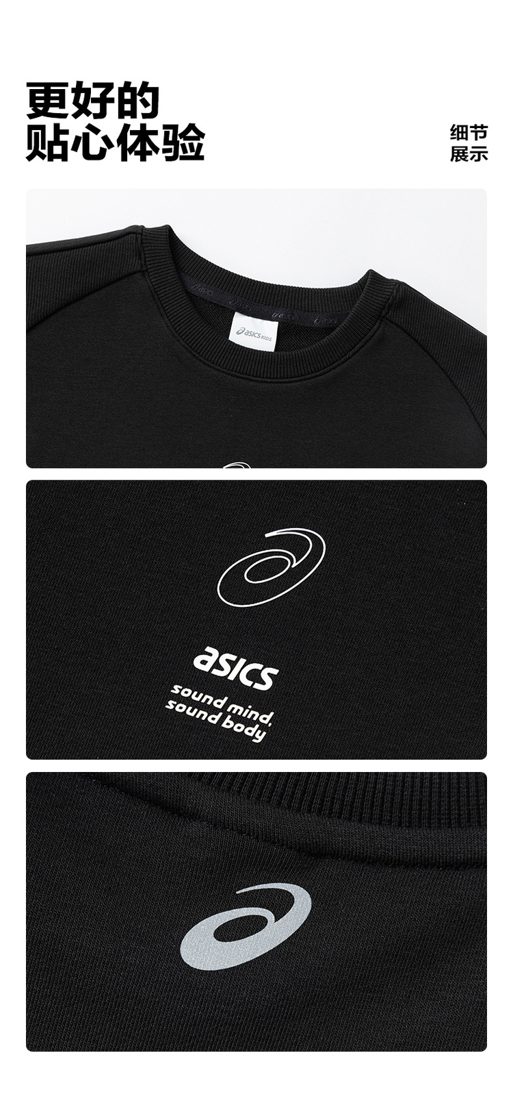 ASICS/亚瑟士童装中大童中性款长袖卫衣T恤2024秋日常基础卫衣T恤