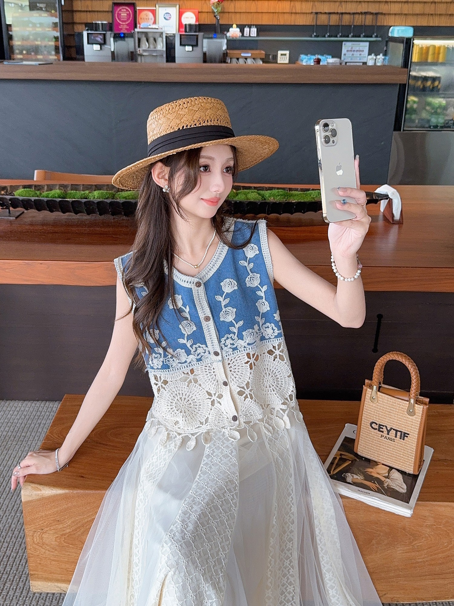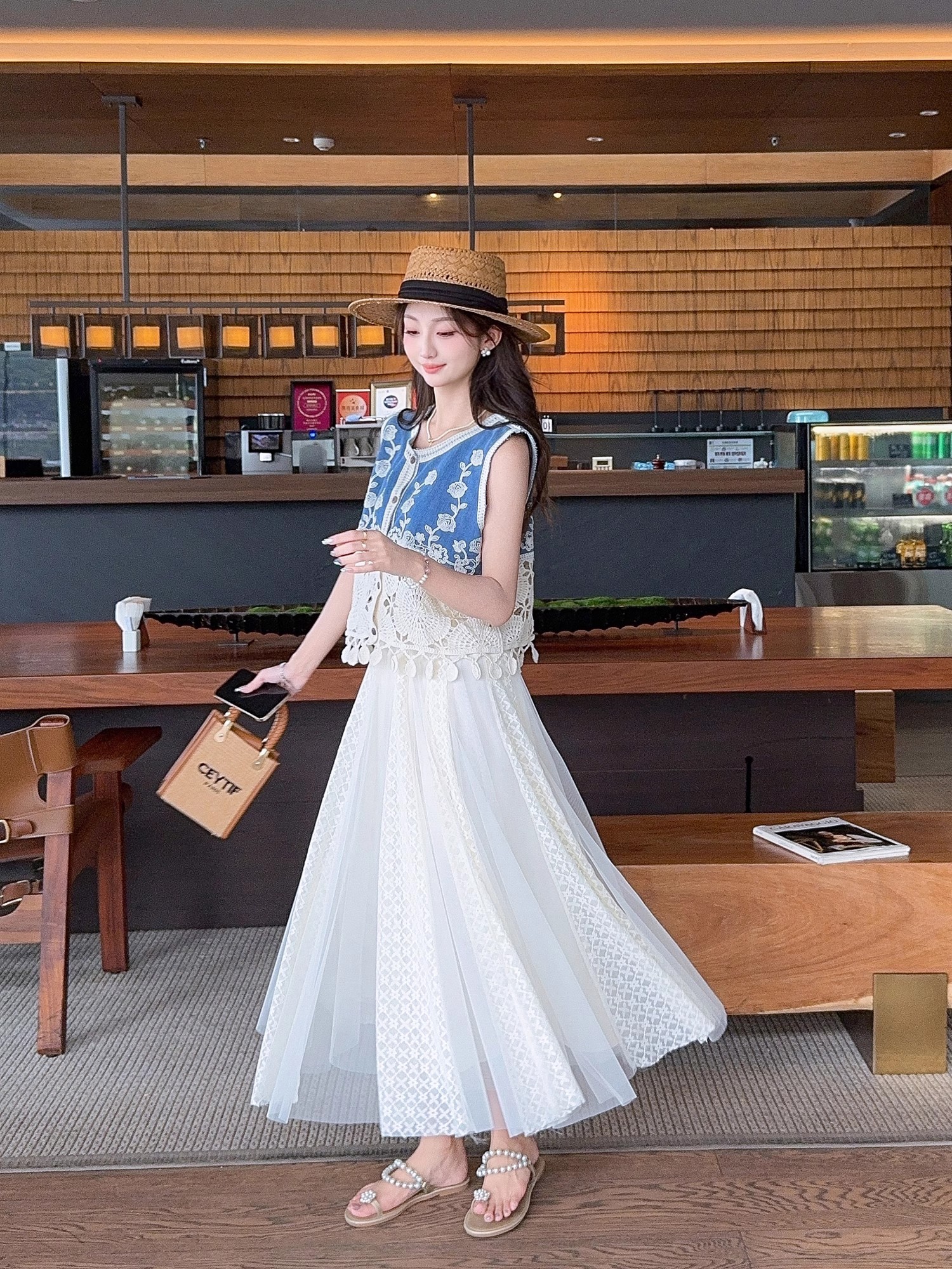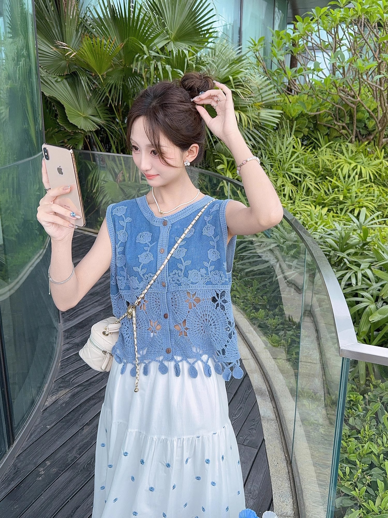 张心子【浅草须臾】圆领刺绣拼接开衫气质V领马甲 U2505006