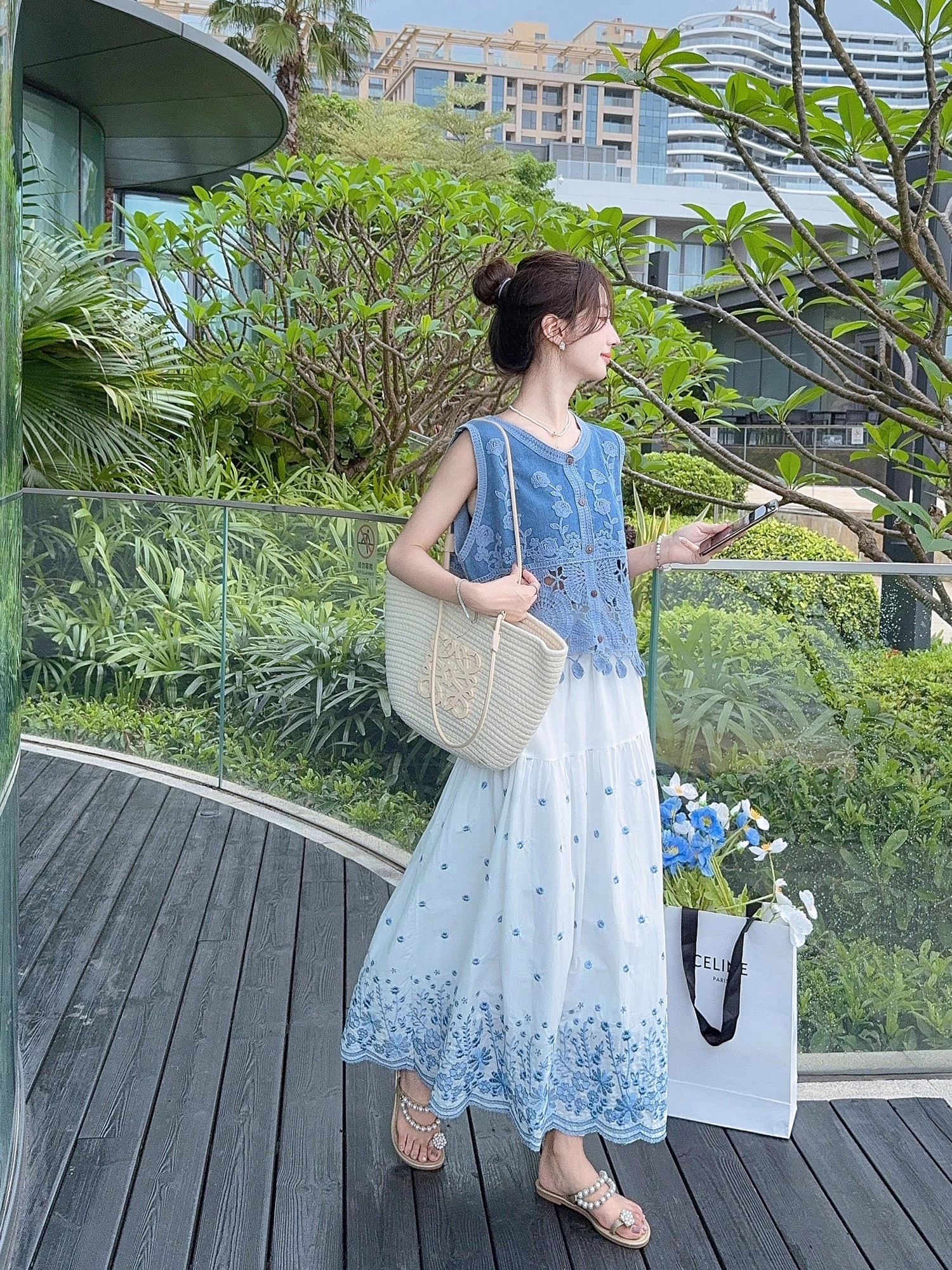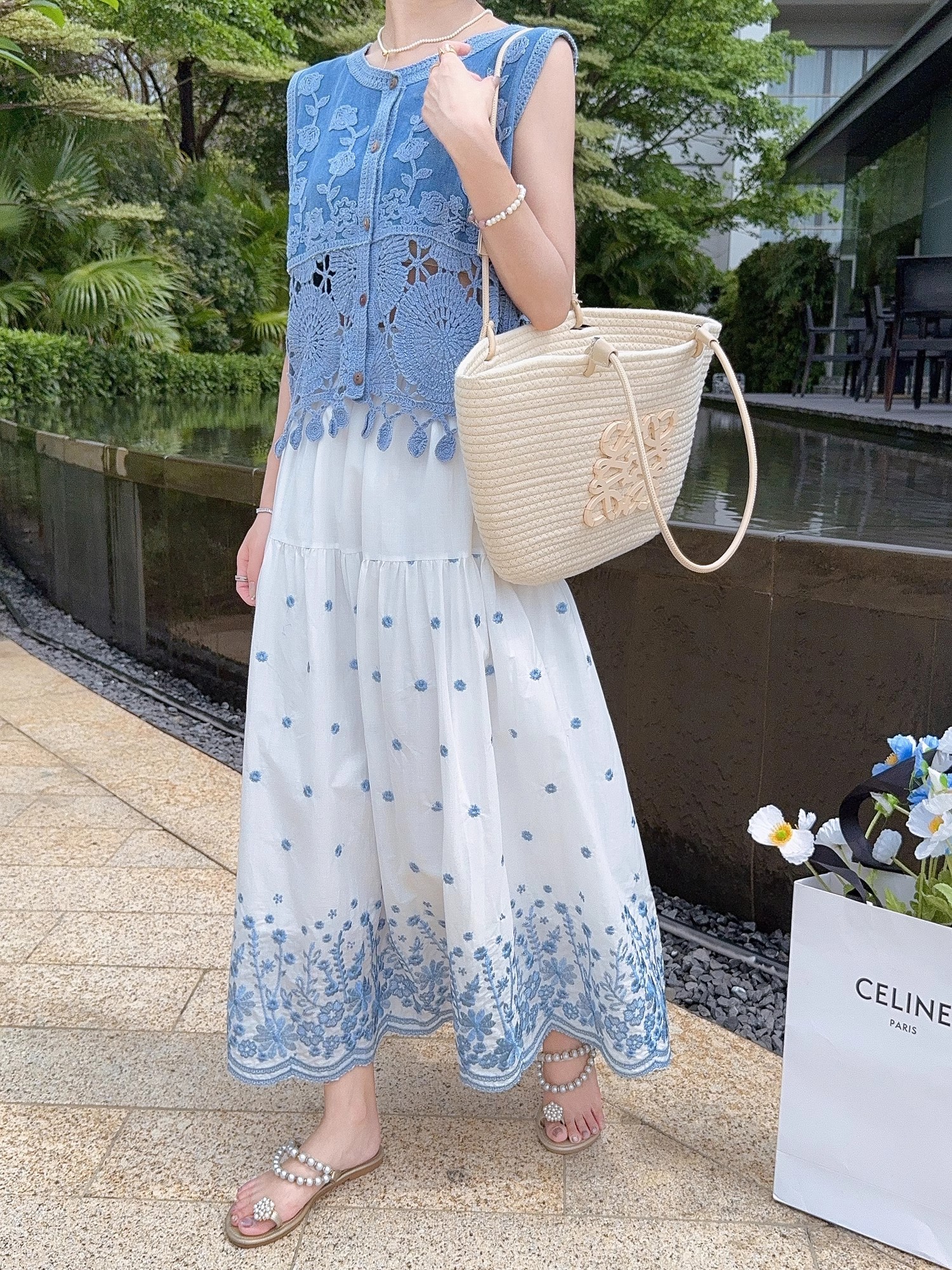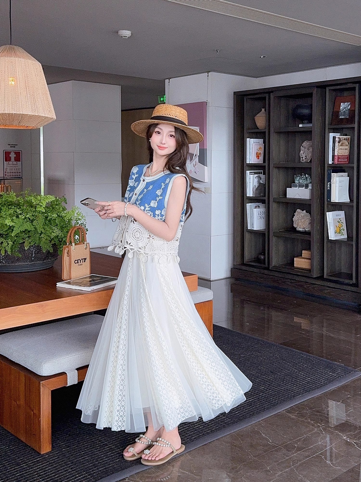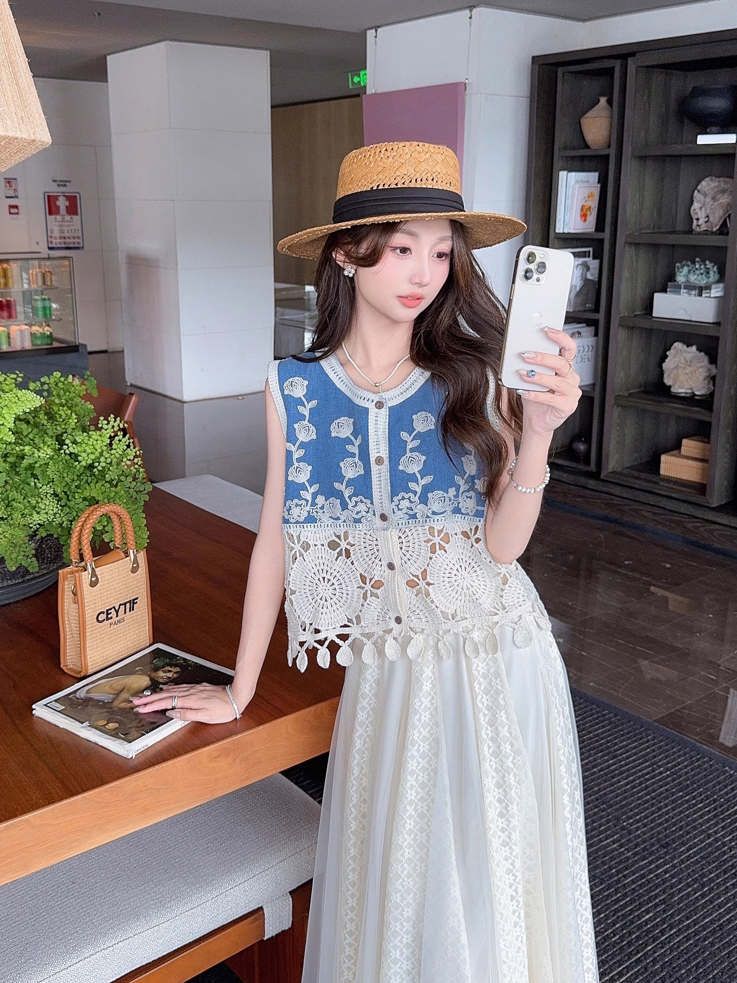 张心子【浅草须臾】圆领刺绣拼接开衫气质V领马甲 U2505006