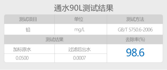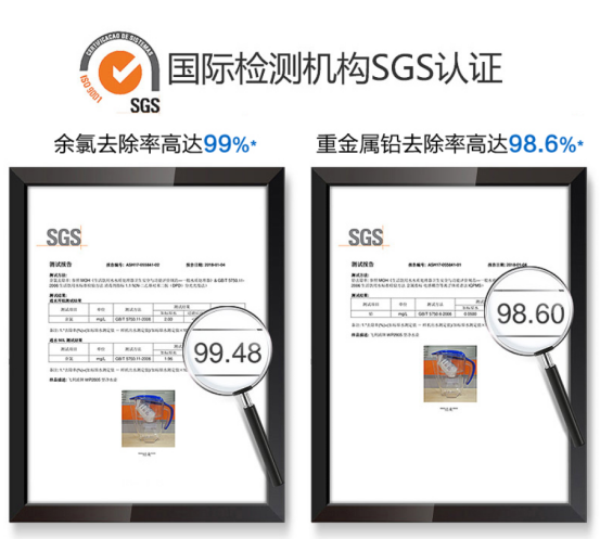 余氯去除率:SGS测试机基于余氯在实验室条件下测得出 重金属铅去除率:SGS测试机基于余氯在实验室条件下测出