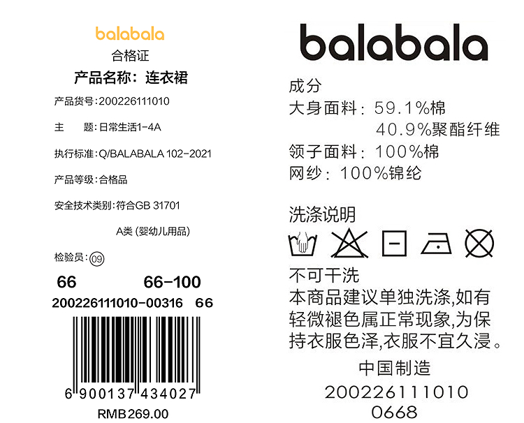 【商场同款】巴拉巴拉宝宝连衣裙婴儿夏季纱裙2026新款甜美精致萌