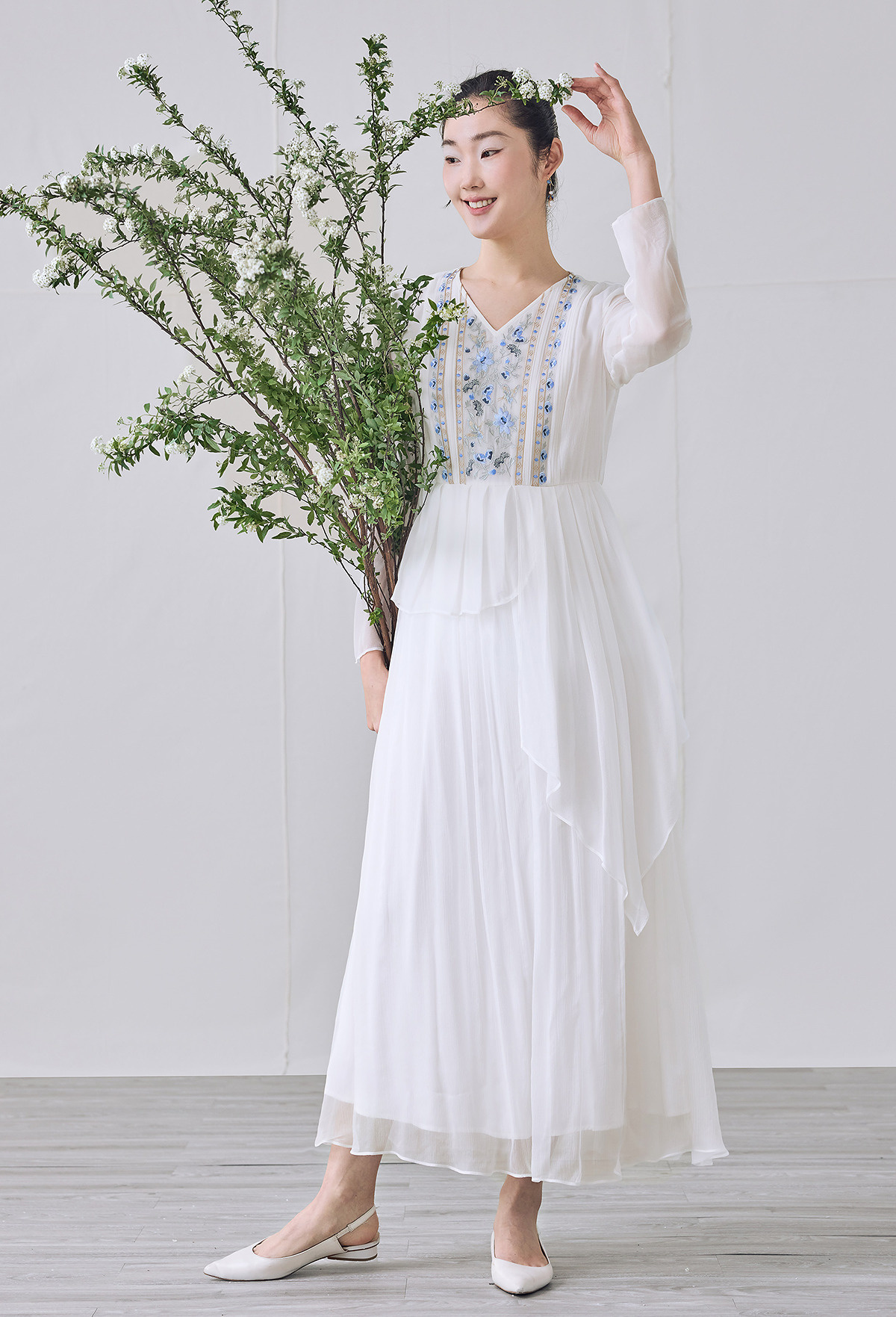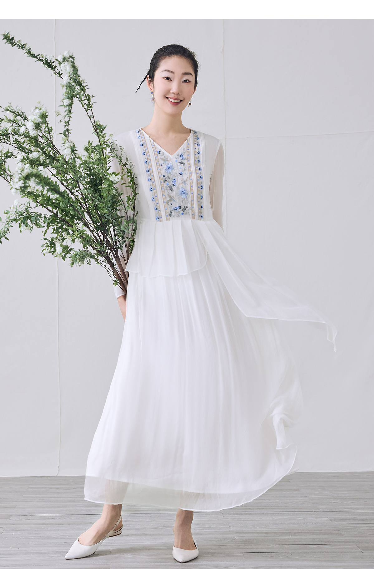 【林栖设计小店】桑蚕丝绣花连衣裙新中式不规则下摆2025夏季新品长裙女1952074