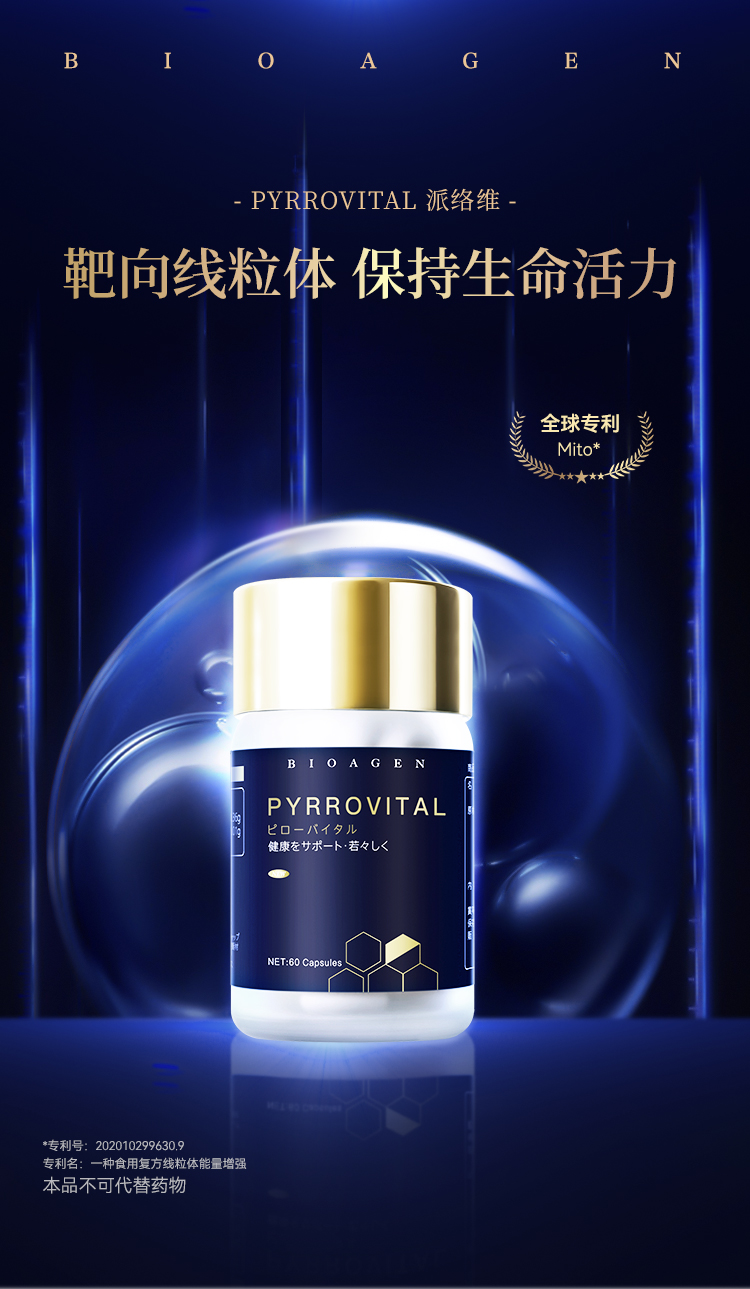 【预售-2周后安排发货】【 香港直邮 时效7-15天】博奥真Bioagen 派络维基础款单瓶装(60粒/瓶)日本官方复合补充剂 小蓝泵 能量泵