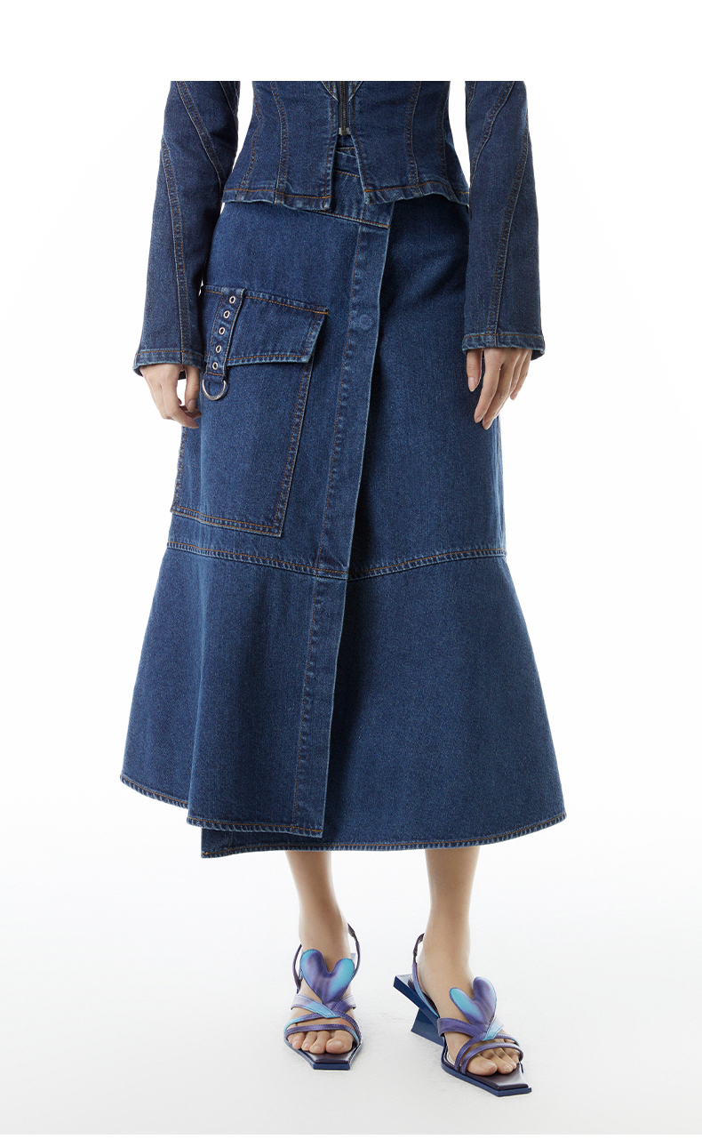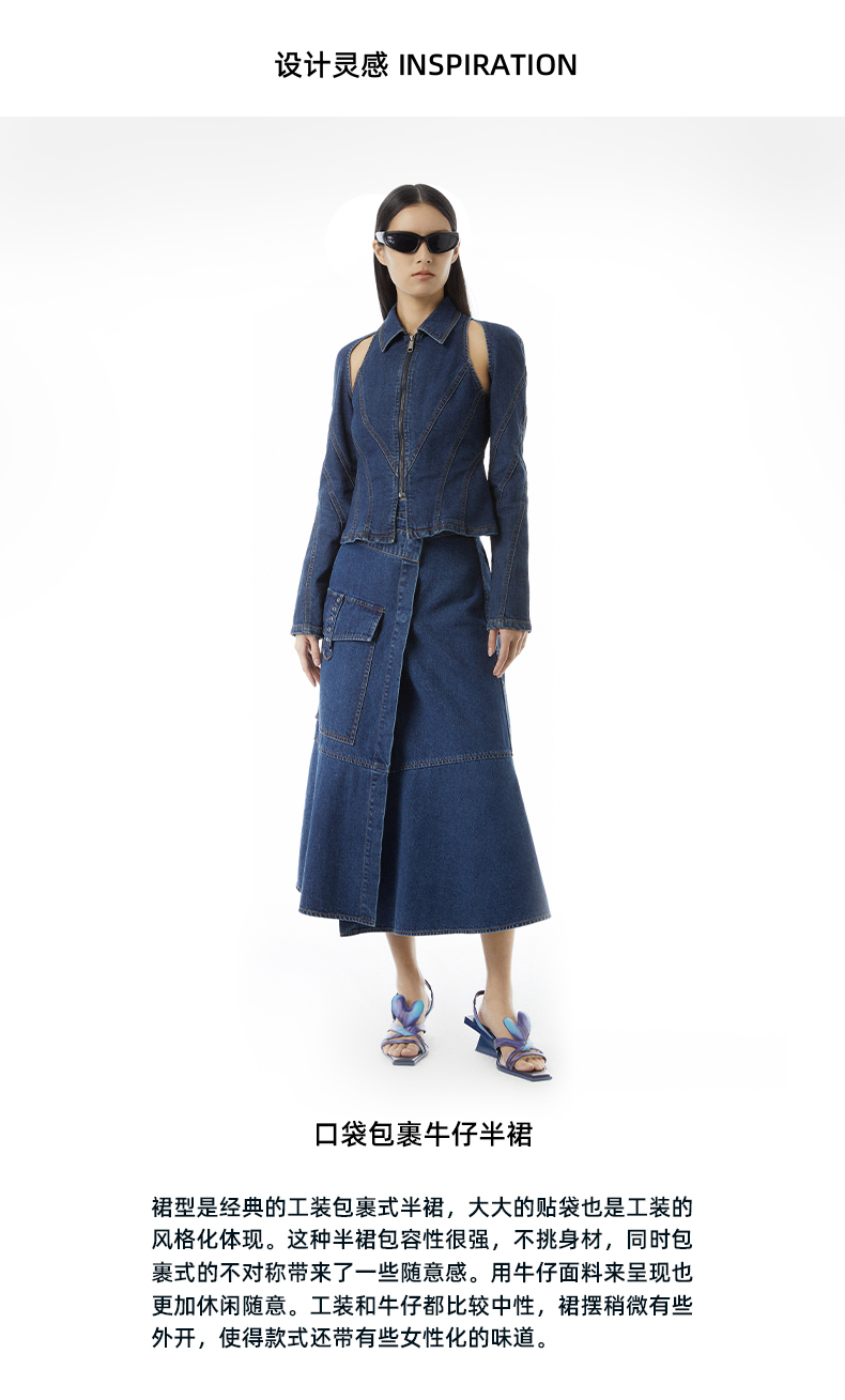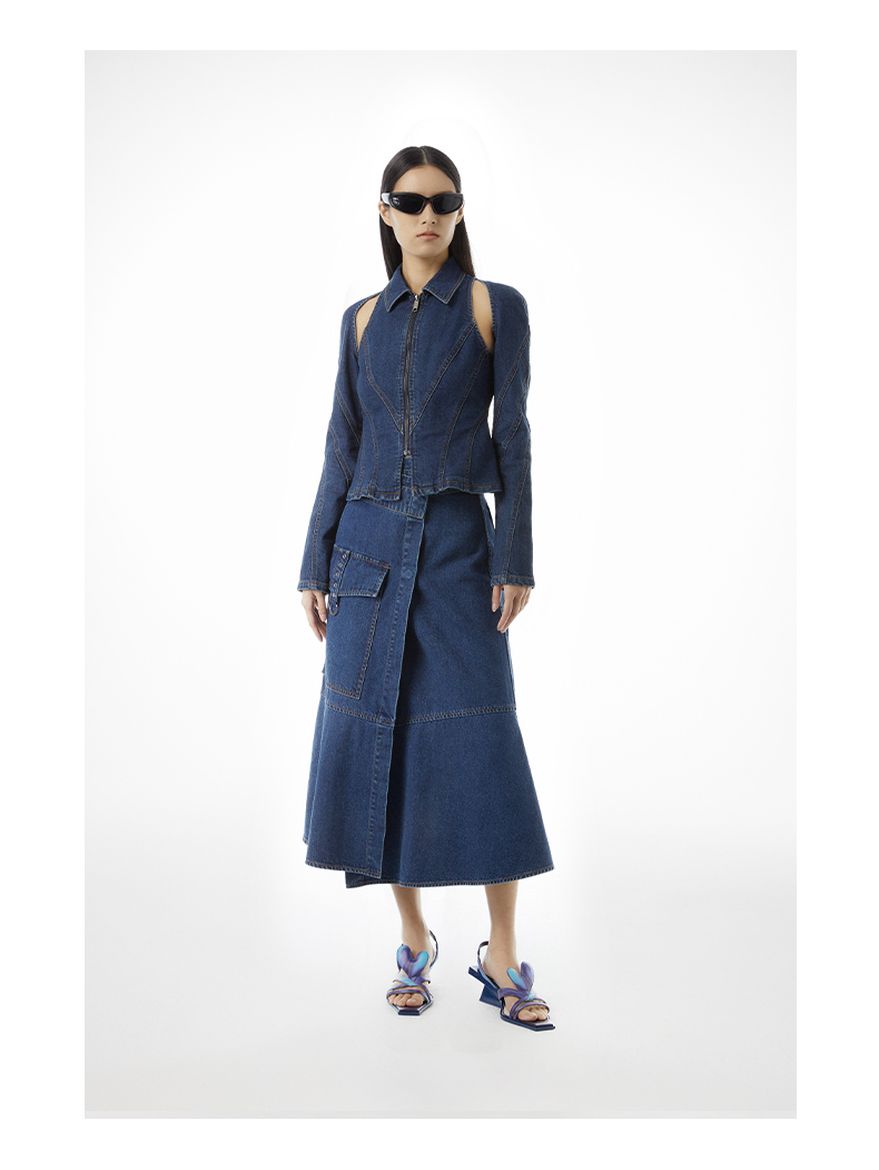 lost in echo设计师品牌Ari系列两件式背心披肩牛仔外套半裙套装