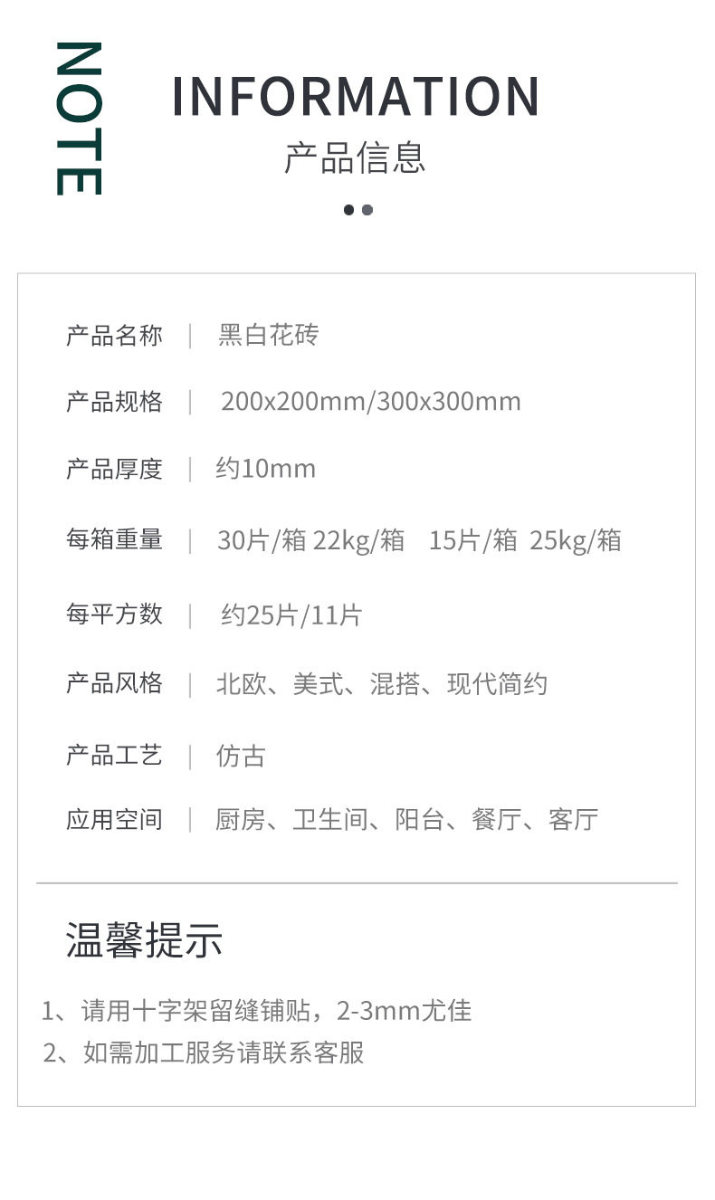 连锁民宿花砖墙地砖艺术小瓷砖几何厨卫黑白花砖200300北欧门店 商品图3