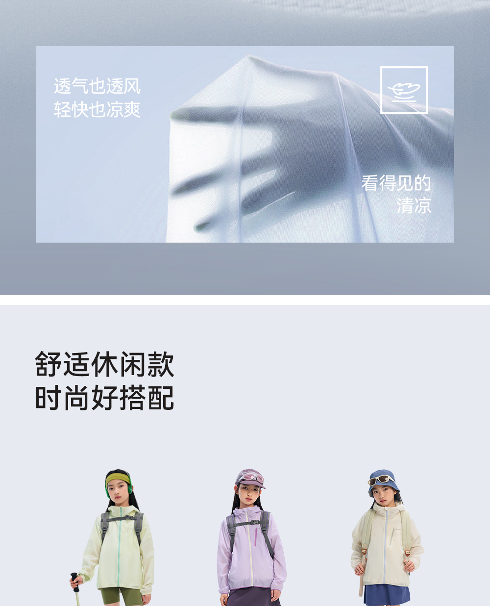 伯希和户外儿童防晒衣男童夏季新款女童轻薄透气防晒服运动外套