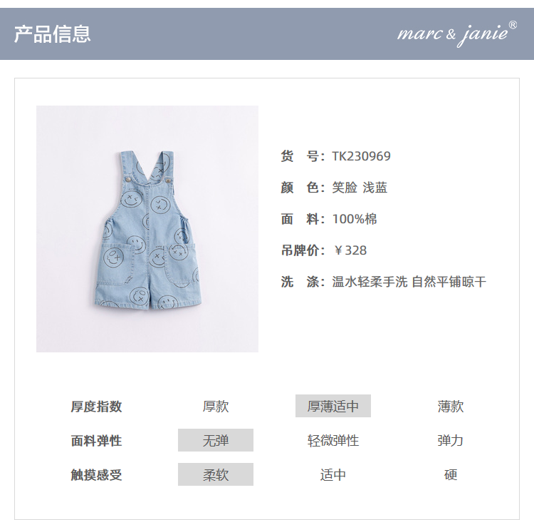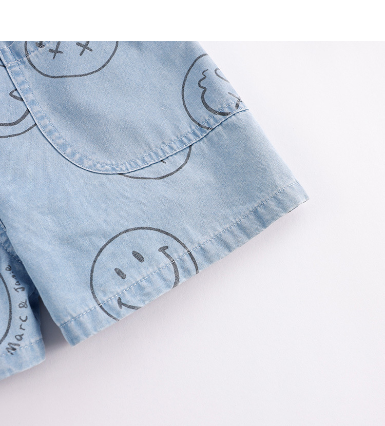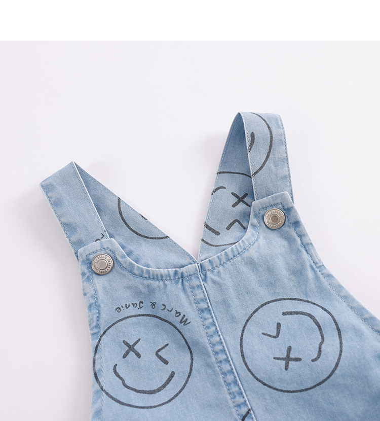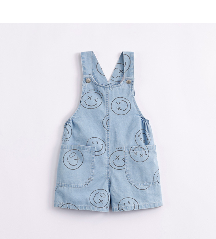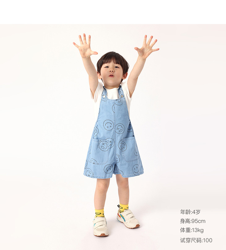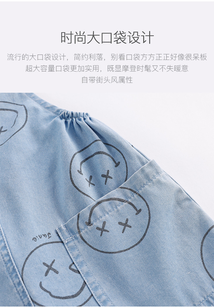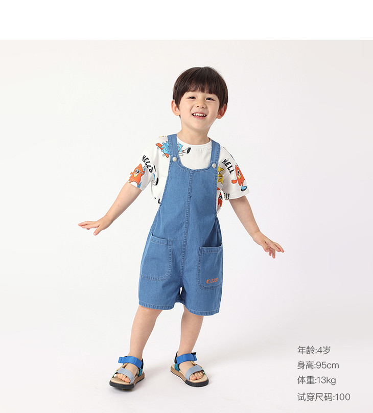 马克珍妮夏装男童运动风纯棉牛仔背带裤 儿童五分裤230969