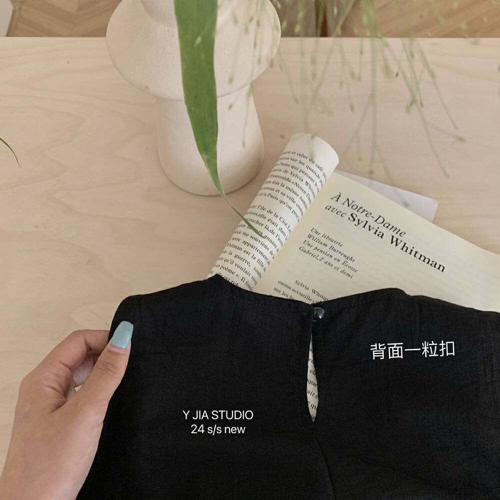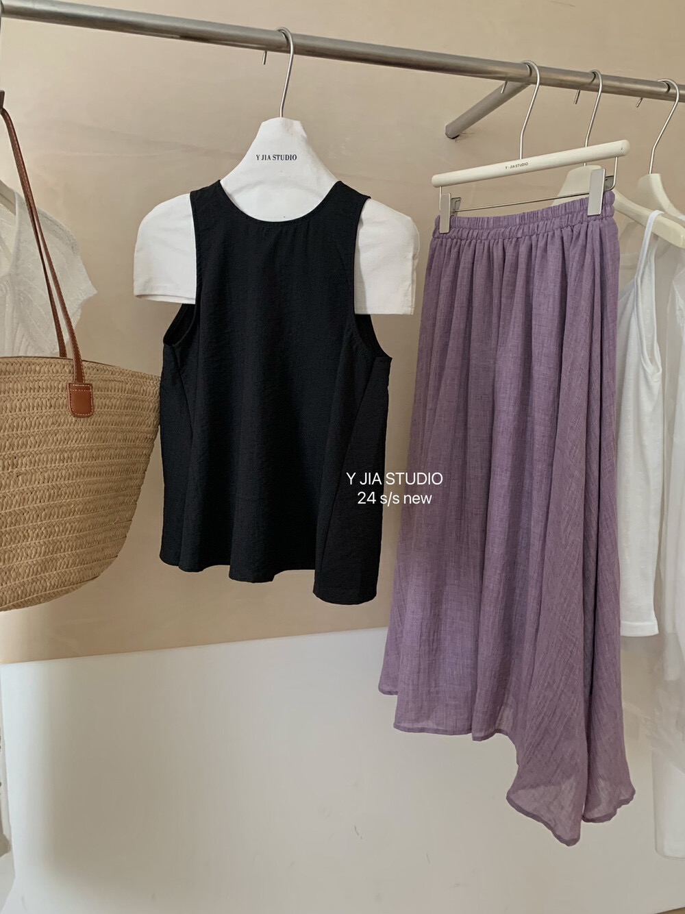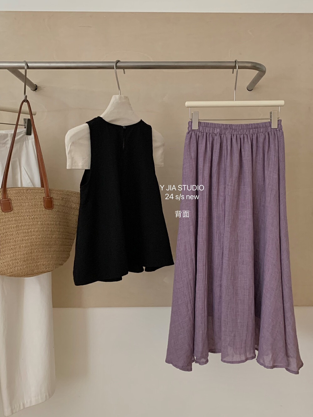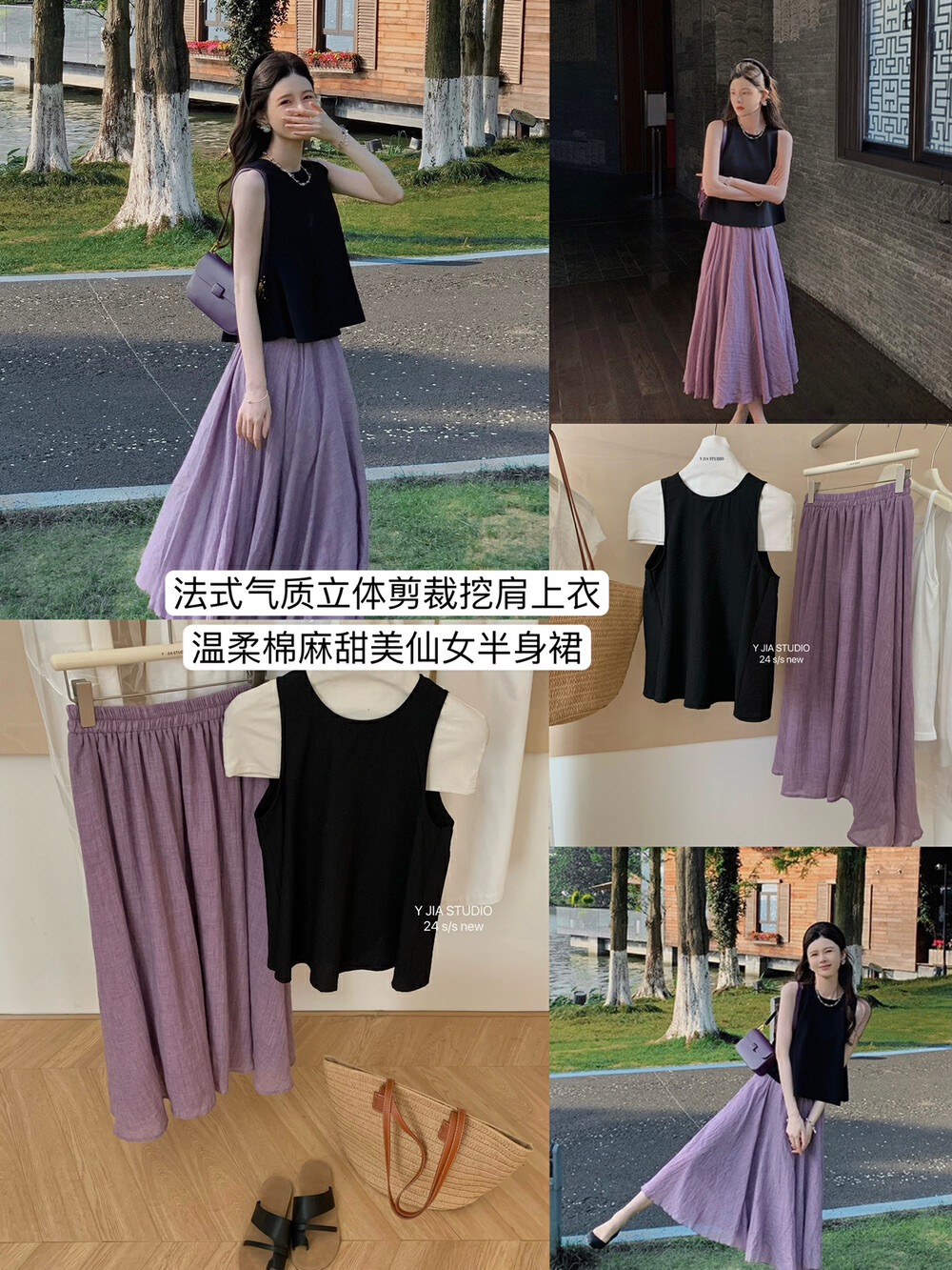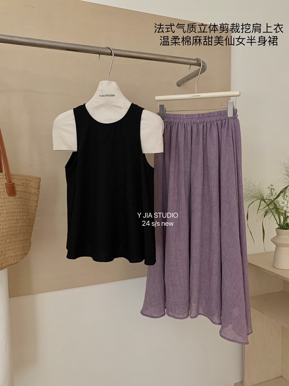 【GZ】无忧购法式气质立领裁剪挖肩上衣+温柔棉麻甜美仙女半身裙套装3628-3(截单后7天发货)25年清仓捡漏