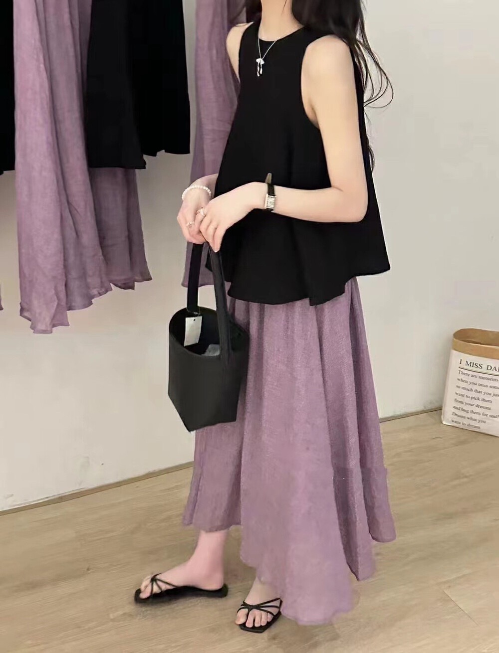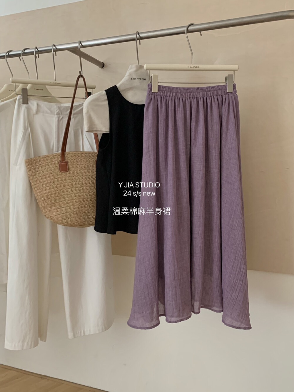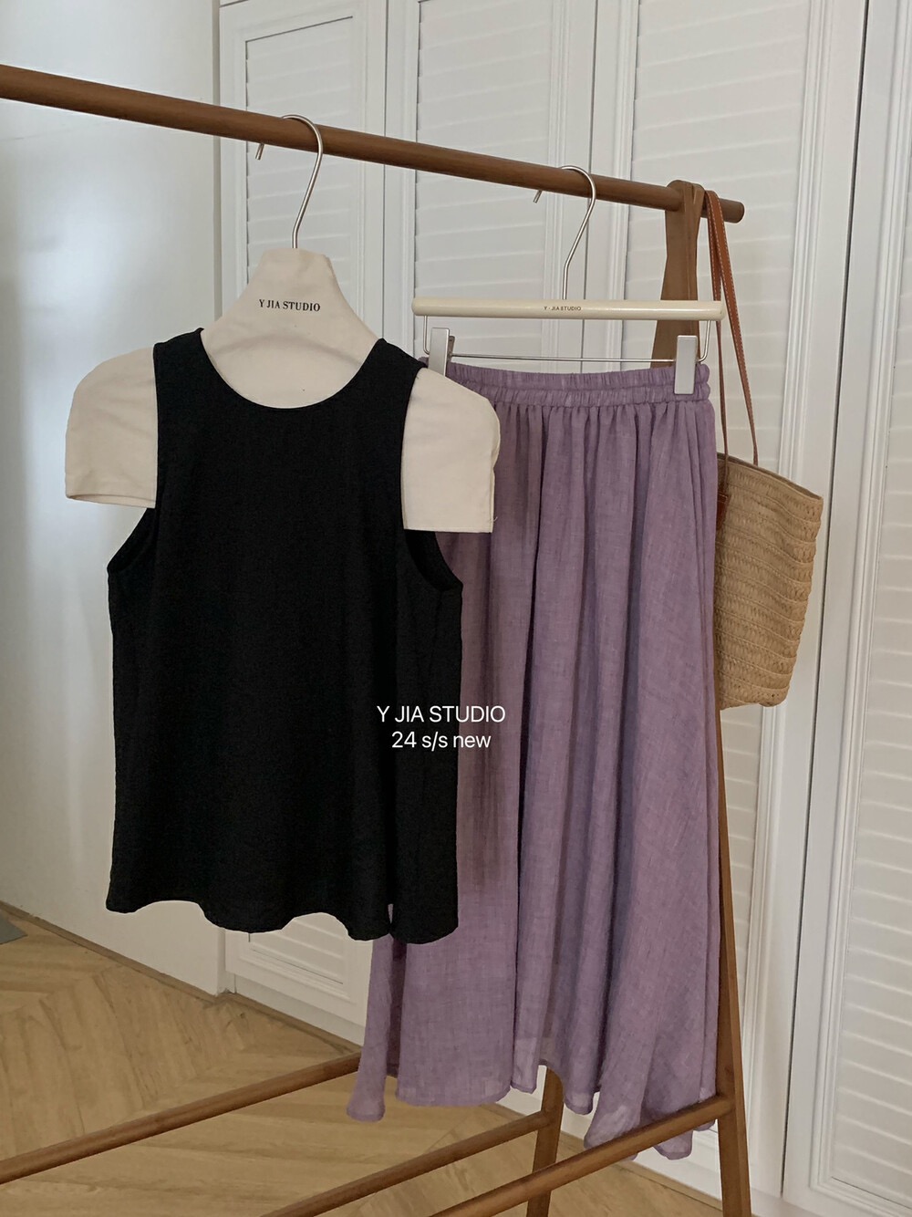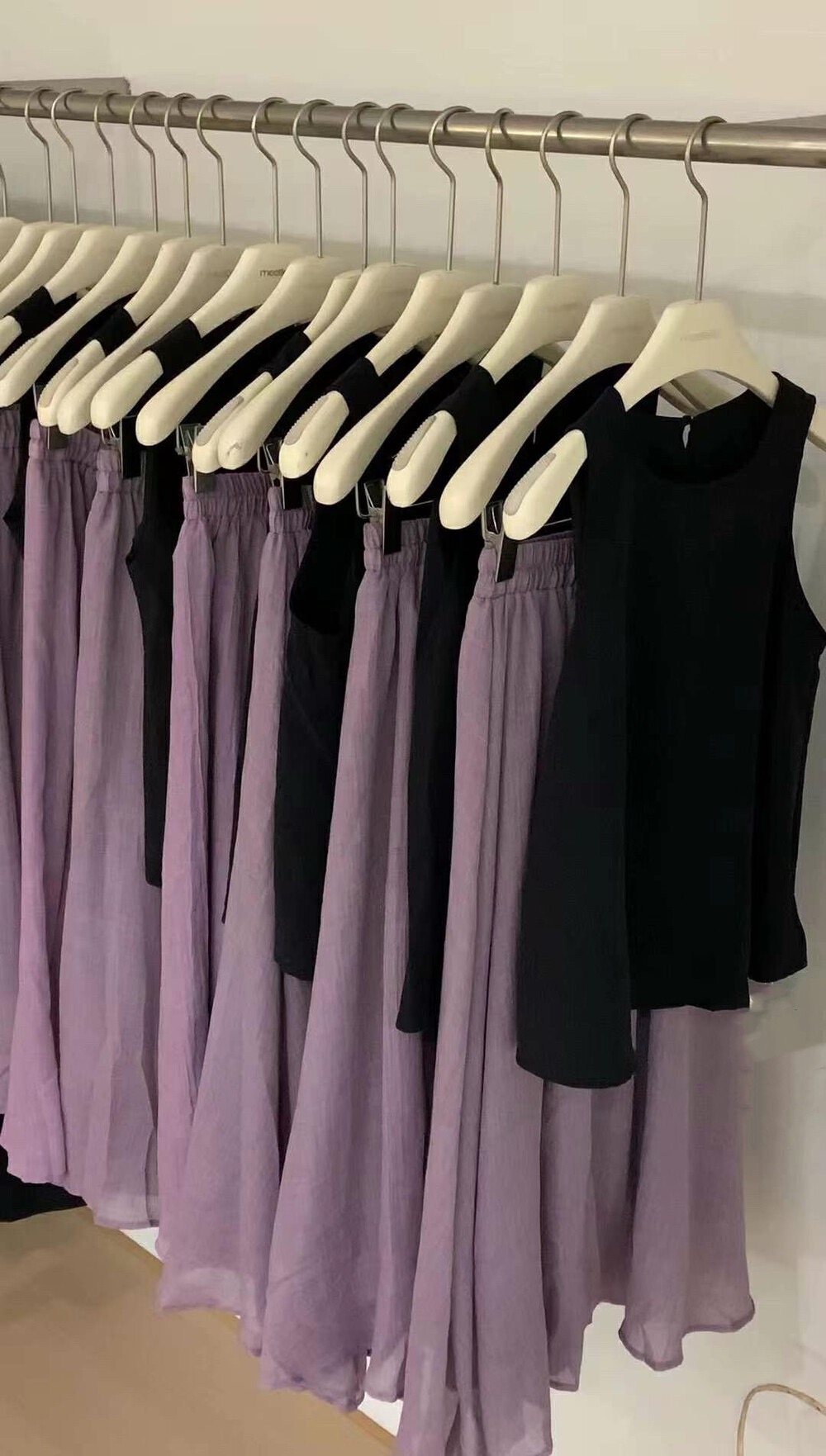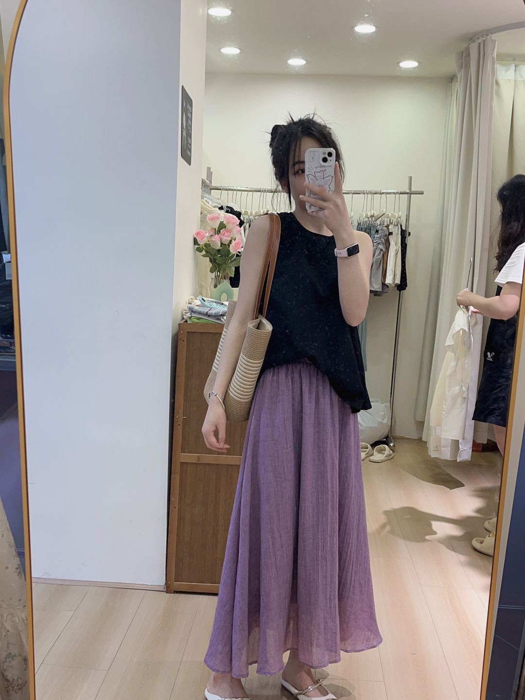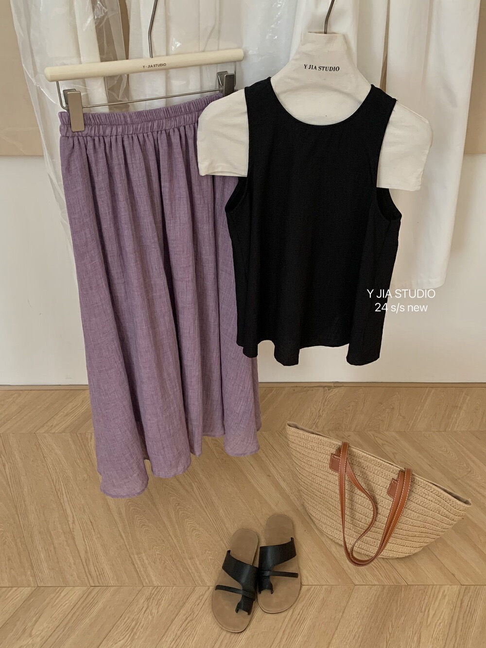 【GZ】无忧购法式气质立领裁剪挖肩上衣+温柔棉麻甜美仙女半身裙套装3628-3(截单后7天发货)25年清仓捡漏
