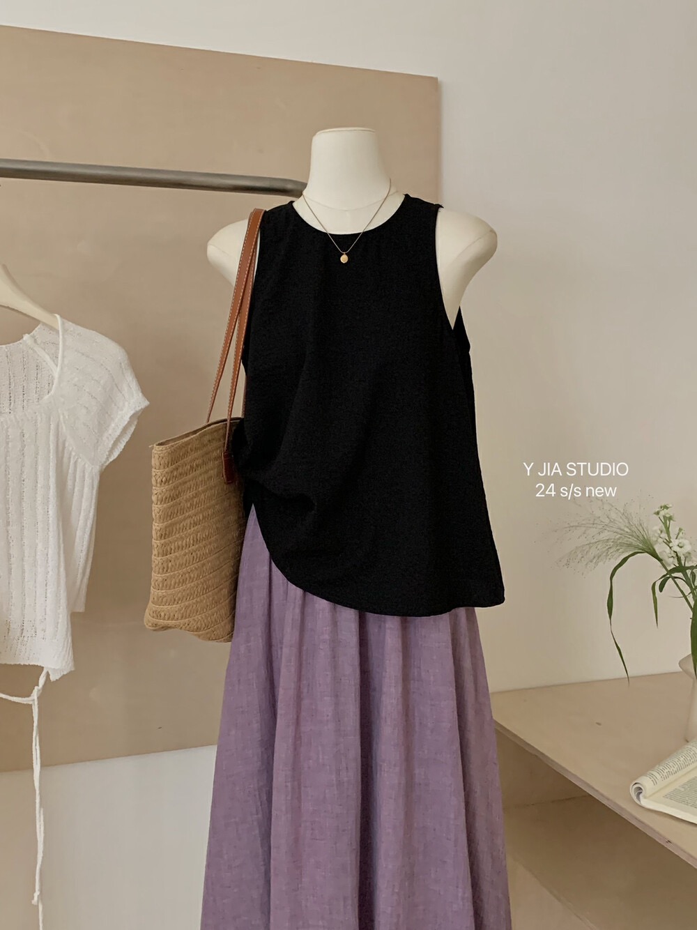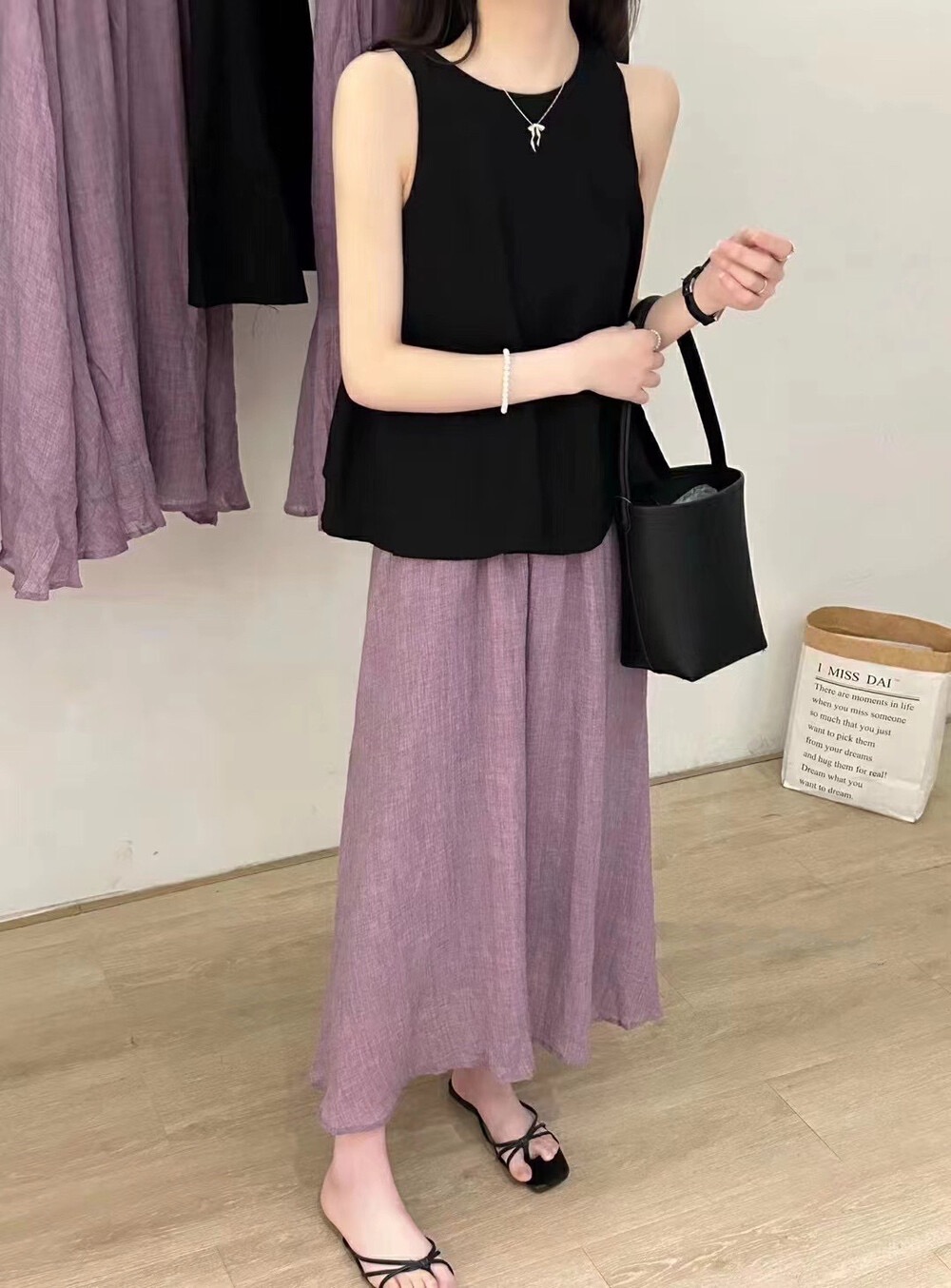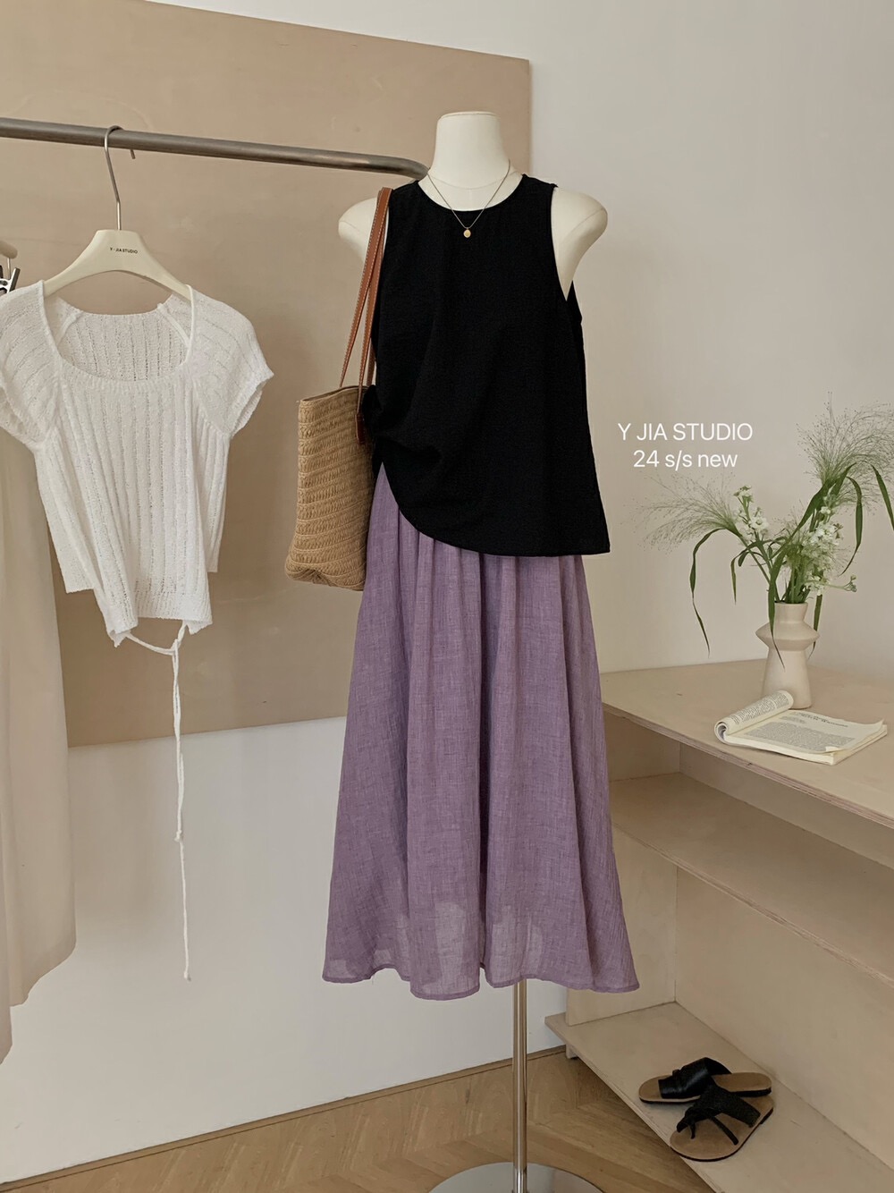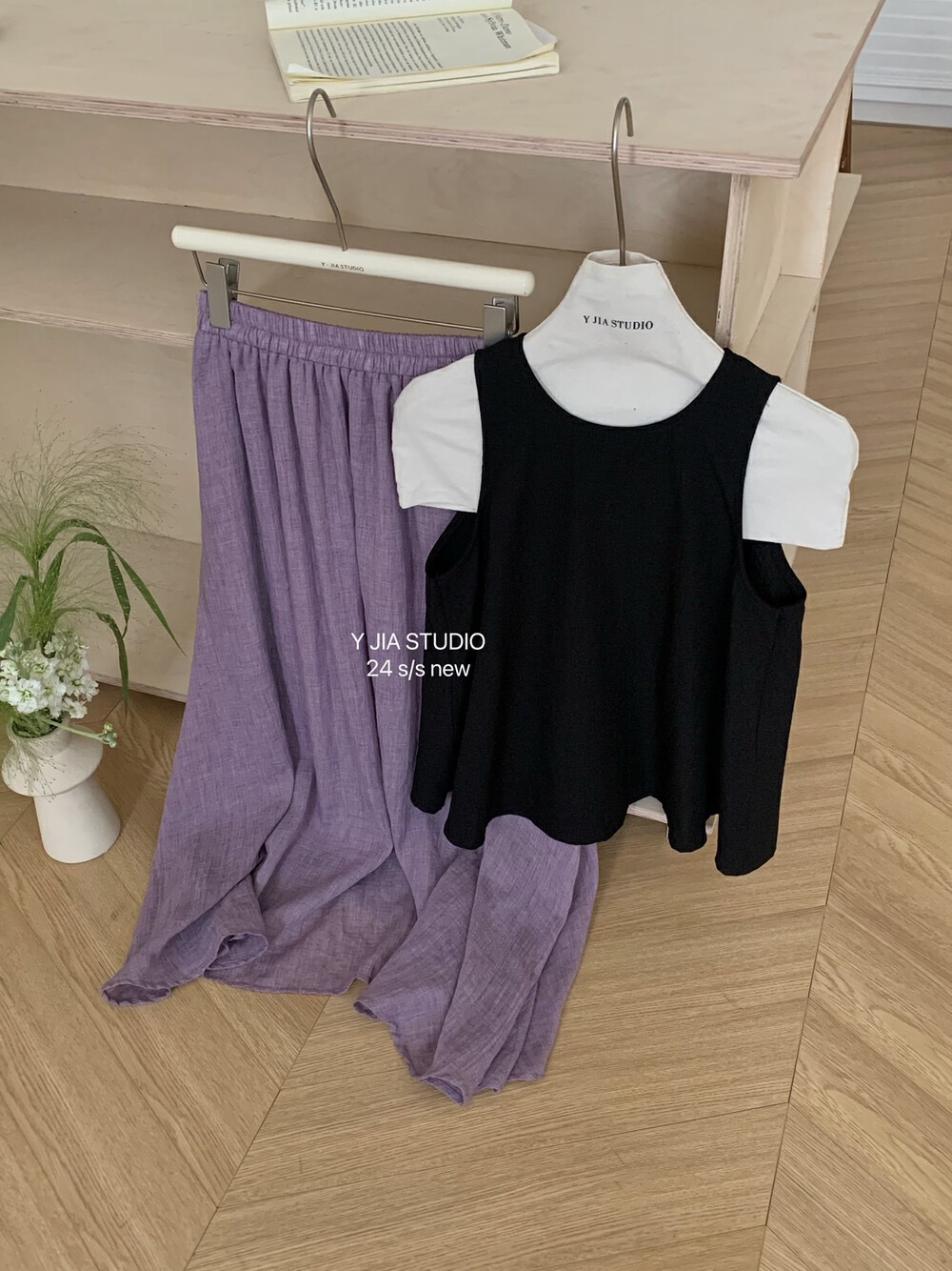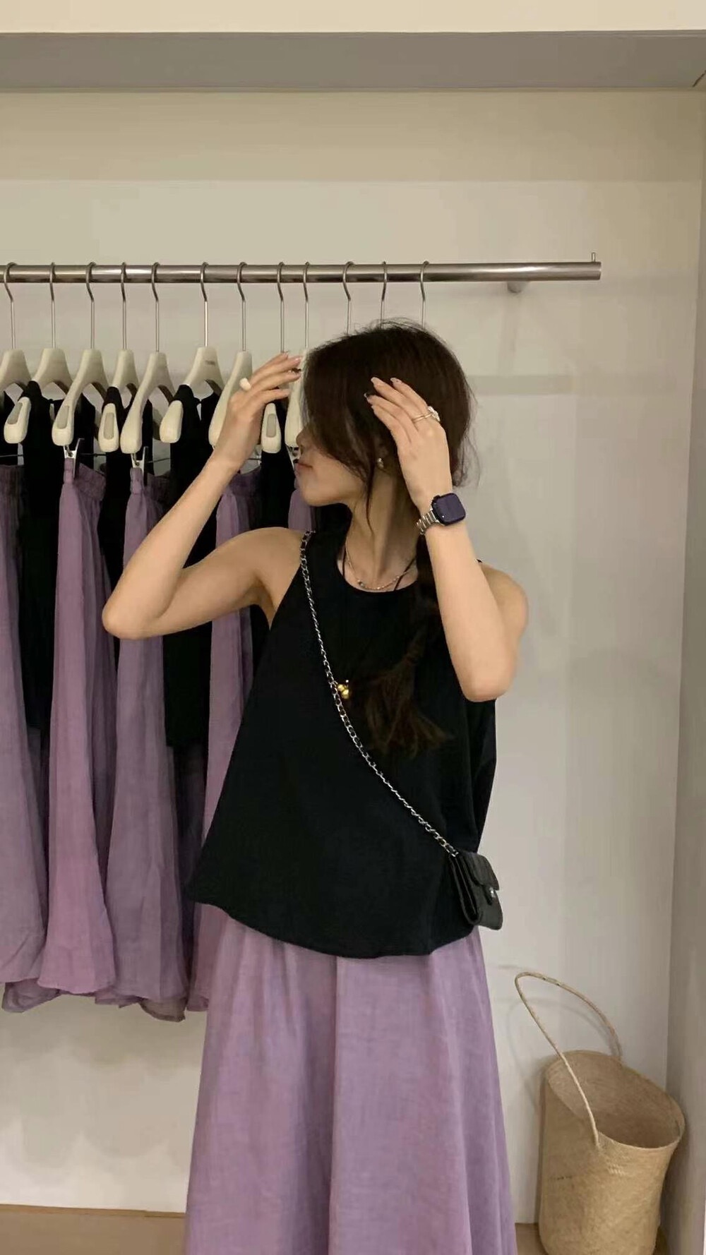 【GZ】无忧购法式气质立领裁剪挖肩上衣+温柔棉麻甜美仙女半身裙套装3628-3(截单后7天发货)25年清仓捡漏