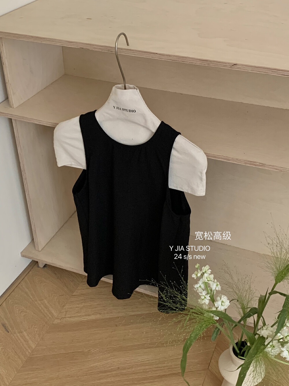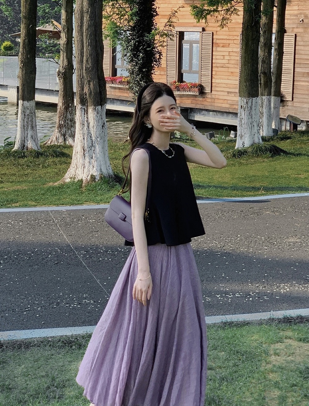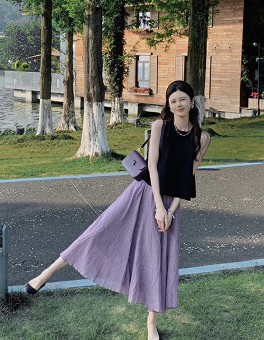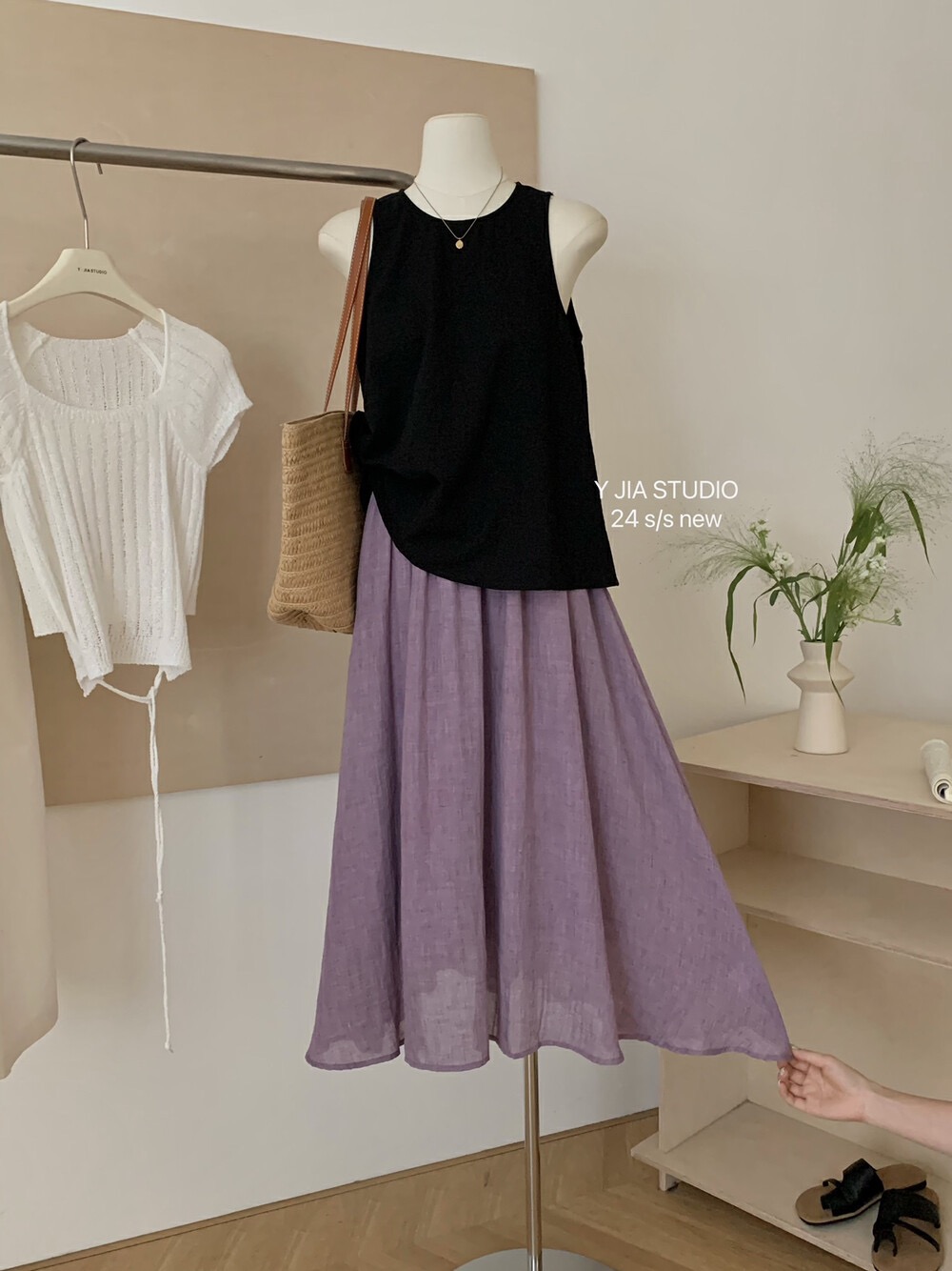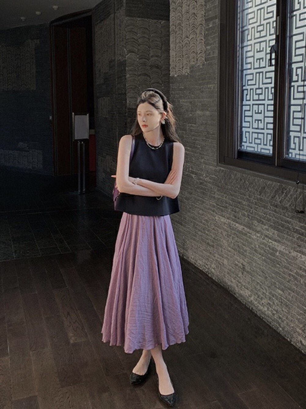 【GZ】无忧购法式气质立领裁剪挖肩上衣+温柔棉麻甜美仙女半身裙套装3628-3(截单后7天发货)25年清仓捡漏