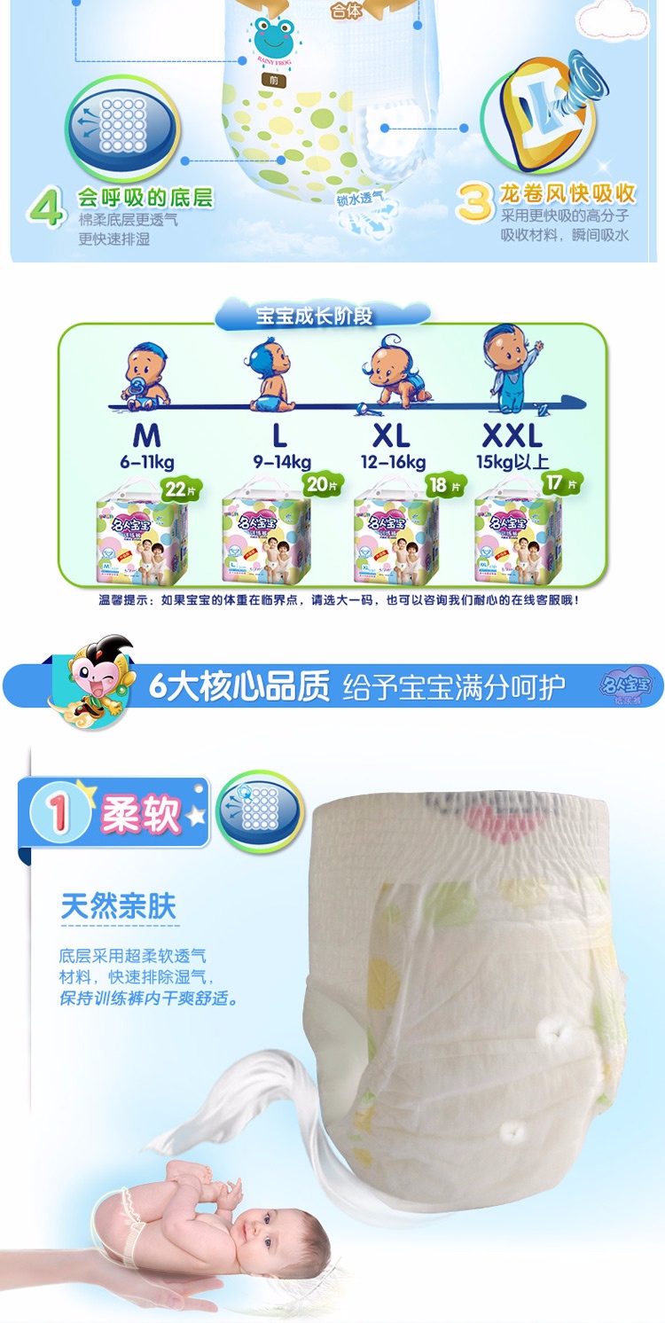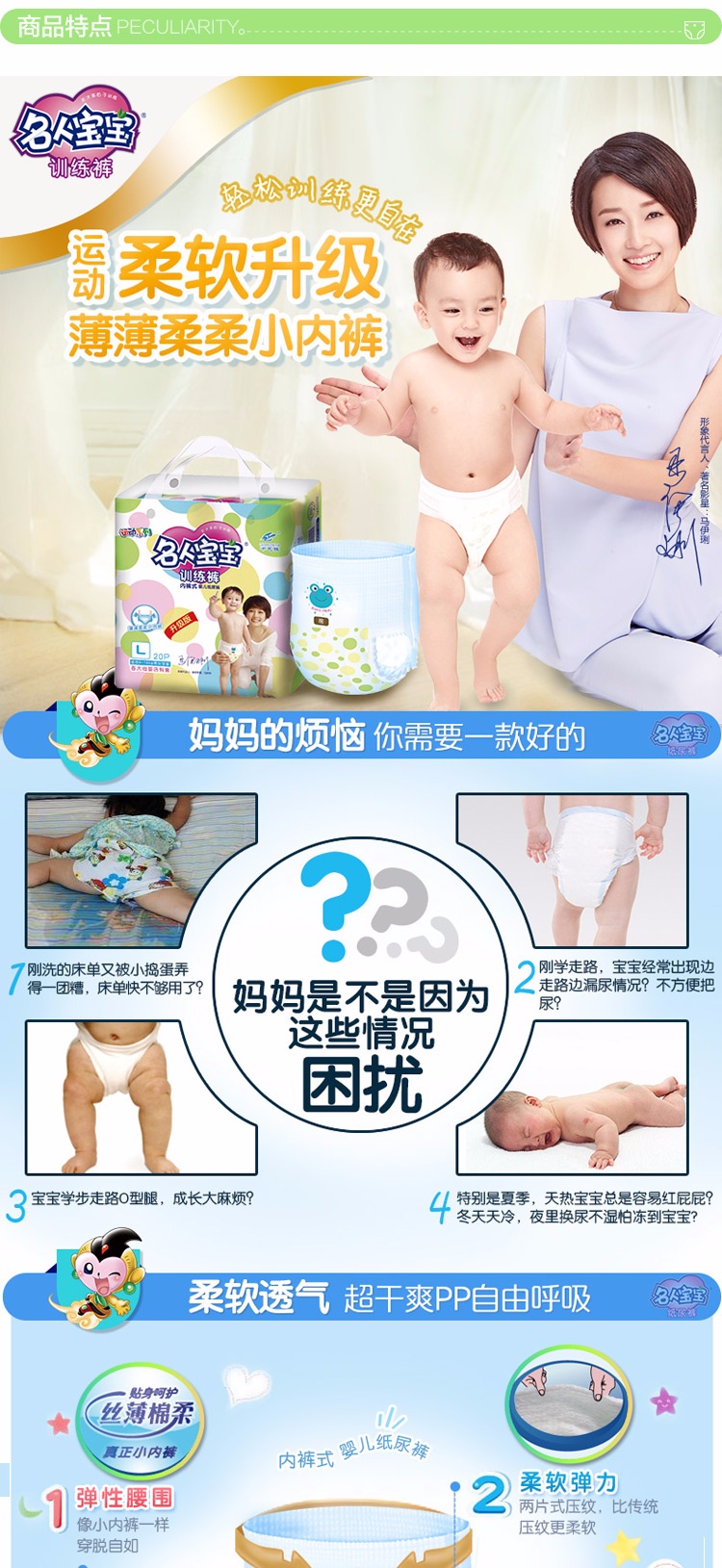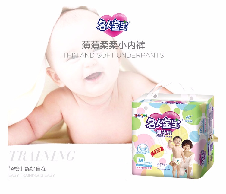 名人宝宝运动拉拉裤超薄柔软透气婴儿尿不湿M22片8包JPY带授权招加盟代理