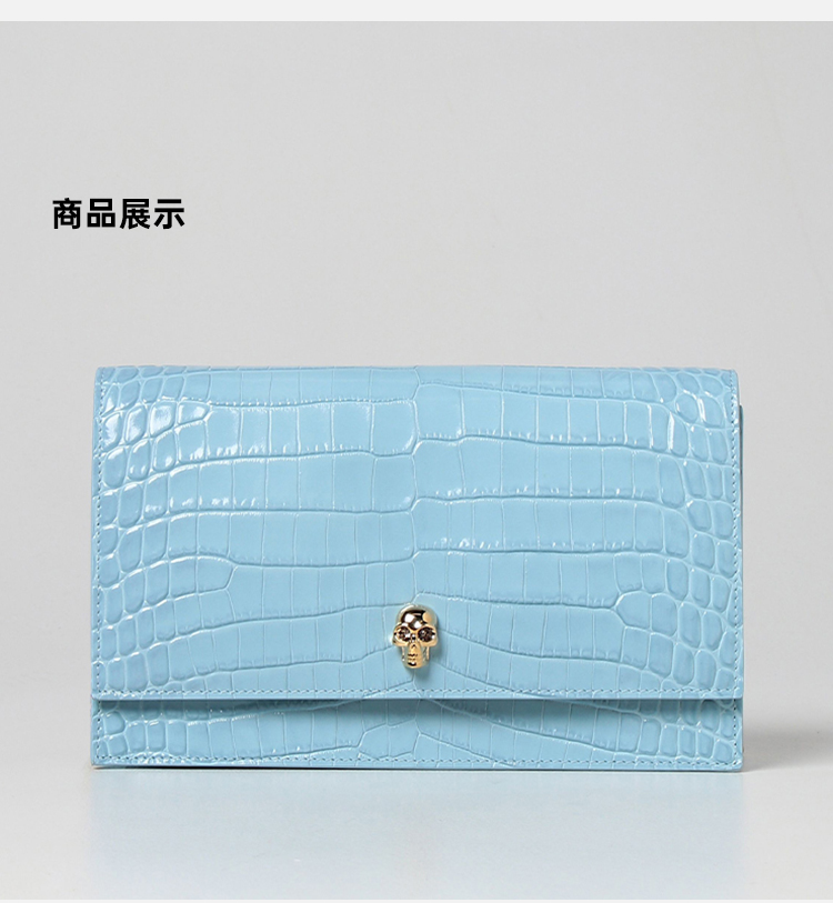 ALEXANDER MCQUEEN 亚历山大麦昆 女士中号鳄鱼纹骷髅斜挎单肩包 浅蓝色 630266 1HB0G 4506
