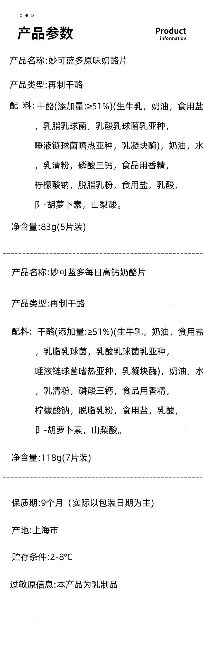 妙可蓝多原味奶酪片83g|每日高钙奶酪片118g