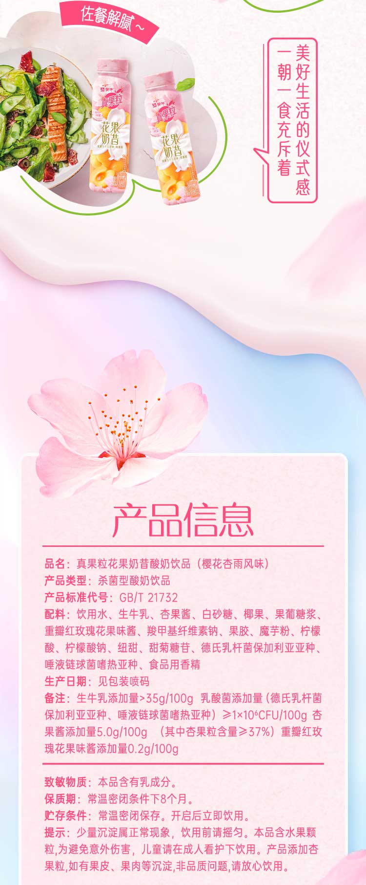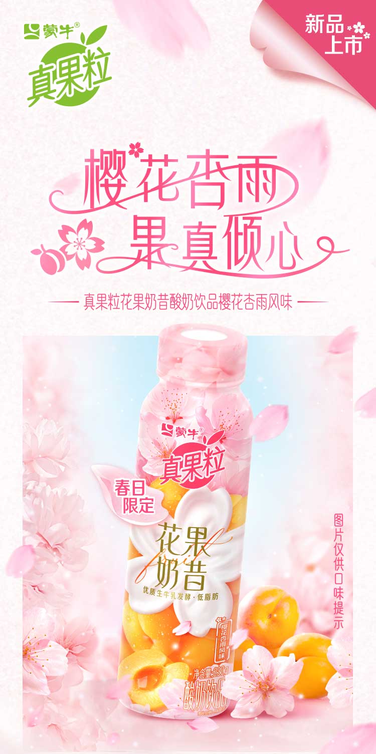 蒙牛真果粒花果奶昔樱花杏雨风味酸奶饮品PET瓶230g*10瓶