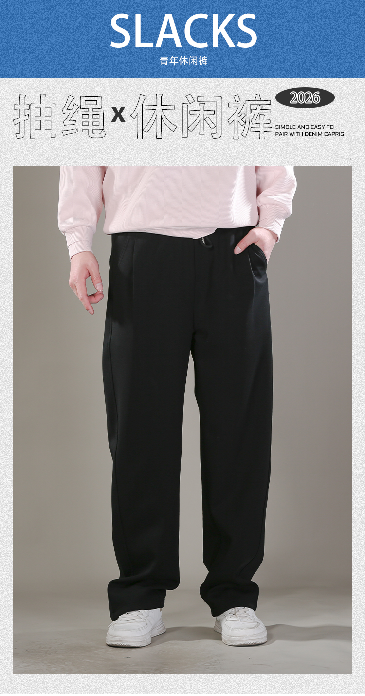DRONKOO 2026 抽绳松紧腰前右金属扣侧缝前移中厚卫裤长裤