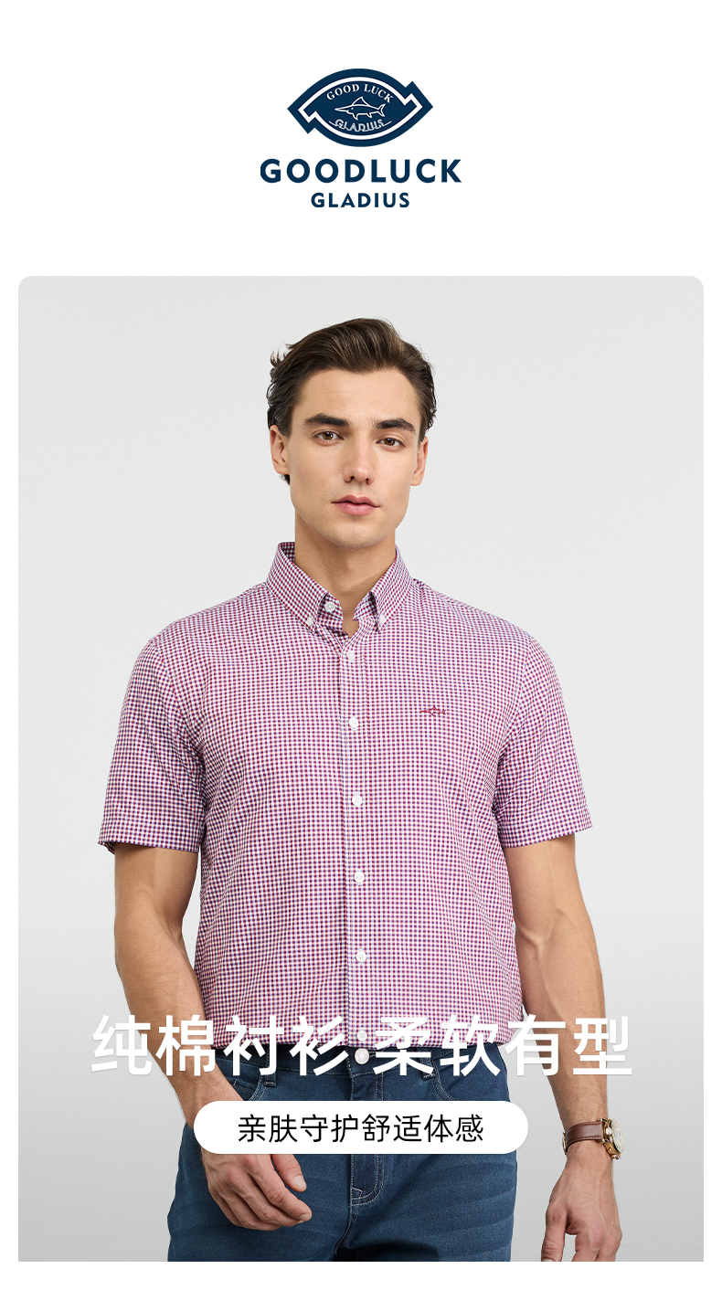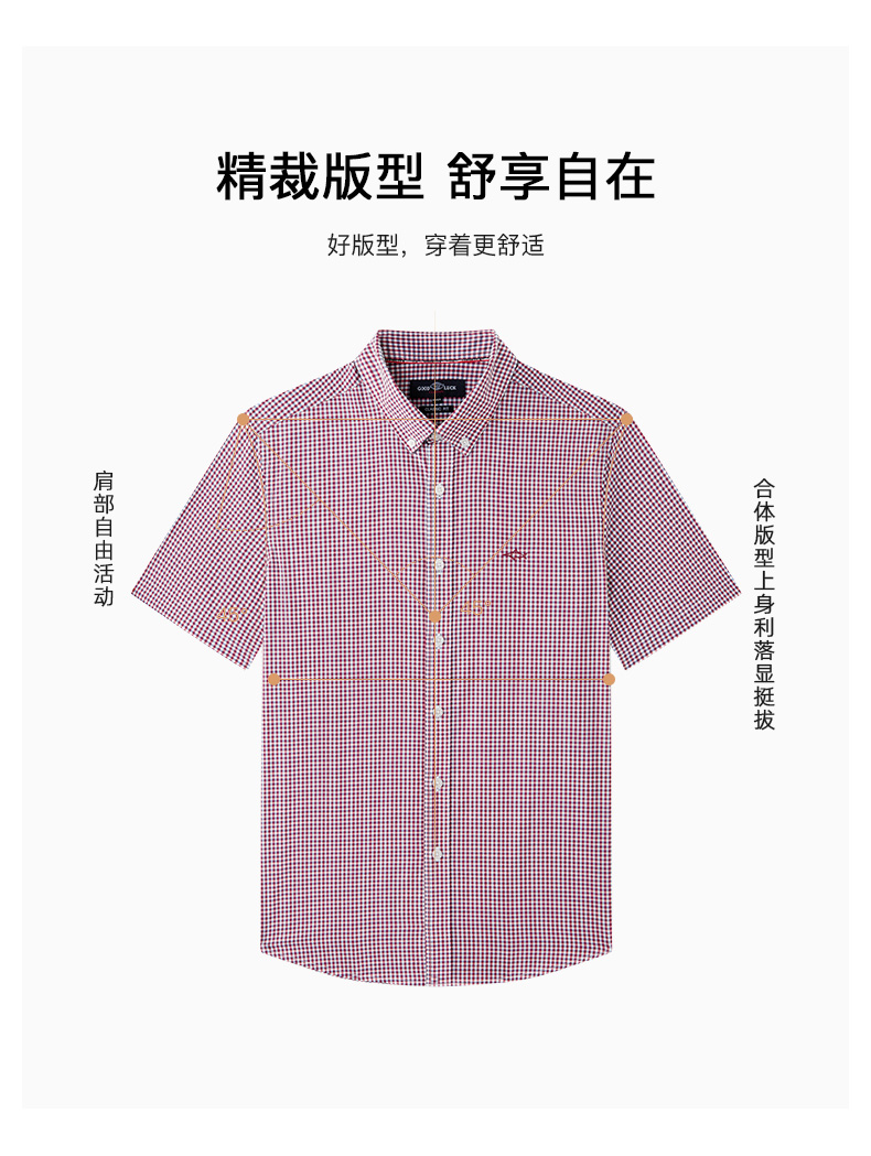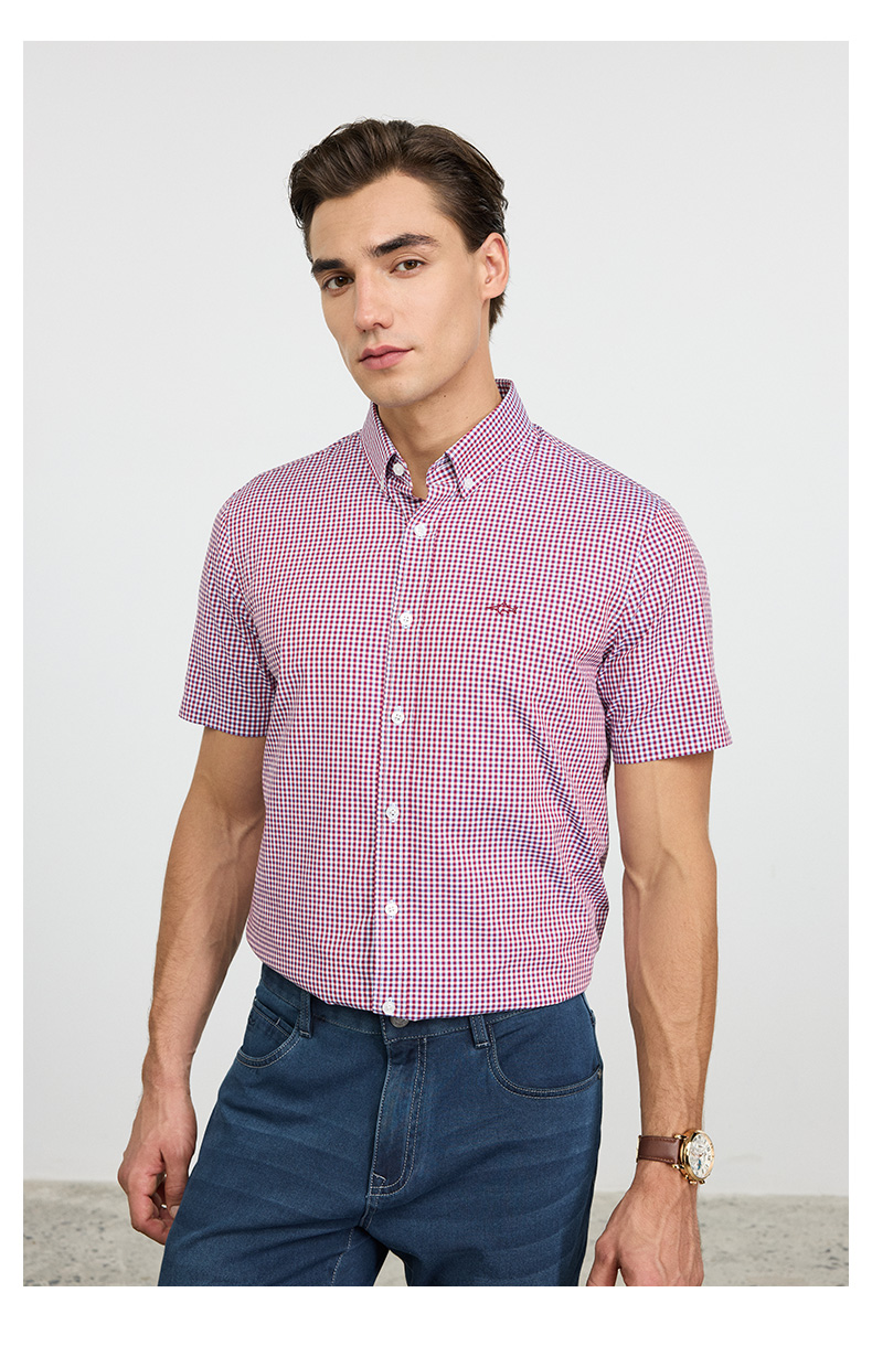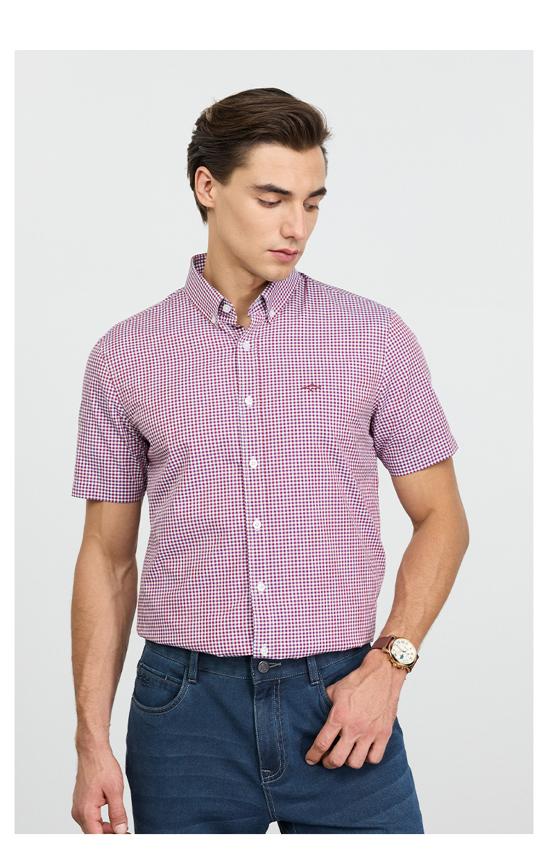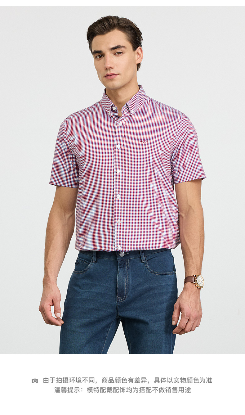 【纯棉】德鲨男士短袖格子衬衫2026夏季新款休闲打底上衣男装衬衣