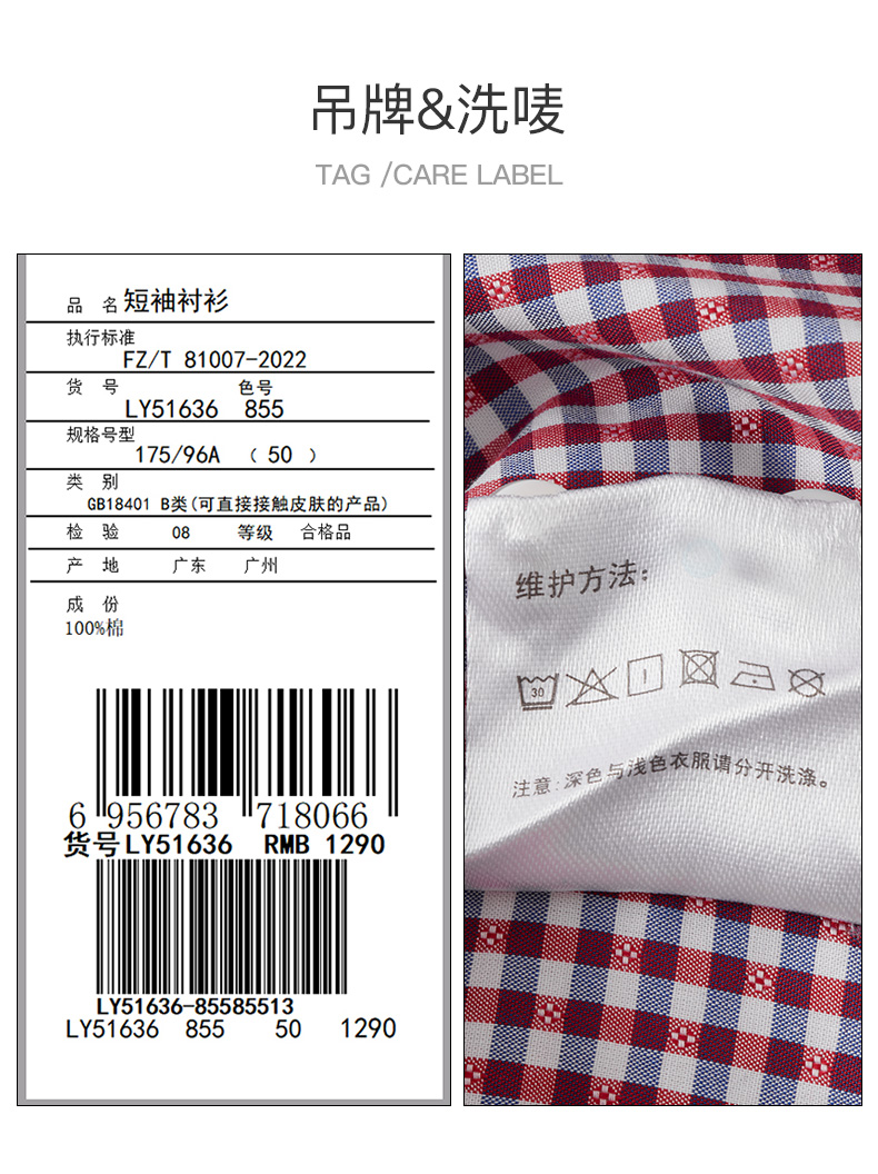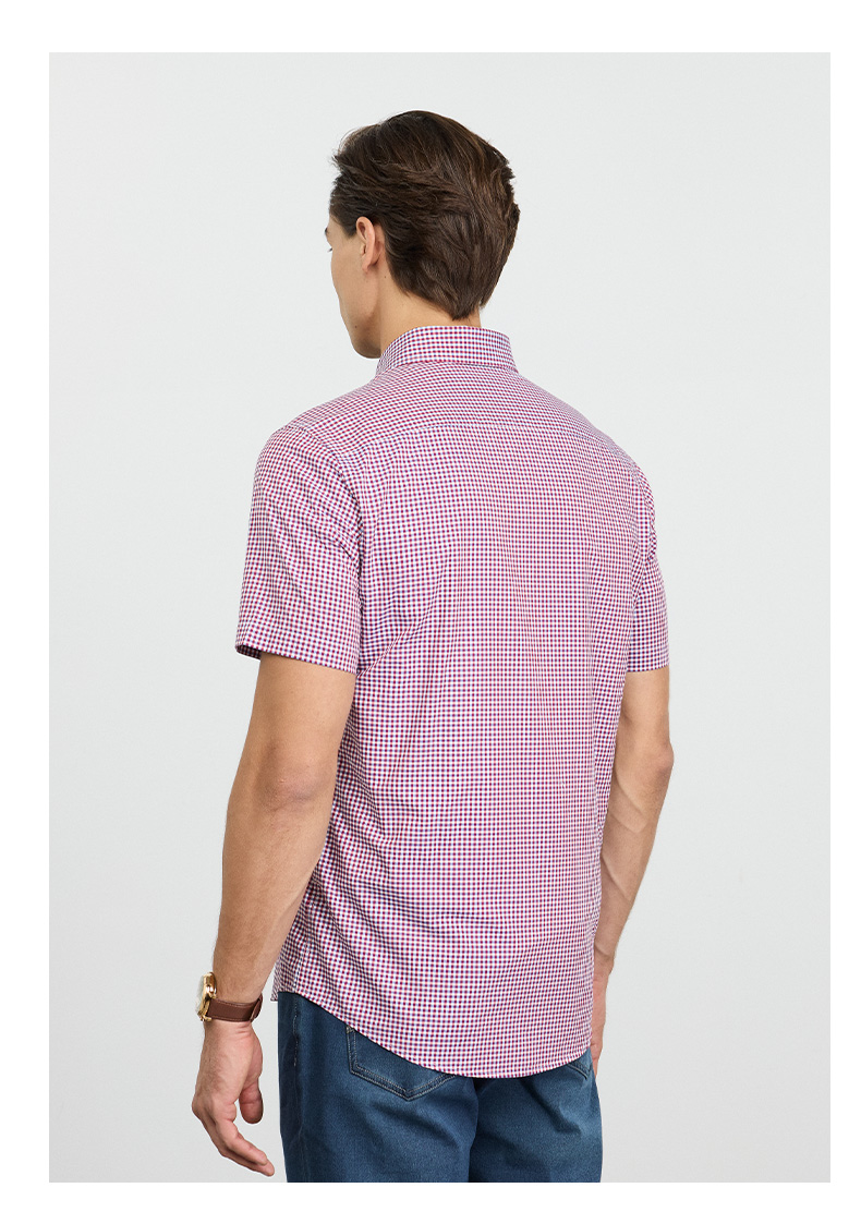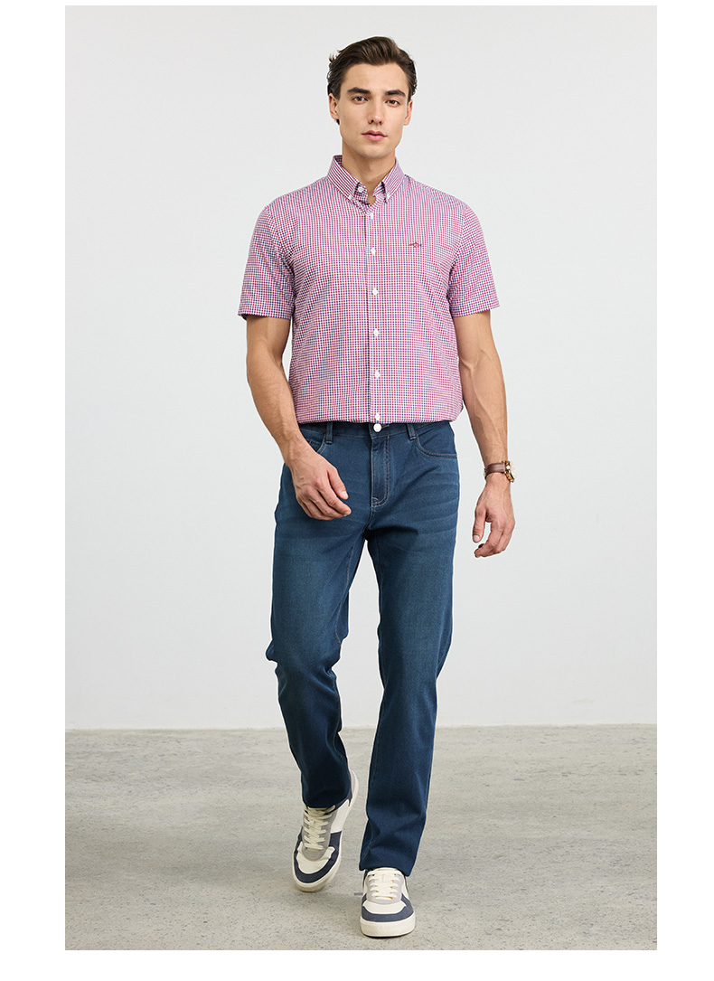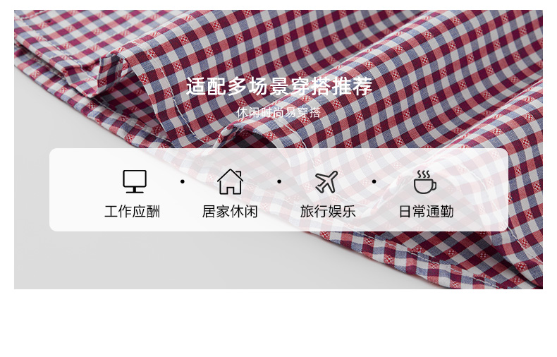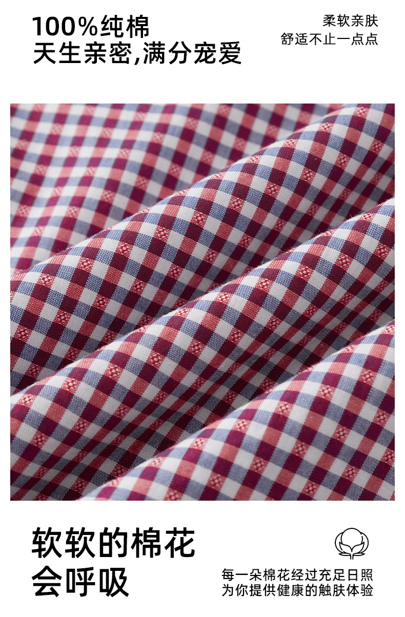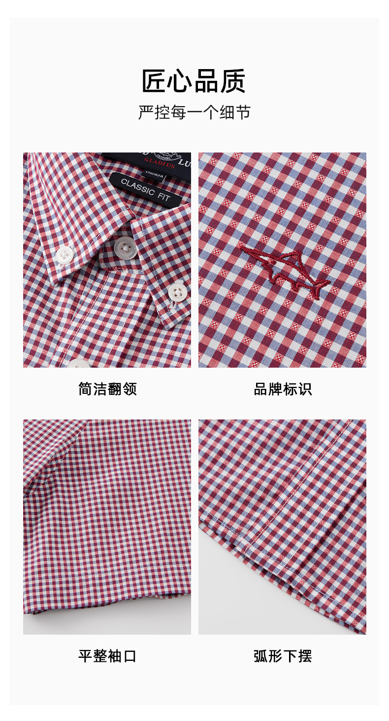 【纯棉】德鲨男士短袖格子衬衫2026夏季新款休闲打底上衣男装衬衣