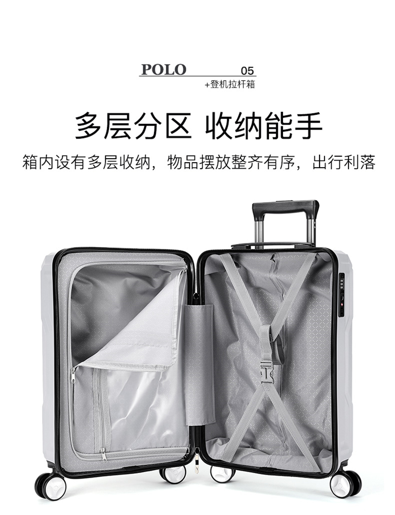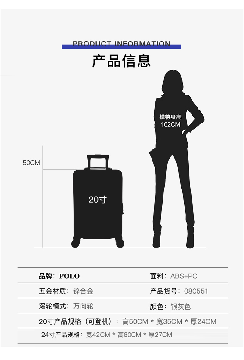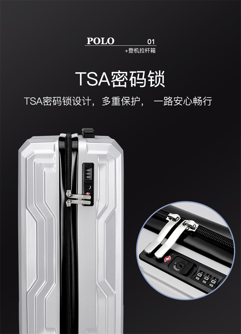 POLO 拉杆箱男女通用登机箱万向轮铝合金行李箱大容量出差外出旅行箱080551