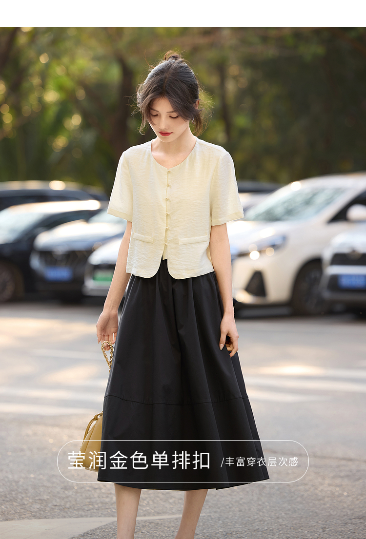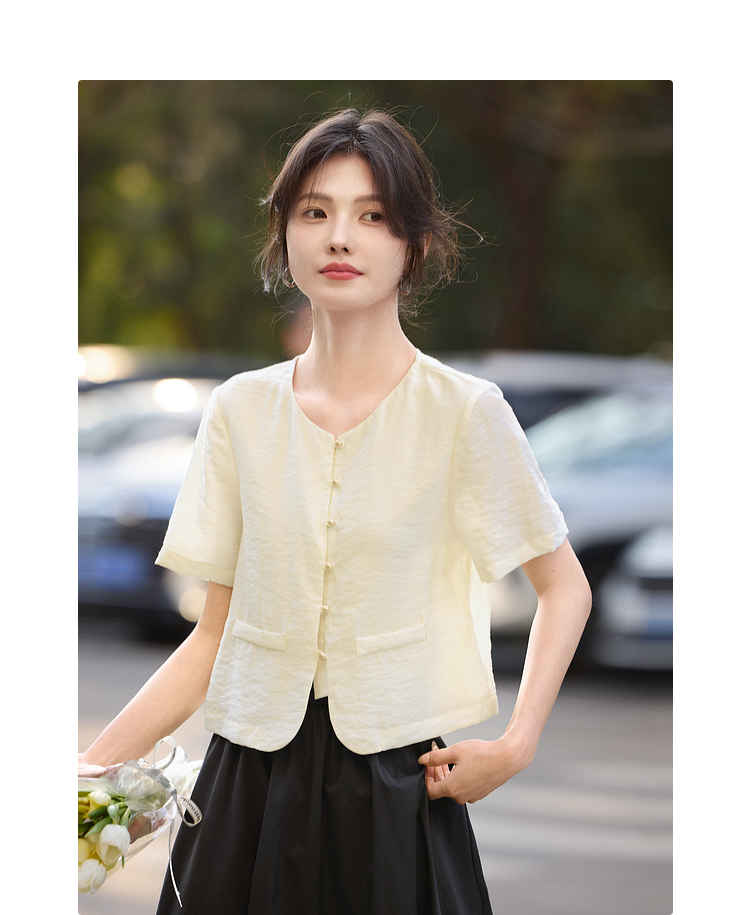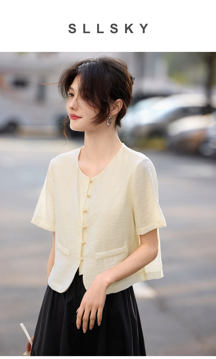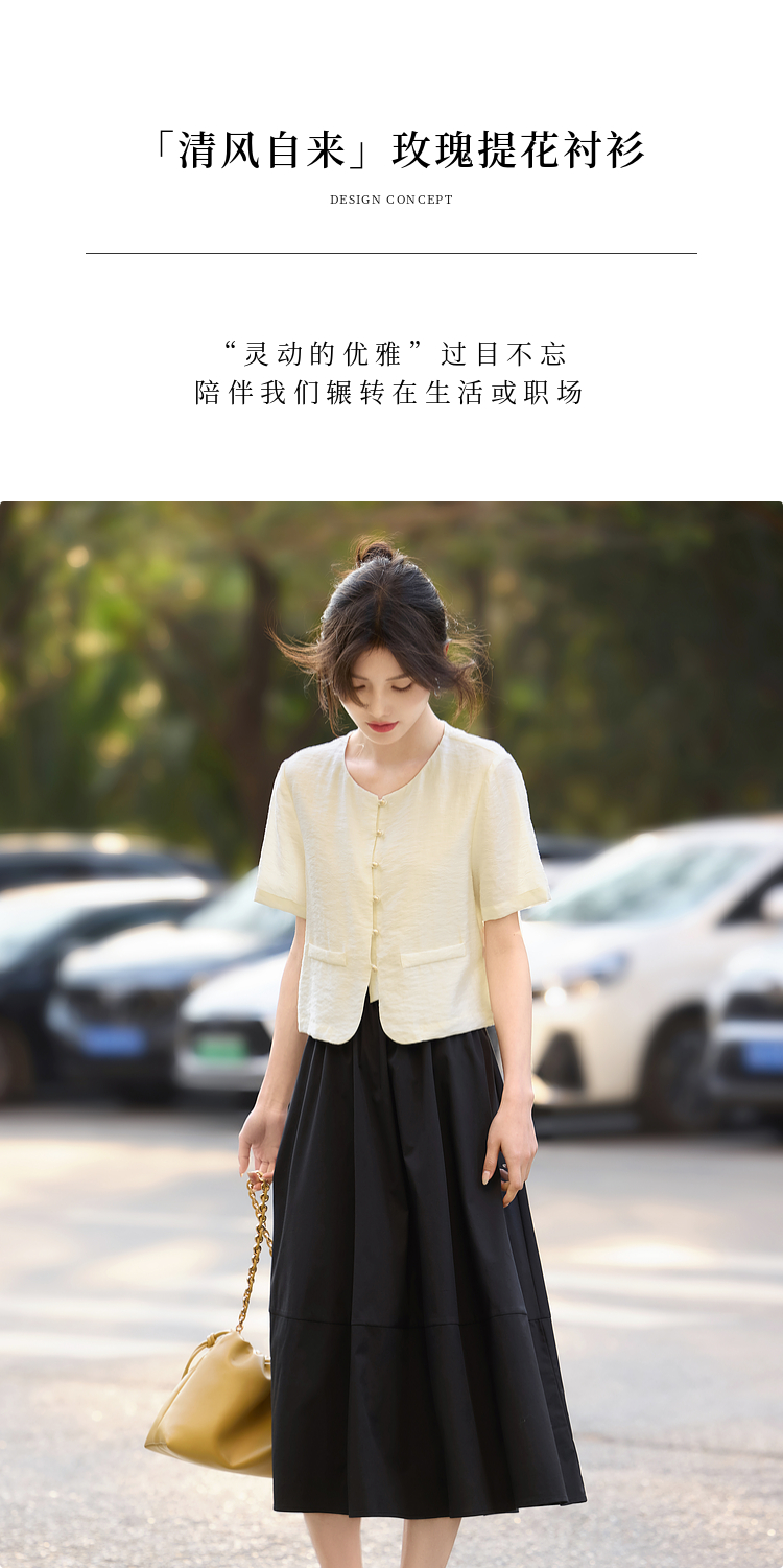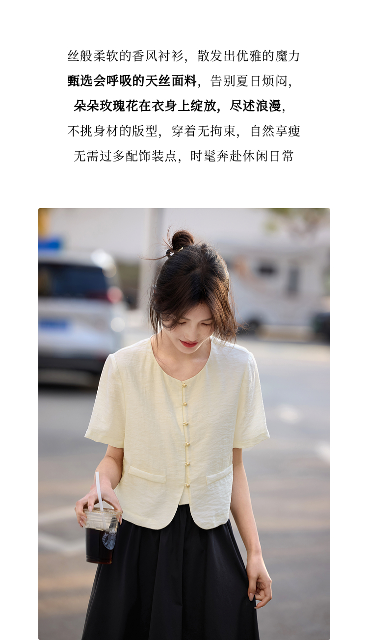 【专属特价】熙世界小香风天丝衬衫短外套女2025夏季新款圆领国风提花短袖衬衣