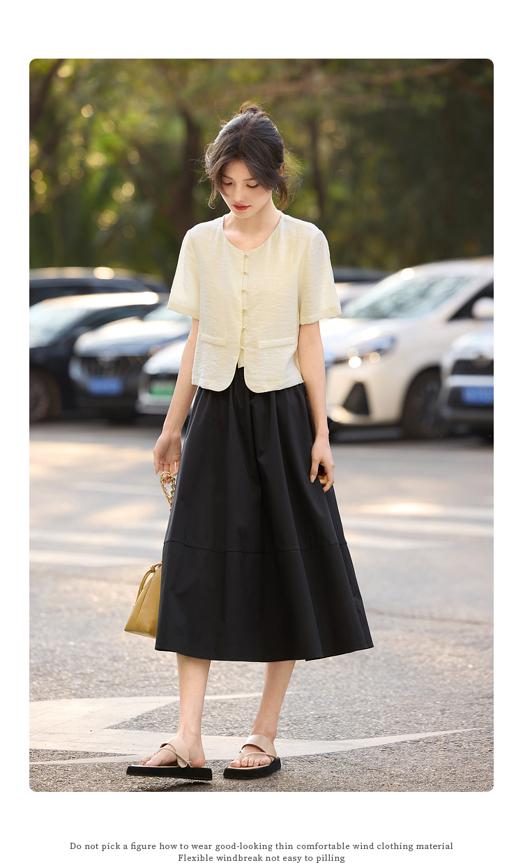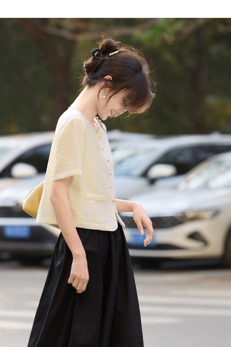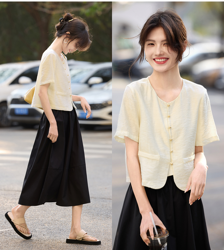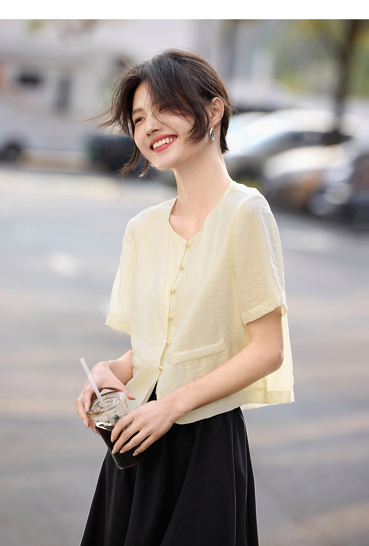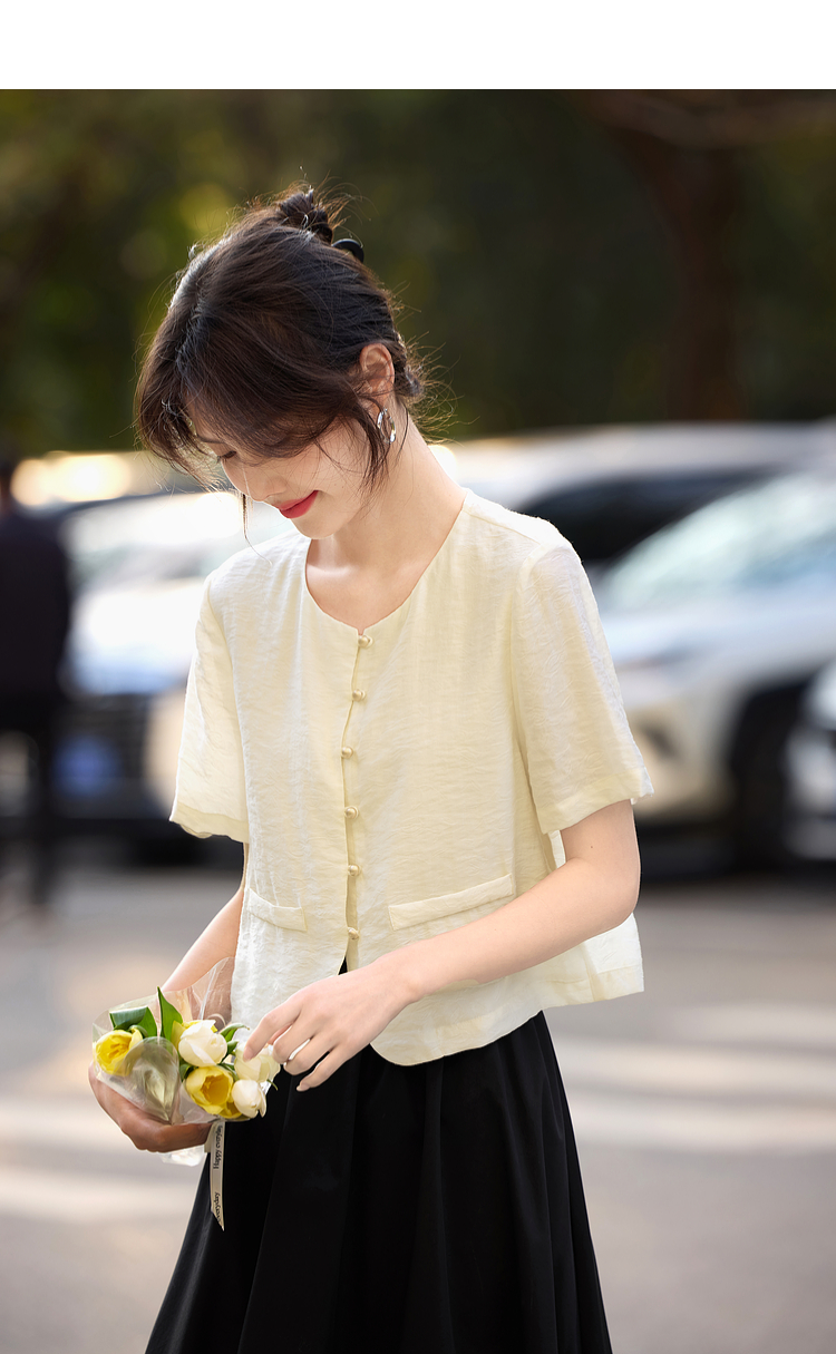 【专属特价】熙世界小香风天丝衬衫短外套女2025夏季新款圆领国风提花短袖衬衣