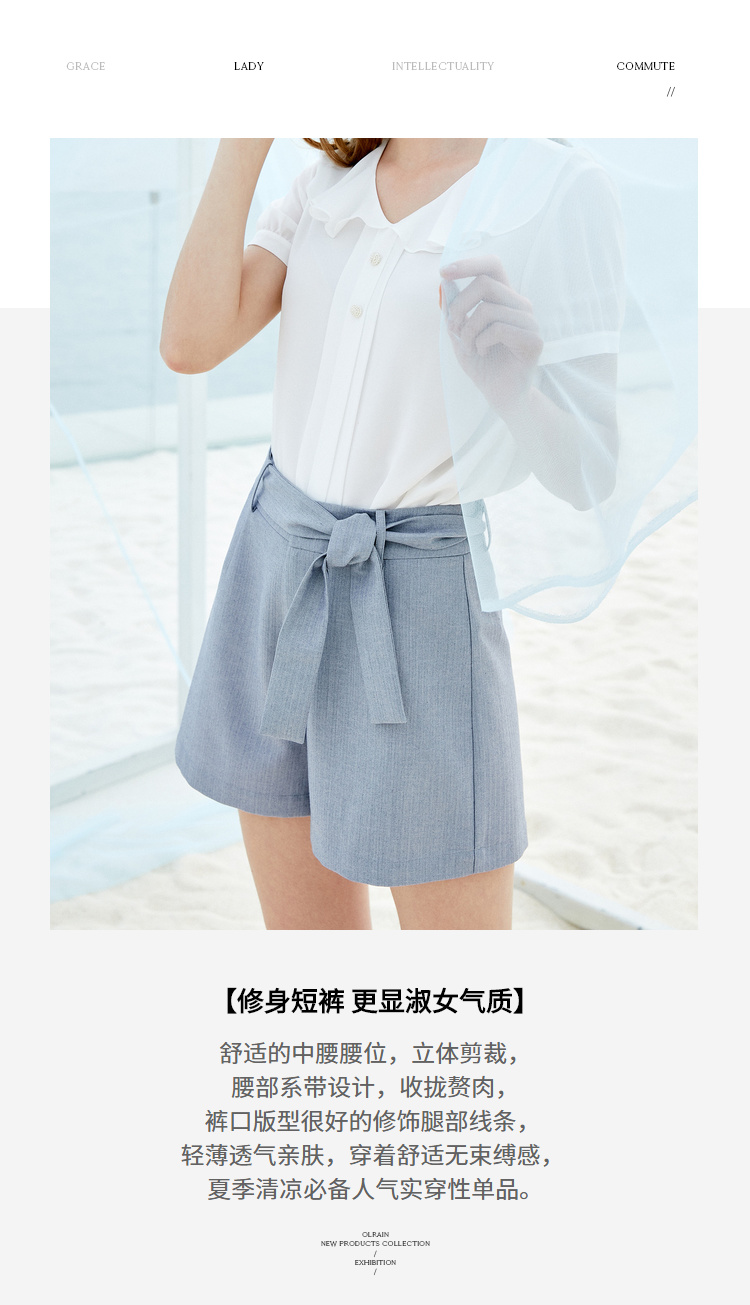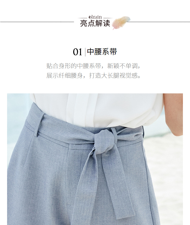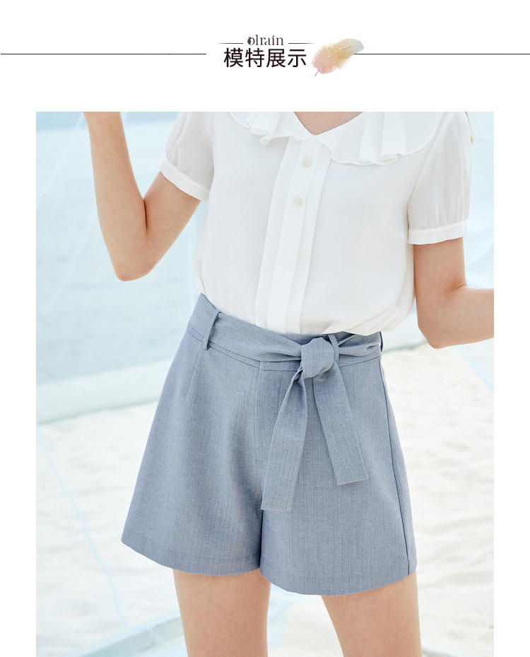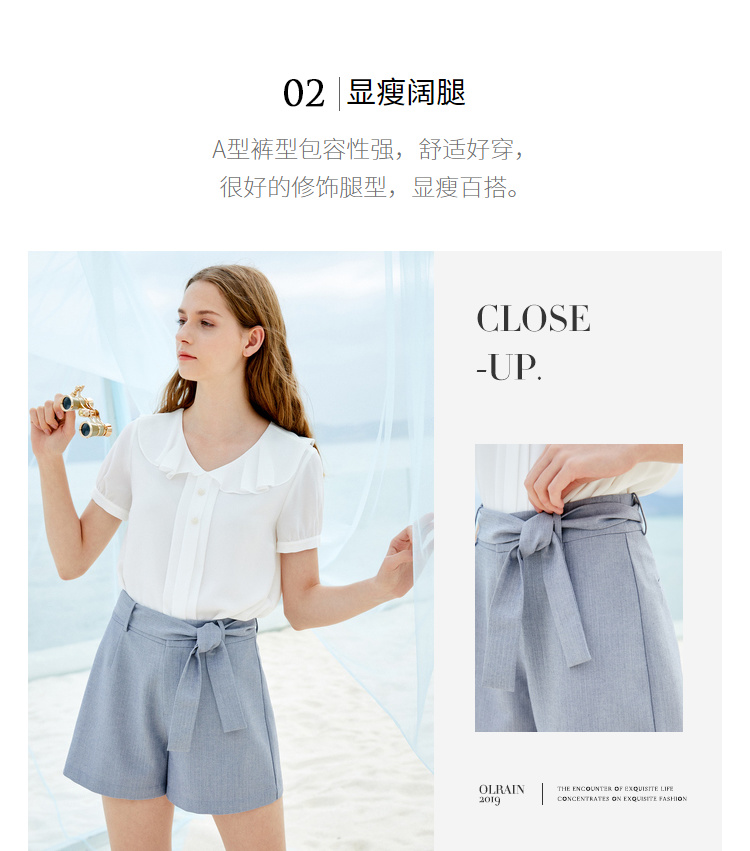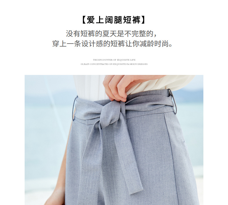 欧芮儿夏装女装阔腿裤女高腰短裤网红垂感系带a字裤子