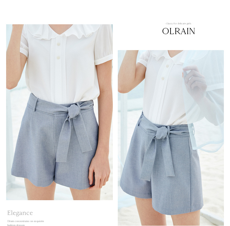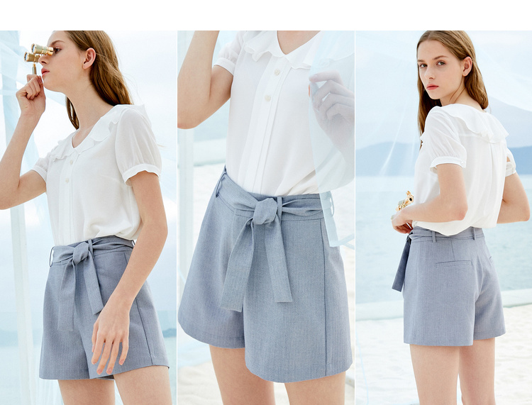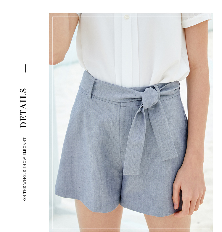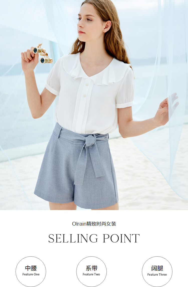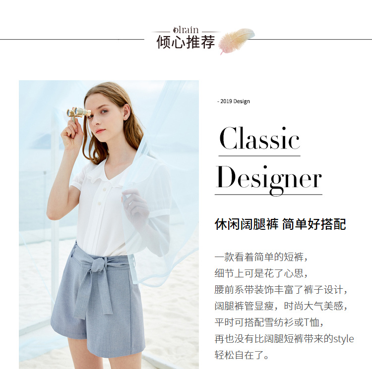 欧芮儿夏装女装阔腿裤女高腰短裤网红垂感系带a字裤子