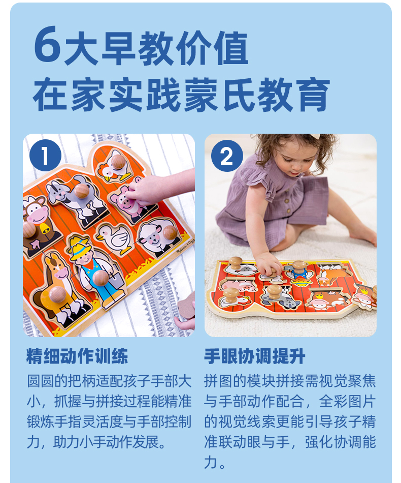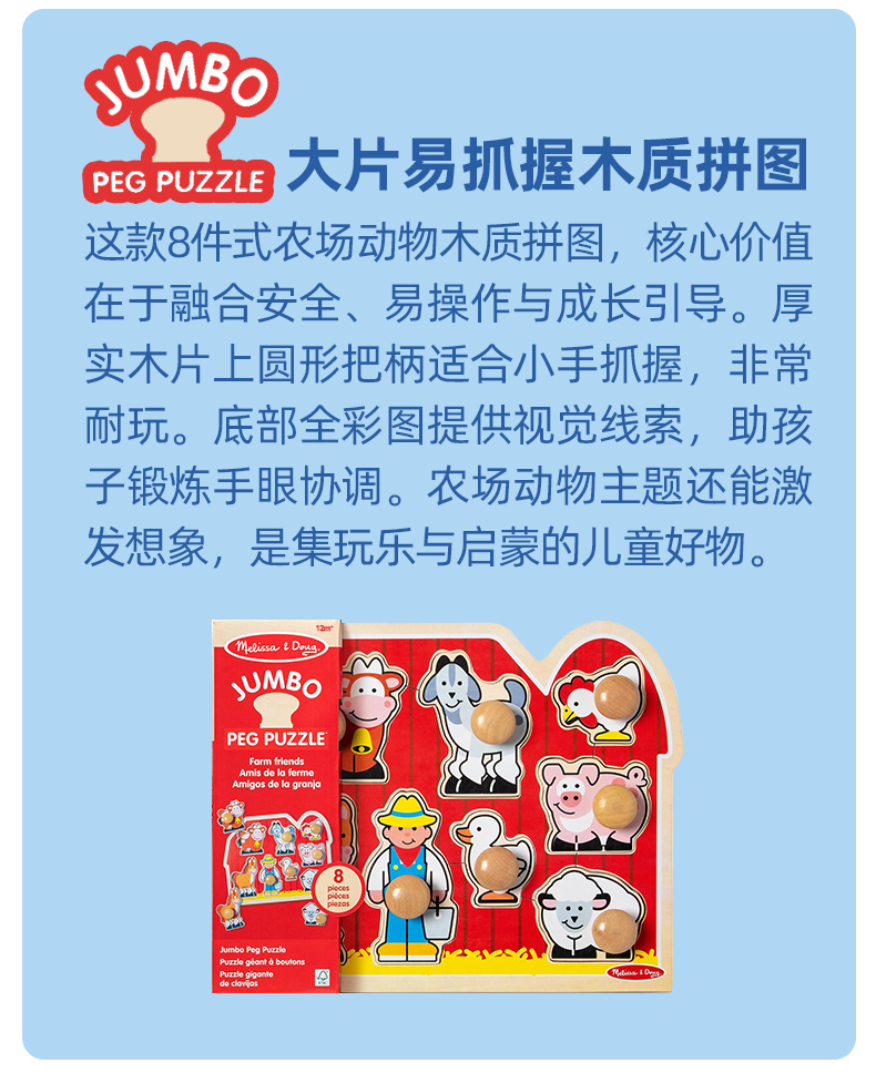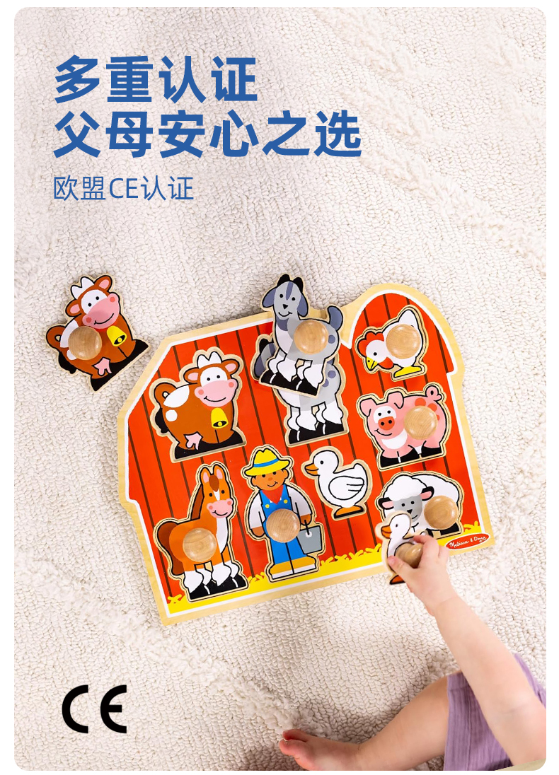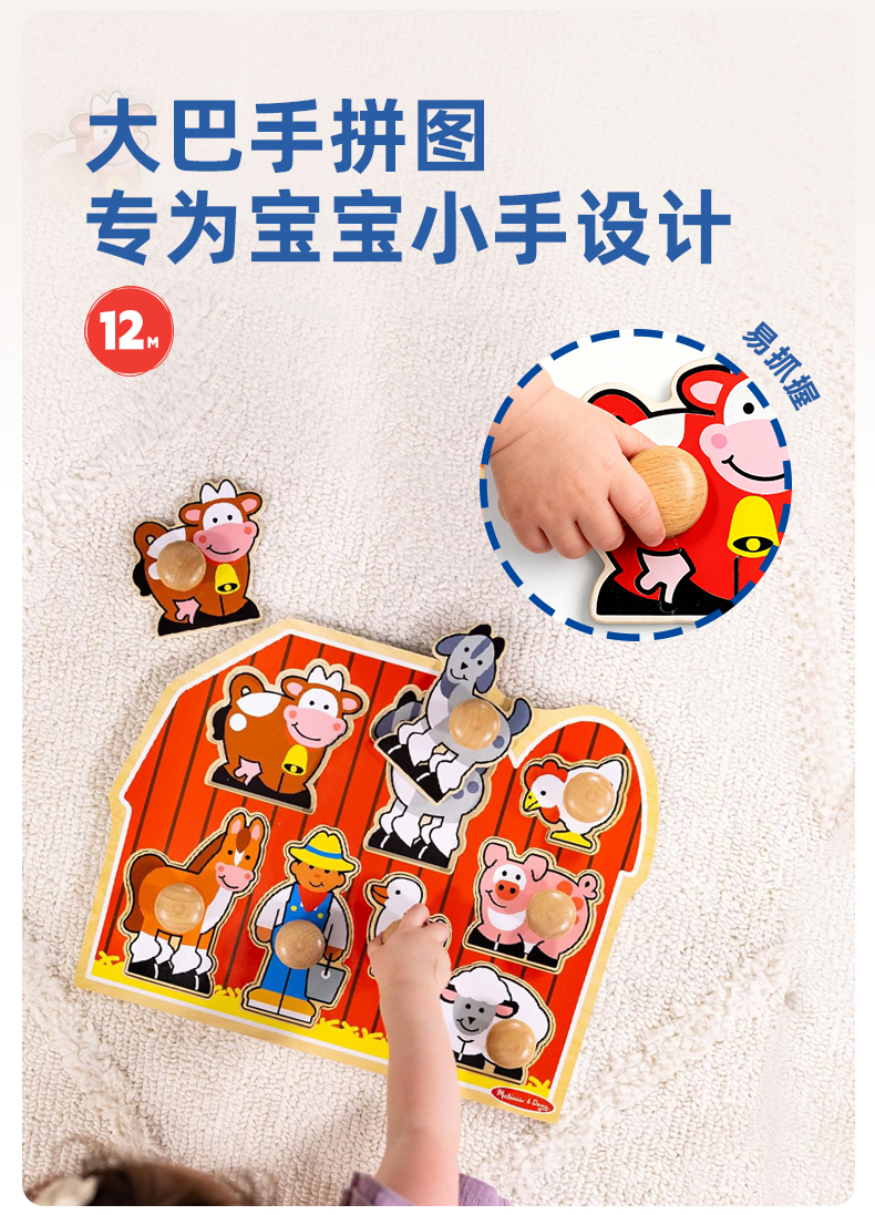 *美国Melissa&Doug幼儿拼图玩具大片易抓握木质拼图