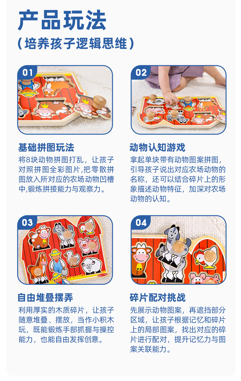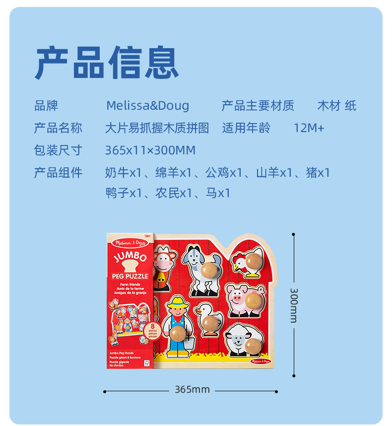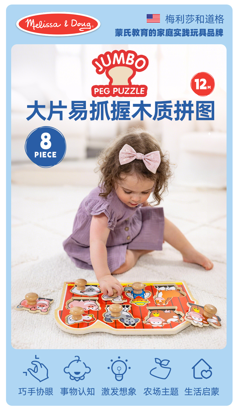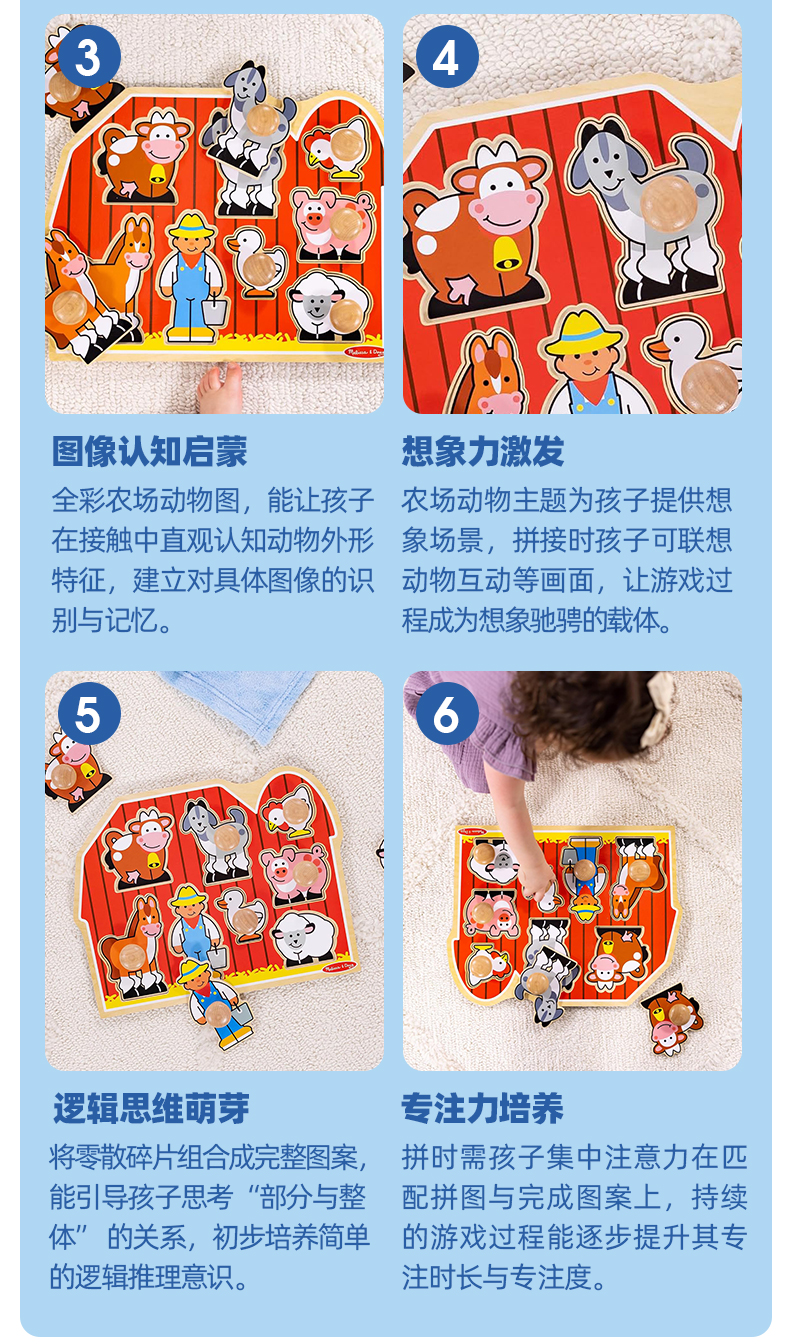 *美国Melissa&Doug幼儿拼图玩具大片易抓握木质拼图