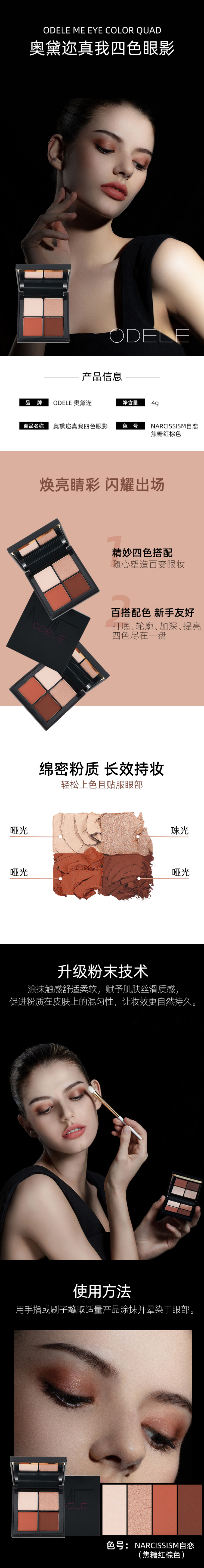 【218元会员福利】奥黛迩真我四色眼影(焦糖红棕色)4g