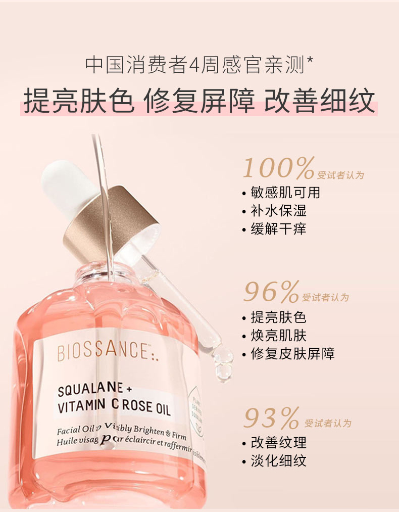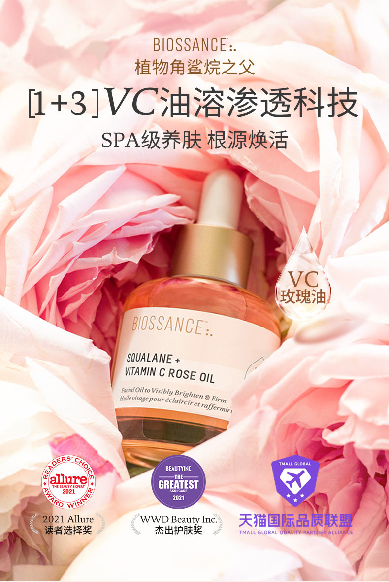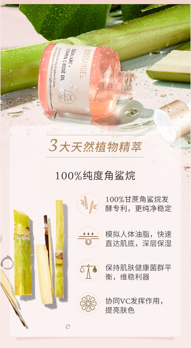 保税直发 BIOSSANCE 角鲨烷玫瑰VC护肤套组(精华油 30mL+面霜 50mL)