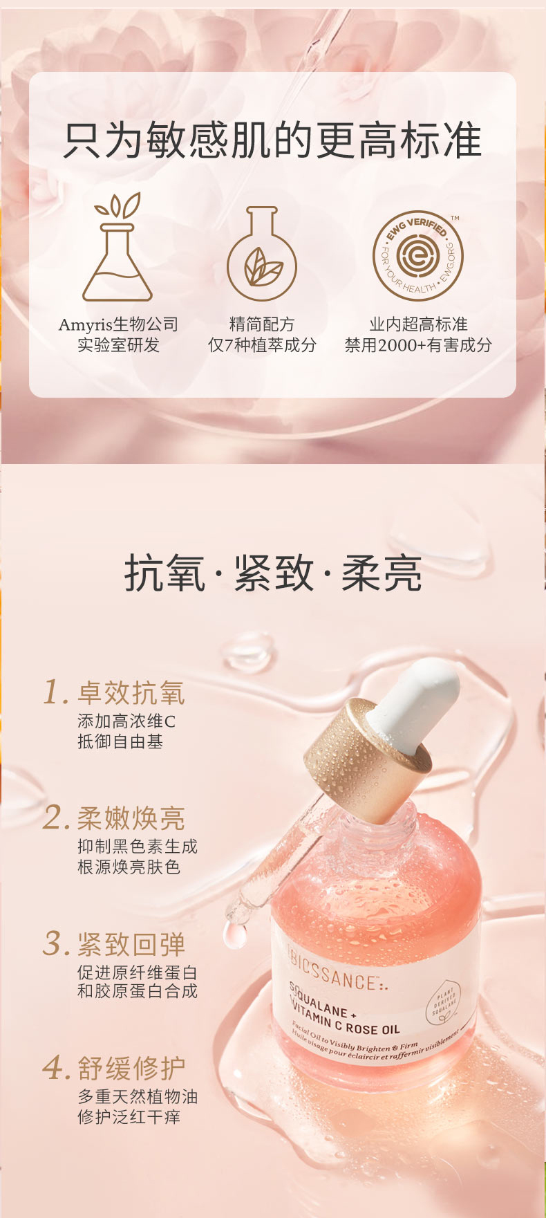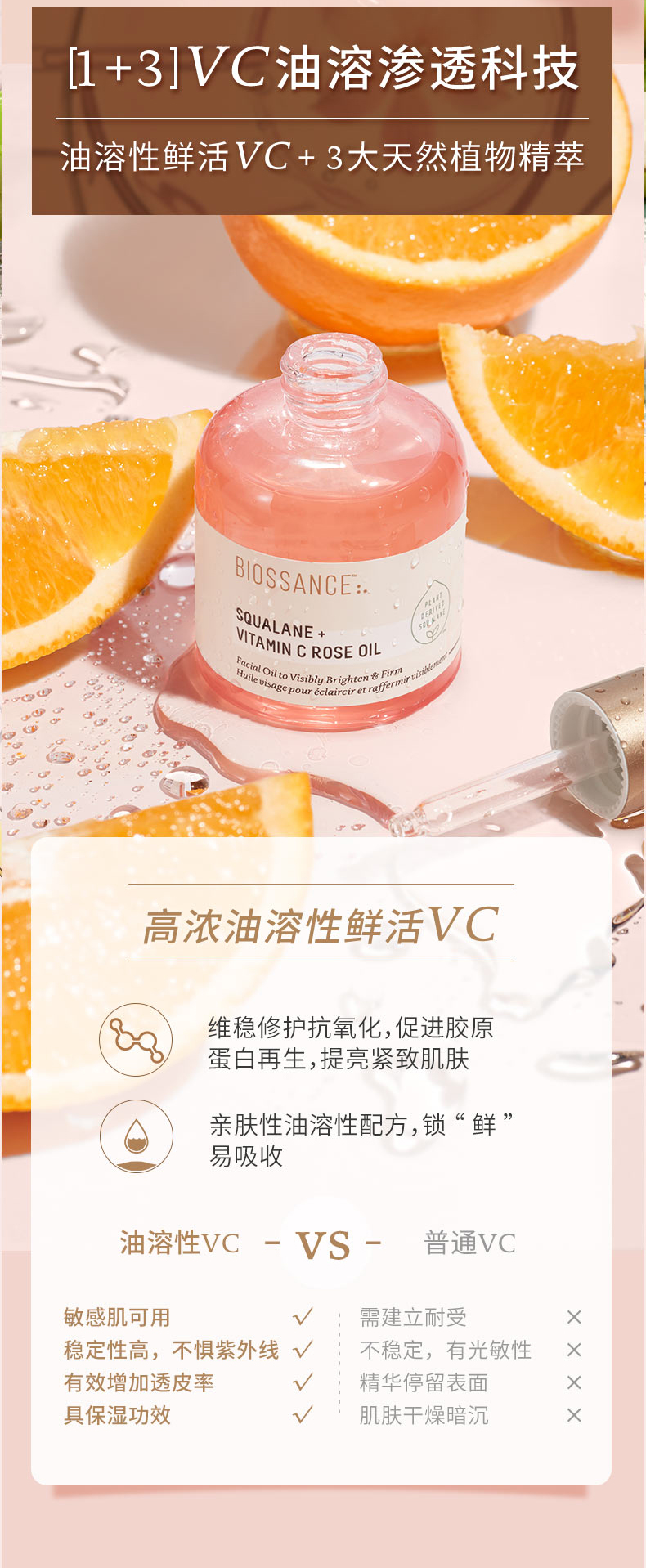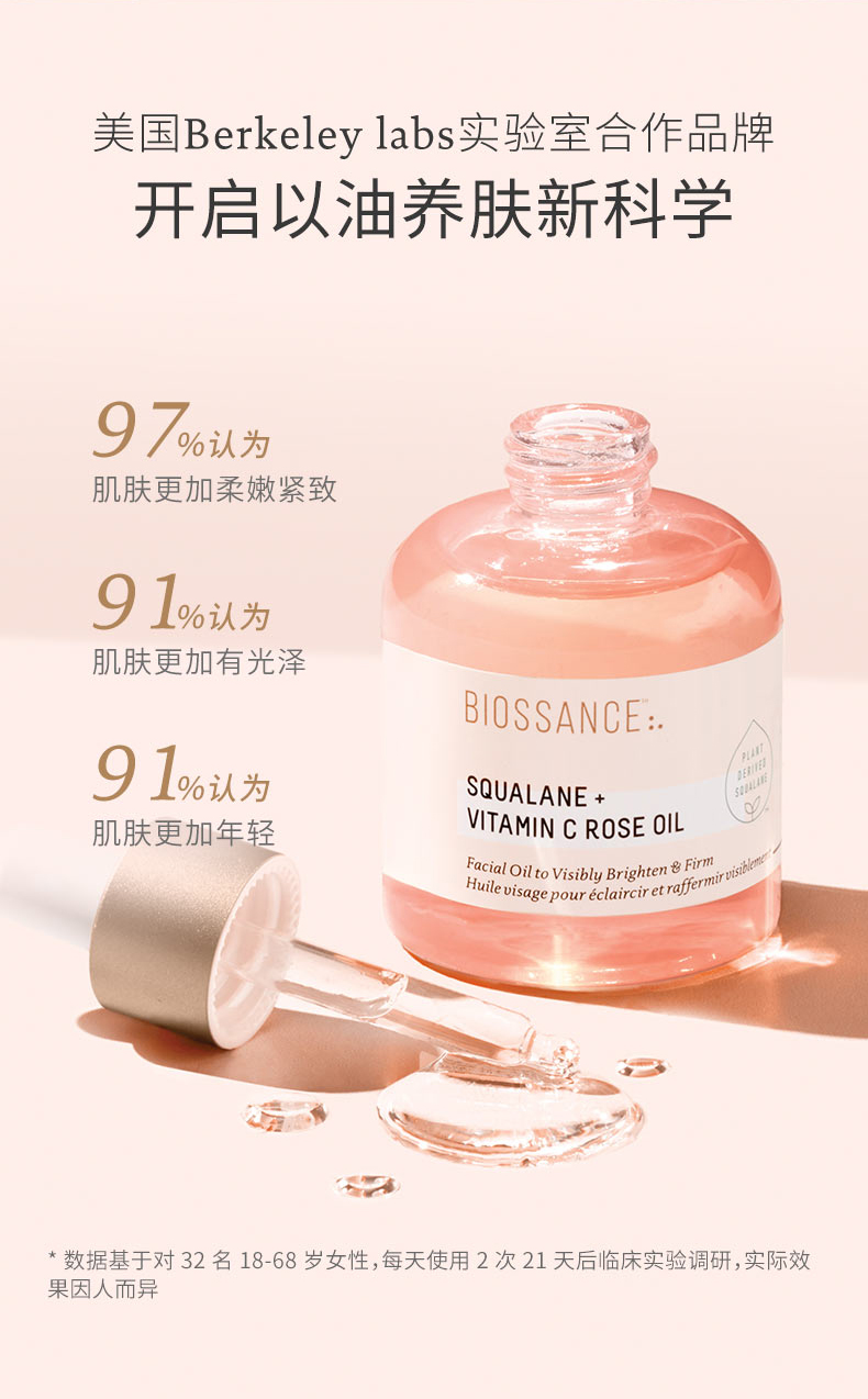 保税直发 BIOSSANCE 角鲨烷玫瑰VC护肤套组(精华油 30mL+面霜 50mL)